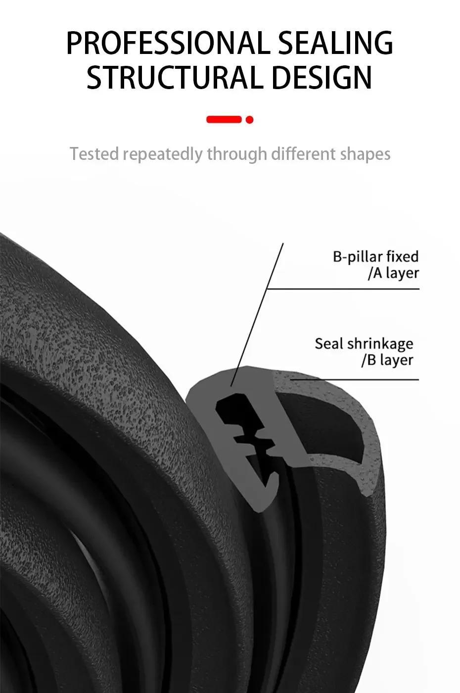Уплотнительная резиновая полоска для края двери автомобиля, уплотнитель для стойки B, водонепроницаемый, звукоизоляционный, 2 м