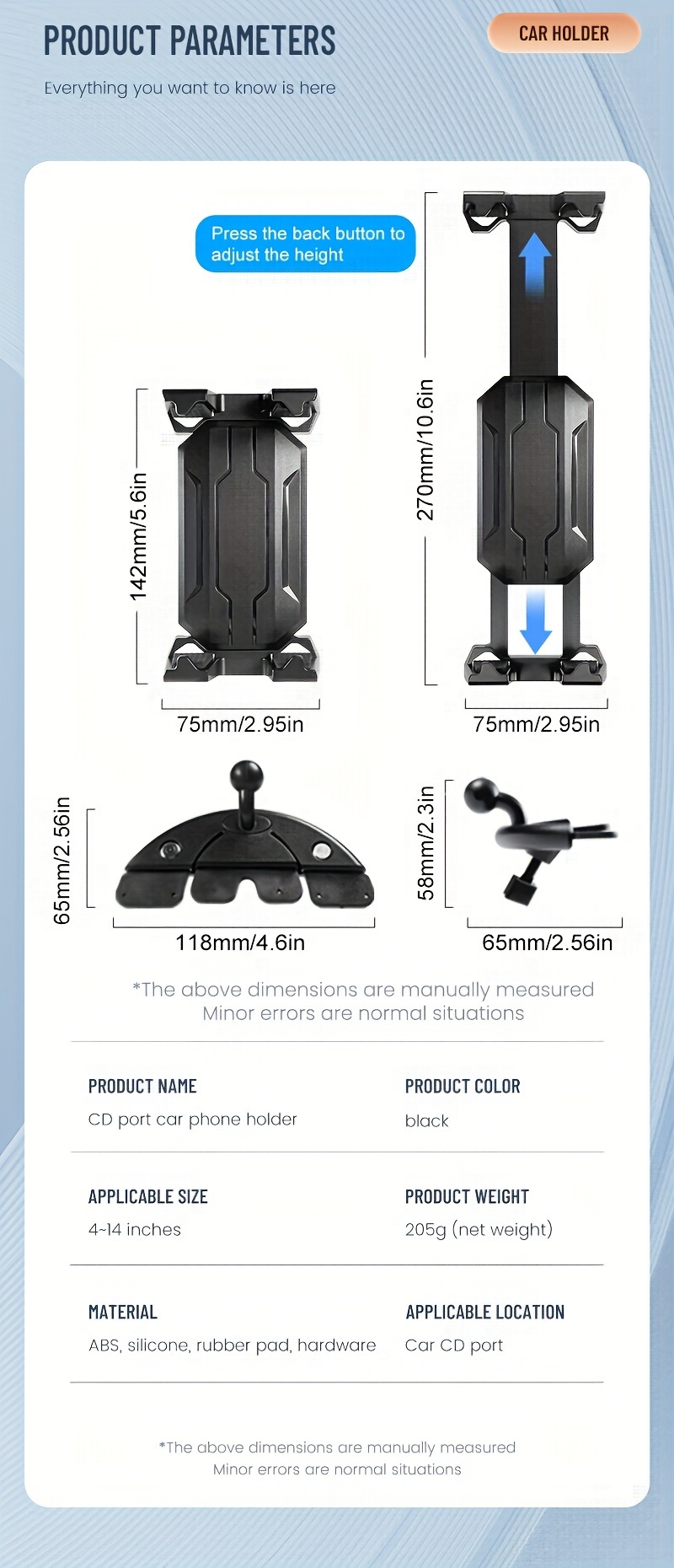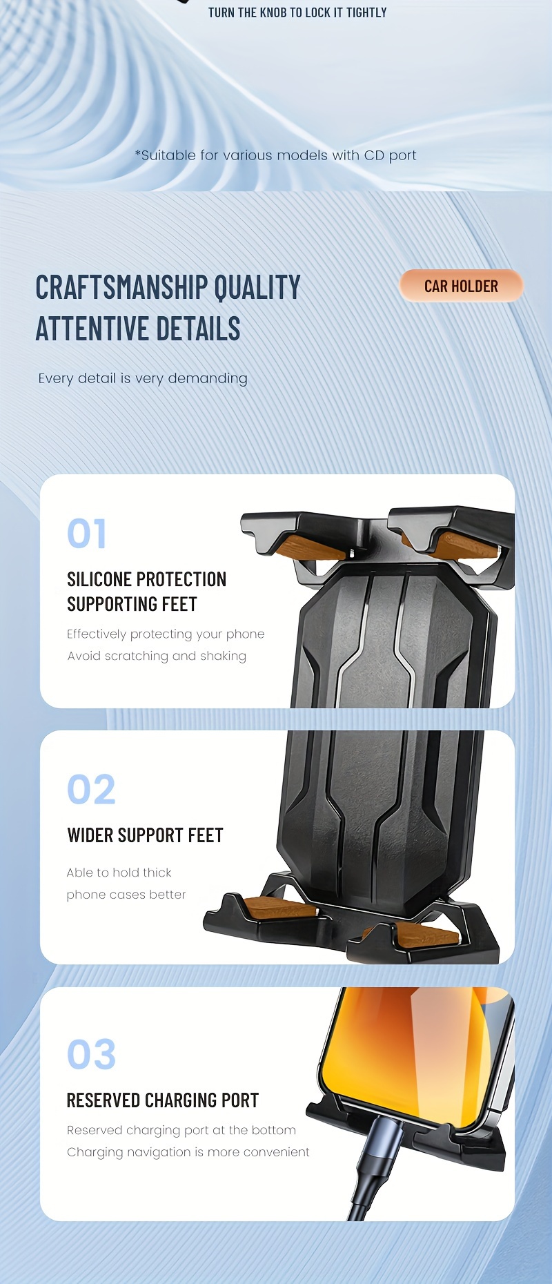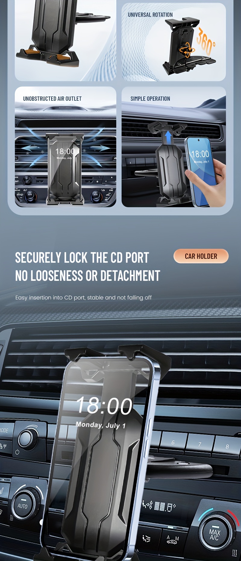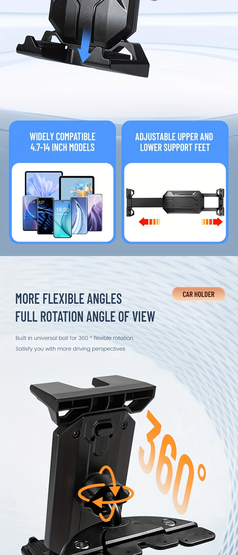 Держатель для планшета в автомобиль, крепление для слота CD, подходит для телефонов и планшетов от 11,94 до 35,56 см