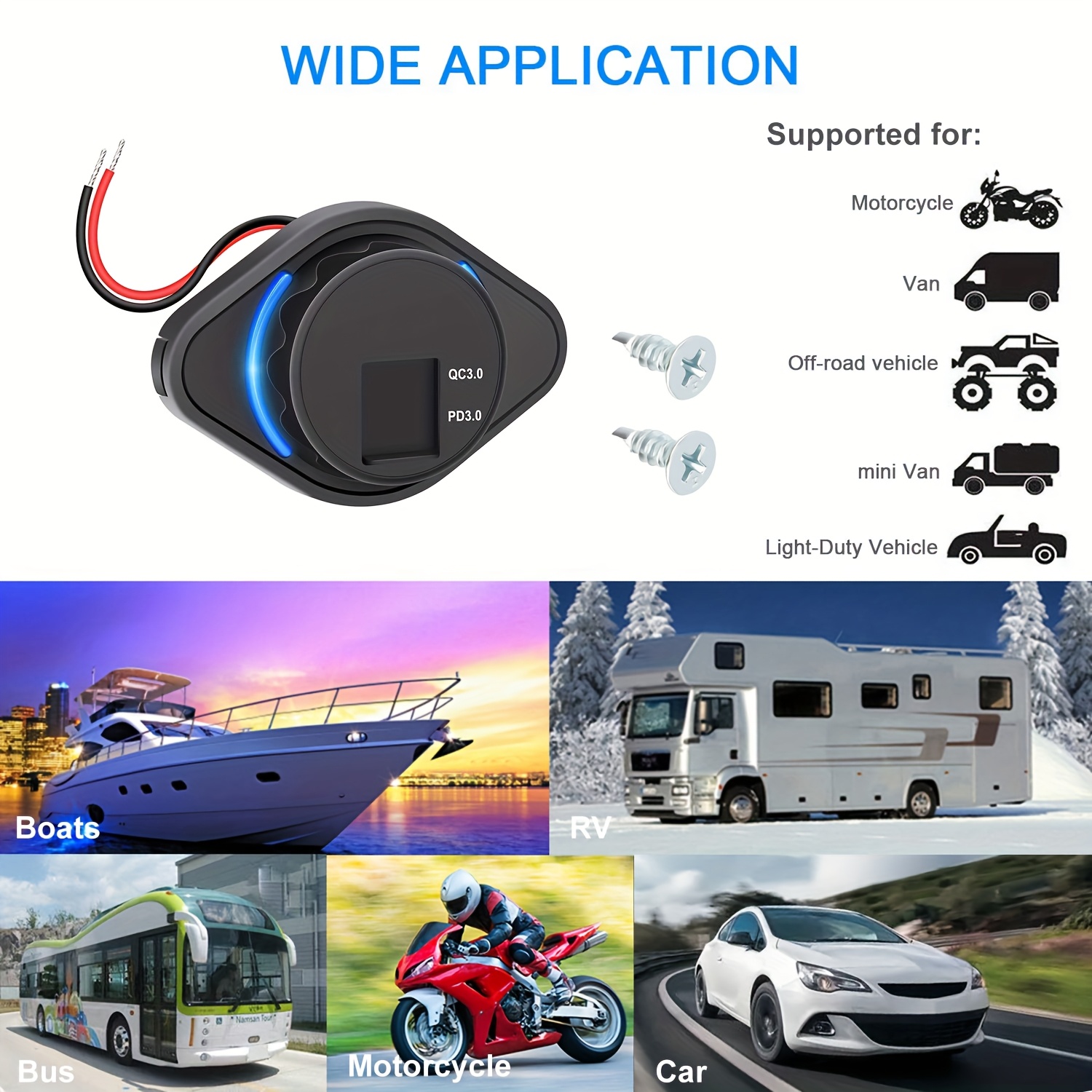 Автомобильный USB-розетка с двумя портами PD3.0 и QC3.0, 24 Вт, 12 В, 24 В, зарядное устройство Type C