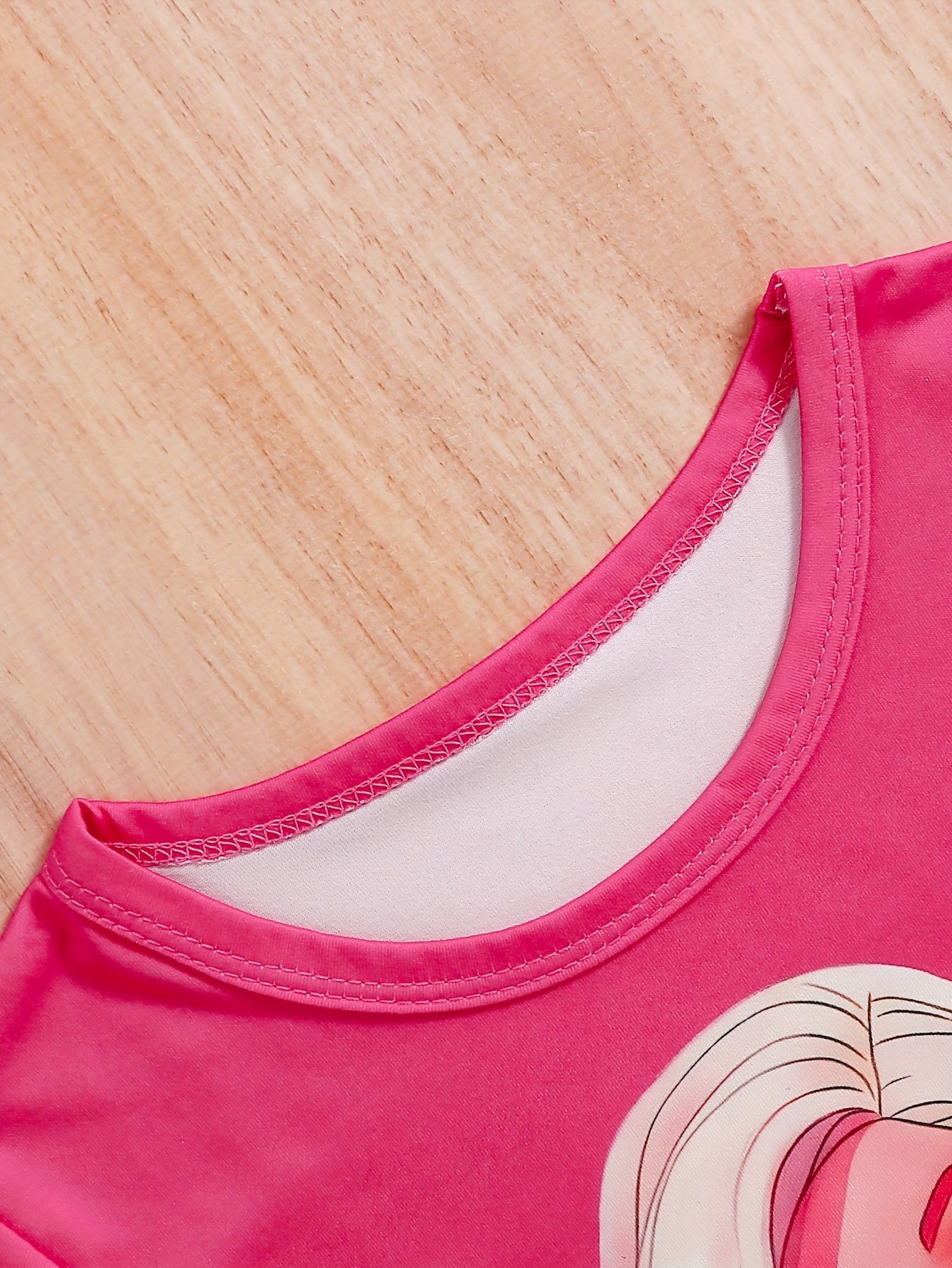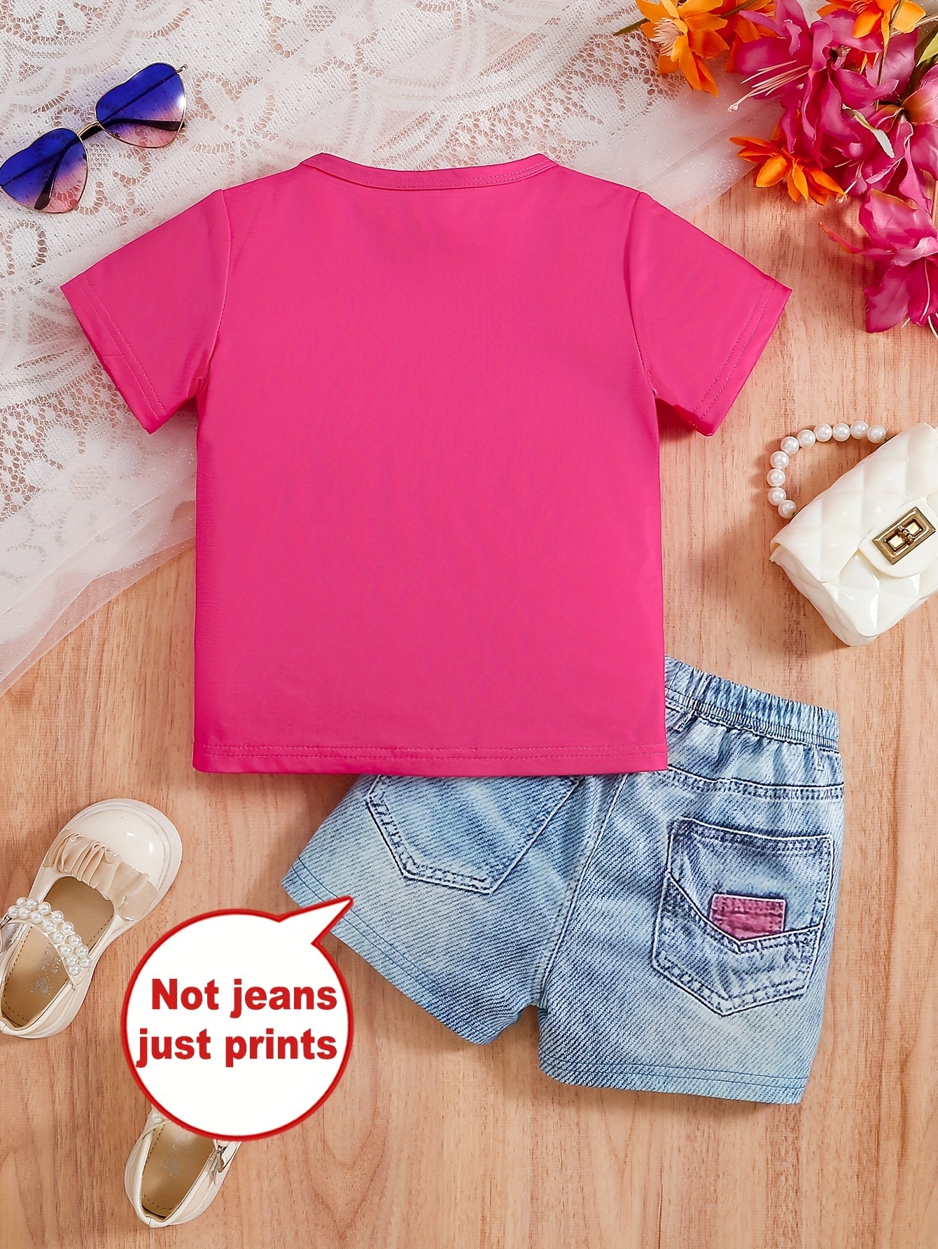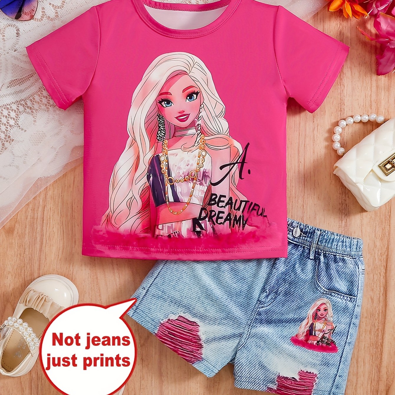 Летний комплект для девочек: топ с коротким рукавом с мультяшным принтом и шорты с графическим дизайном для активного отдыха
