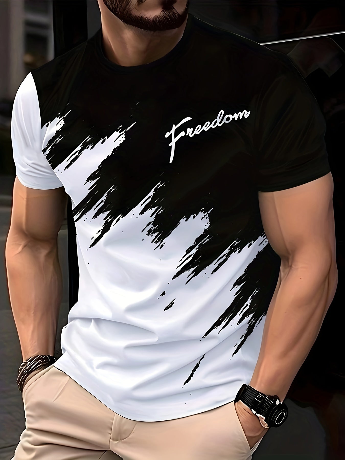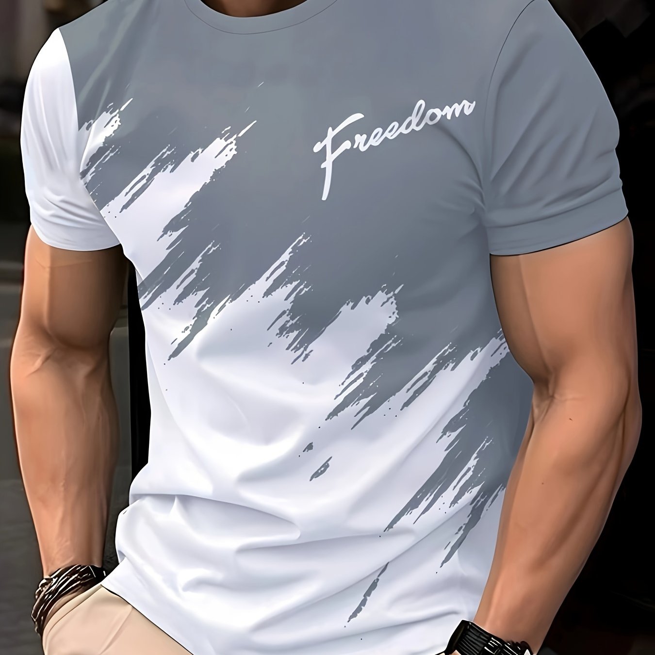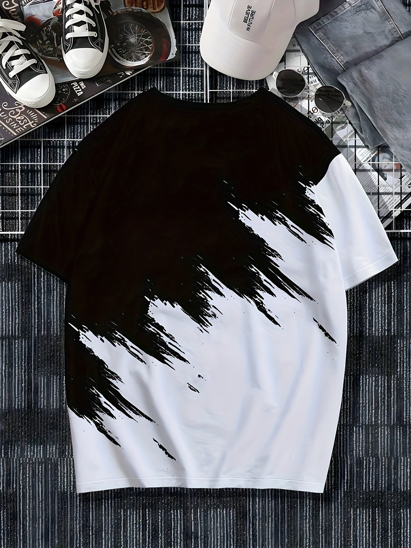 Мужская повседневная футболка с круглым вырезом и геометрическим принтом из мягкой полиэстеровой ткани