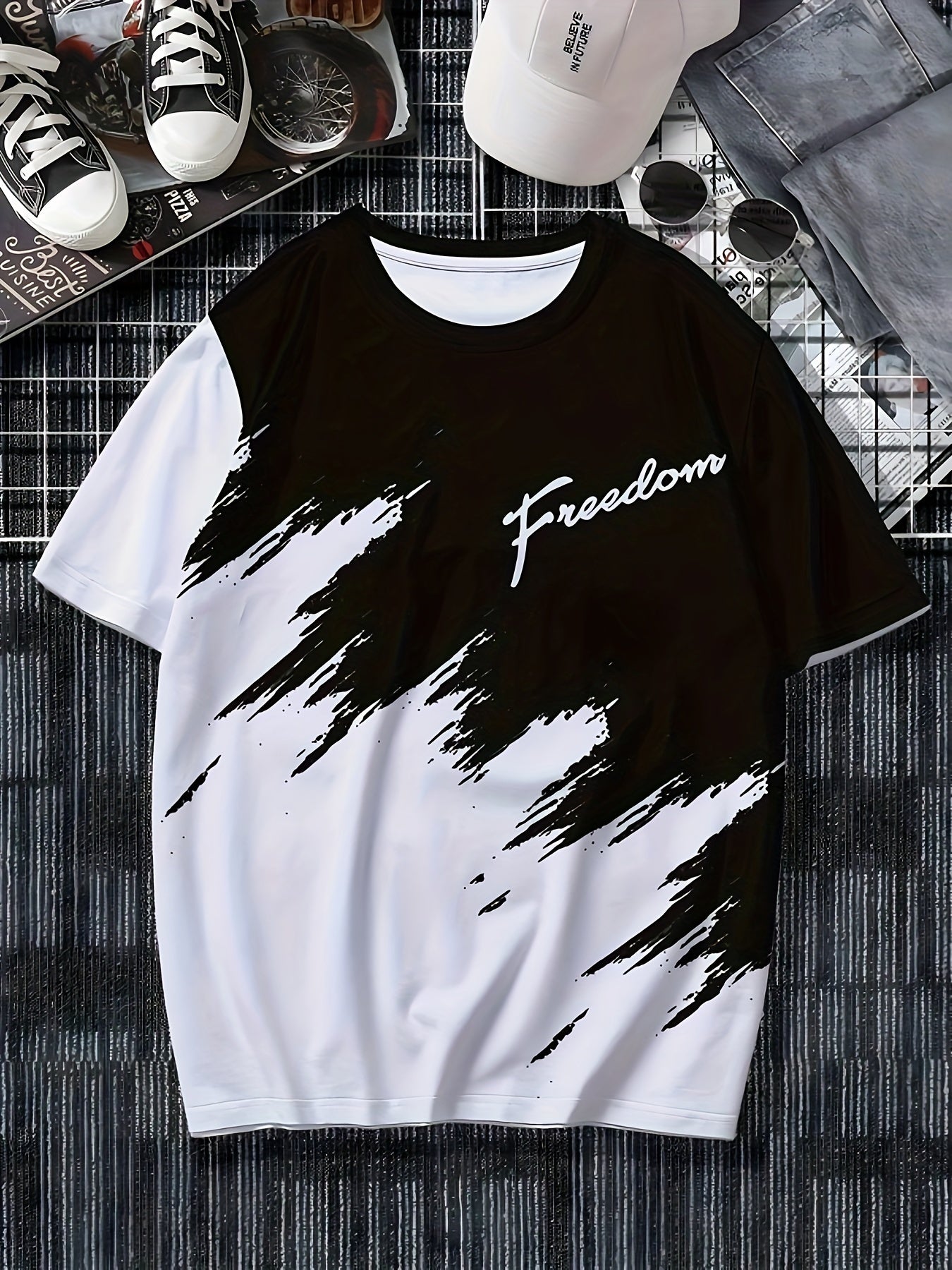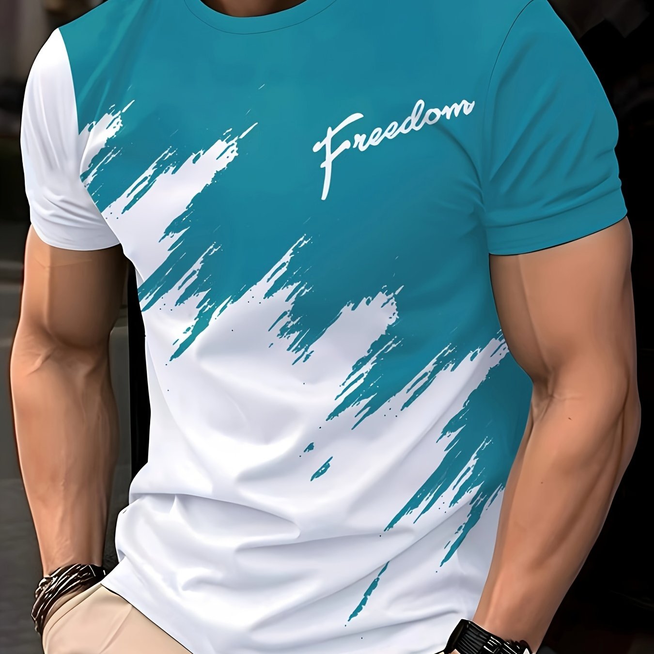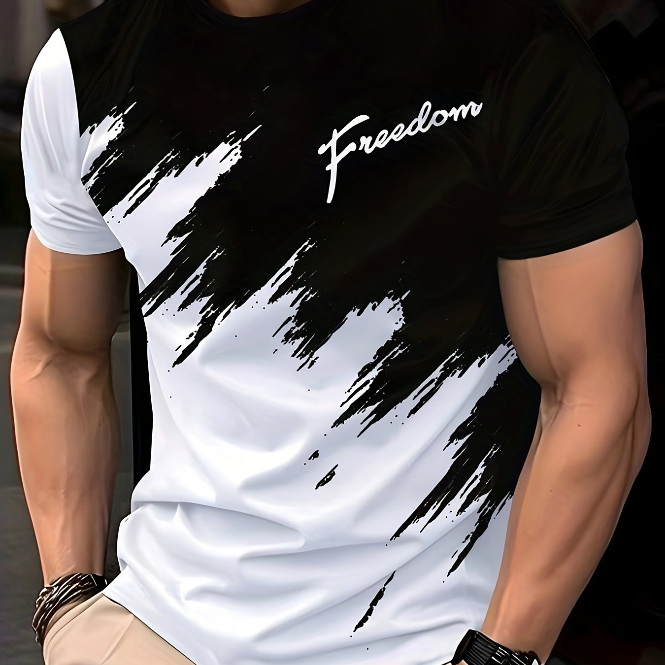 Мужская повседневная футболка с круглым вырезом и геометрическим принтом из мягкой полиэстеровой ткани