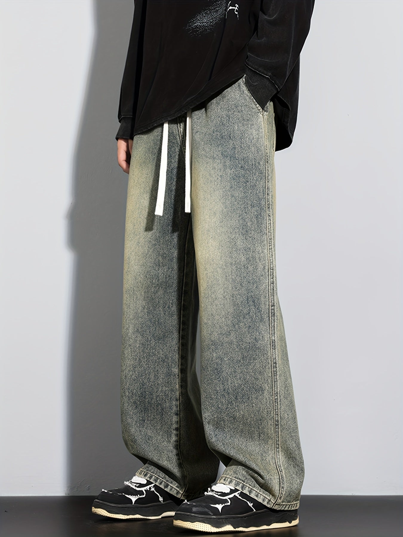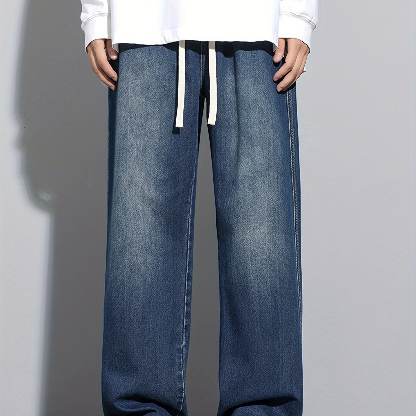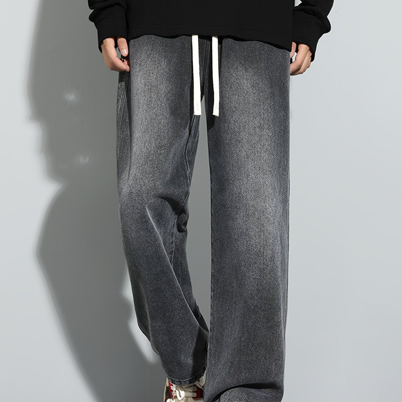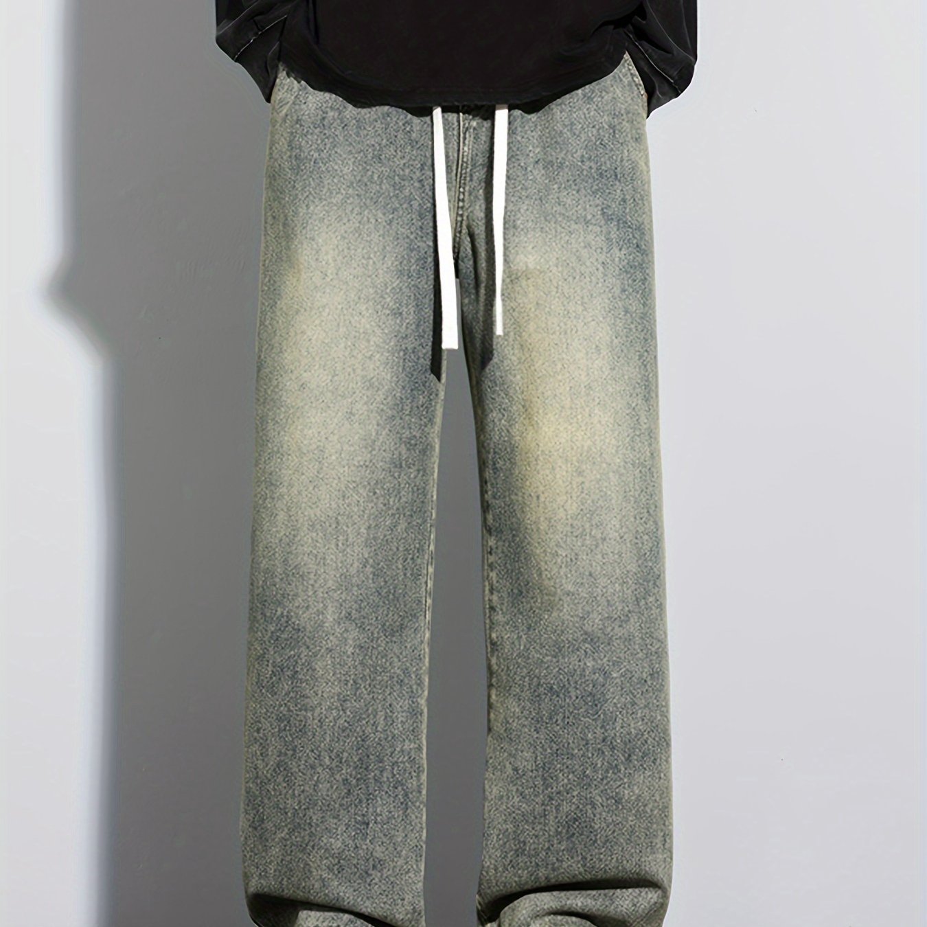 Мужские повседневные свободные джинсы с эластичным поясом из стёганого денима, без растяжения, доступны в 5 цветах