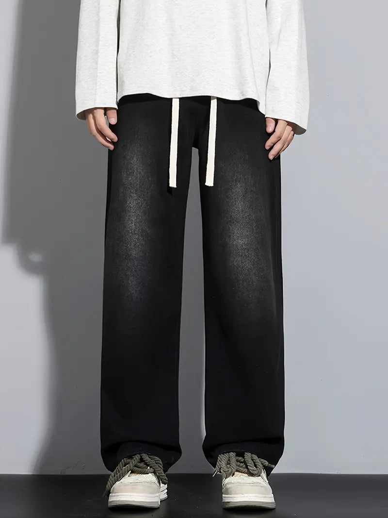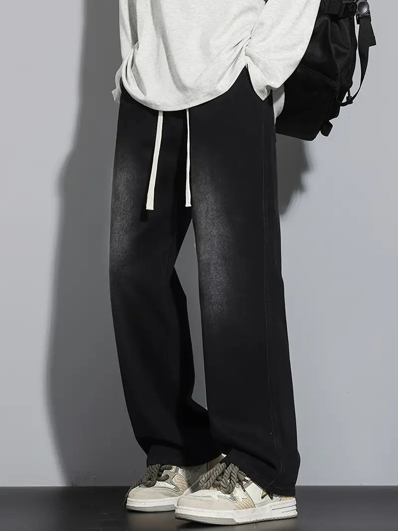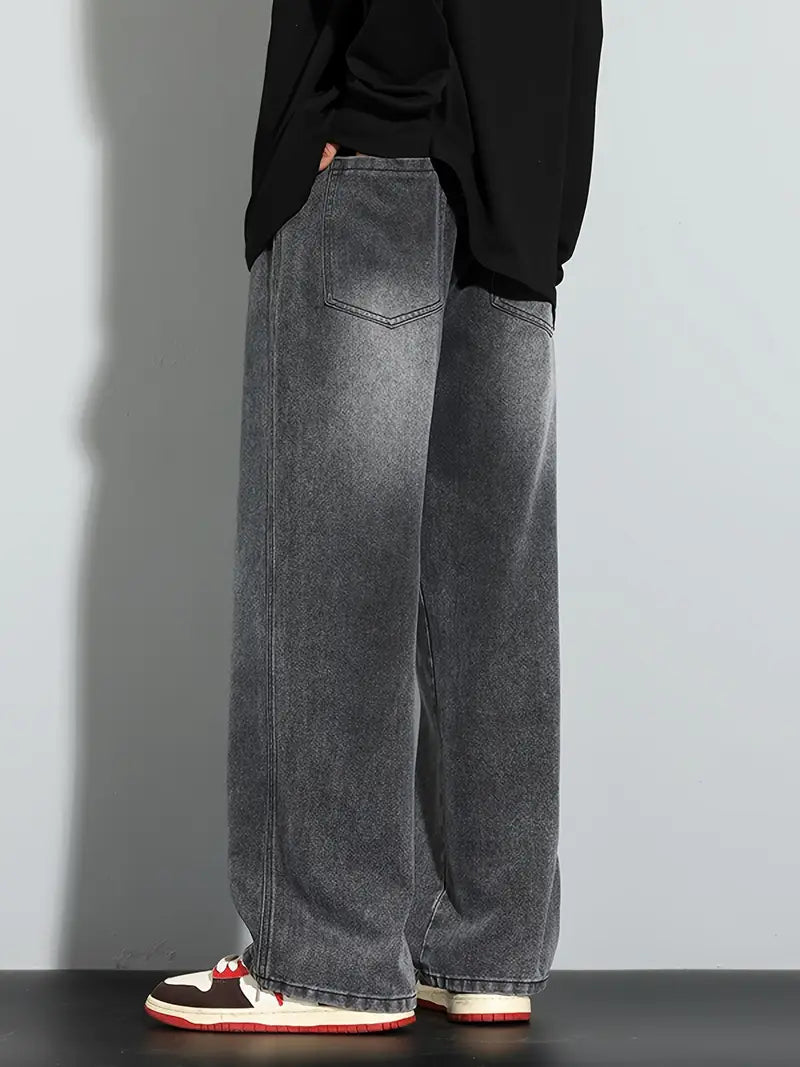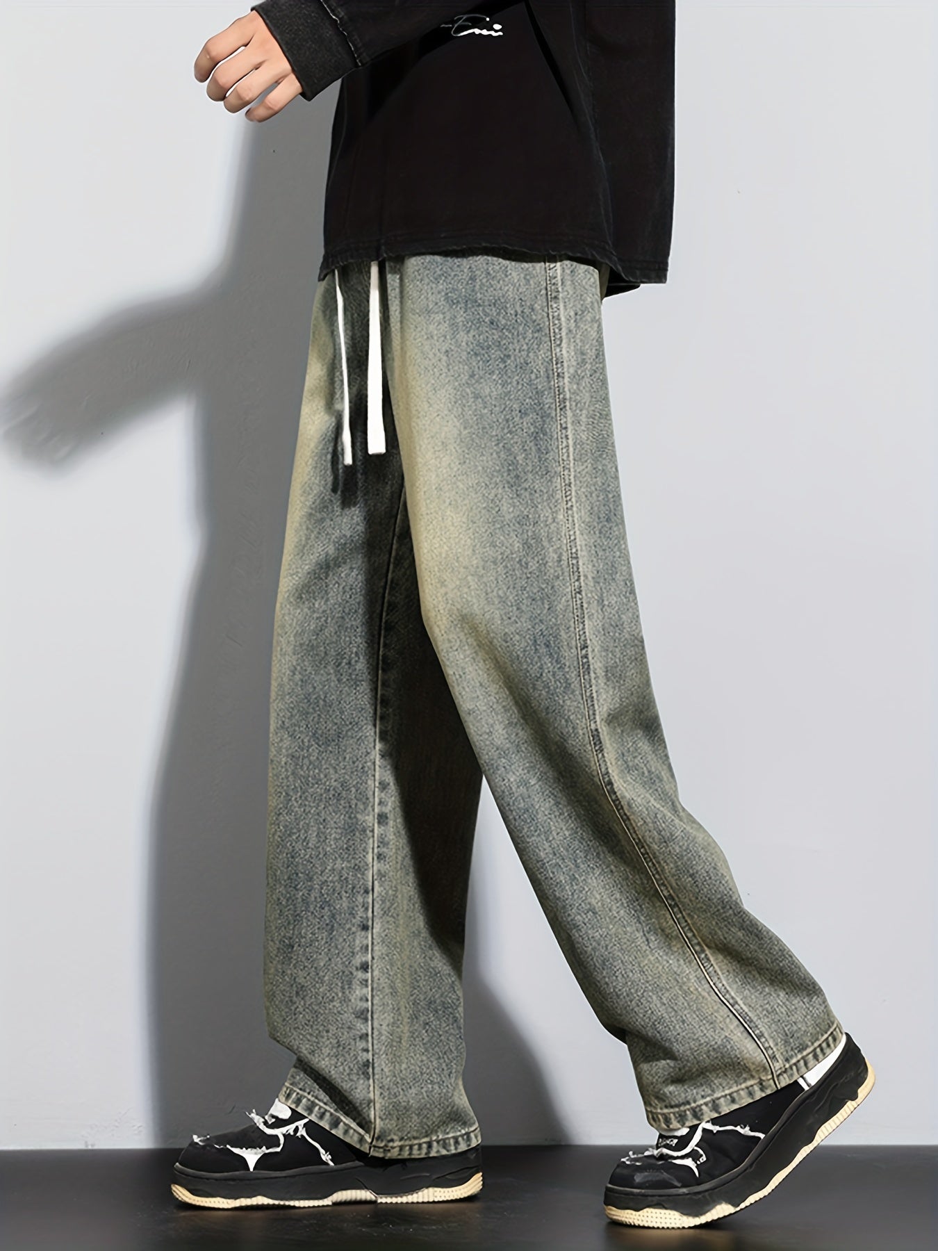 Мужские повседневные свободные джинсы с эластичным поясом из стёганого денима, без растяжения, доступны в 5 цветах