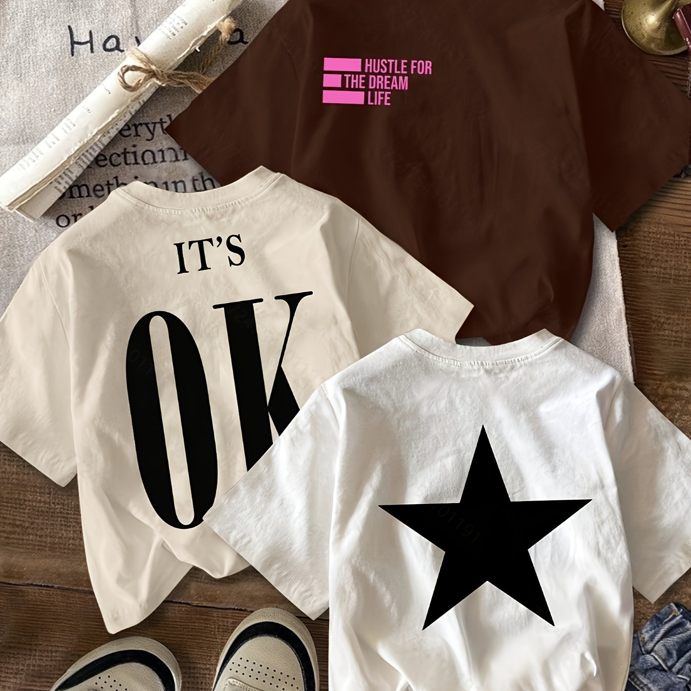 Кэжуал минималистичные футболки с принтом звезд и букв, укороченные, облегающего кроя для женщин, лето, набор из 3 штук.