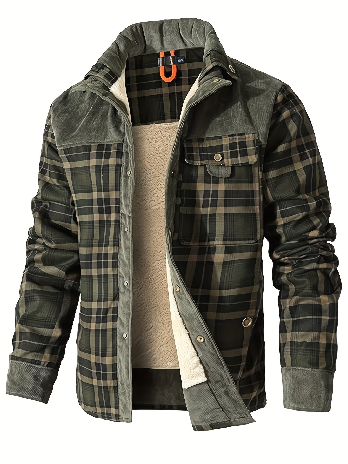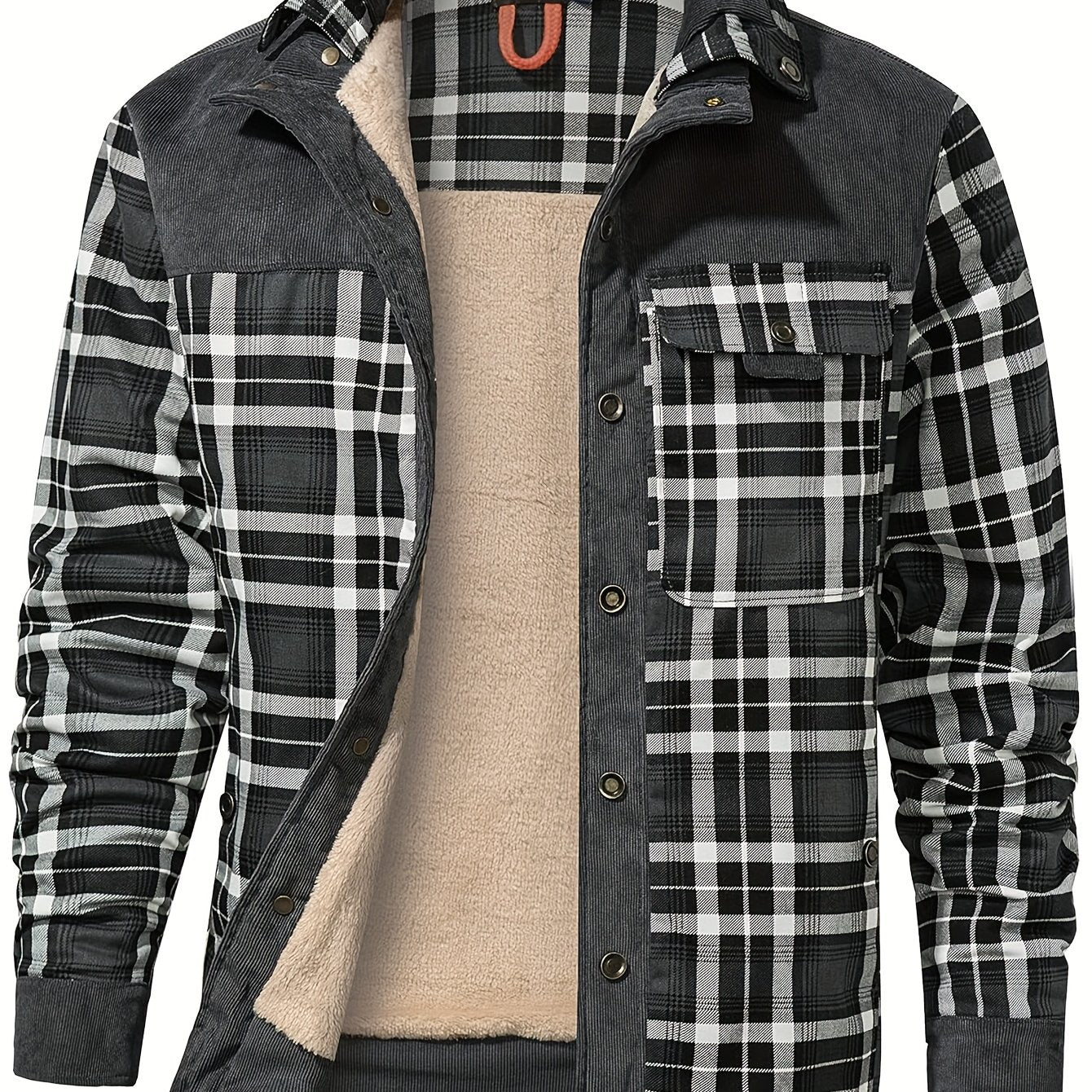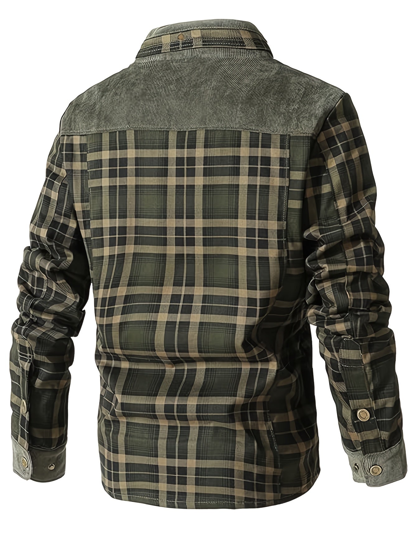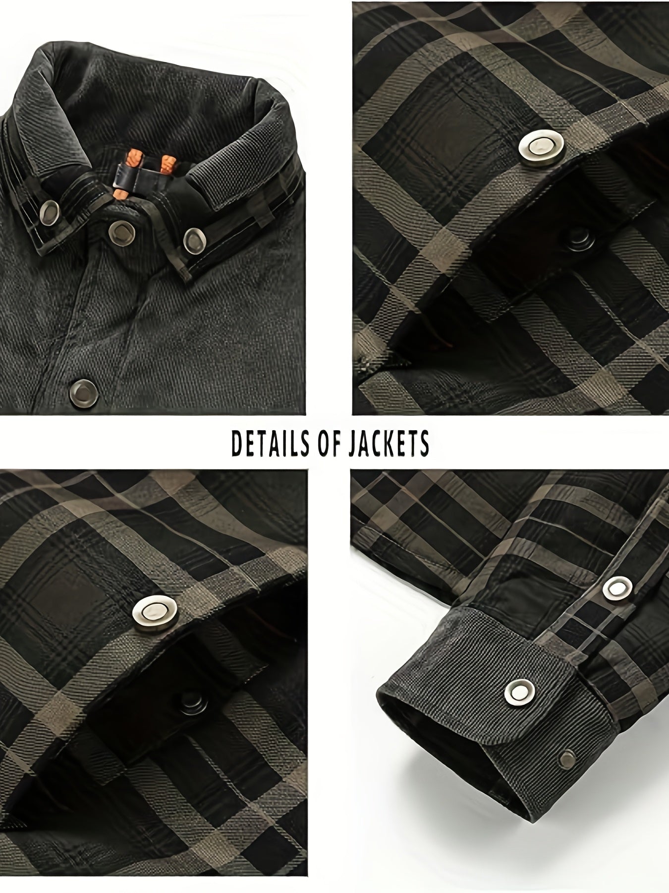 Мужская полиэстеровая клетчатая повседневная куртка осень-зима с длинным рукавом, лацканом и застежкой на пуговицы