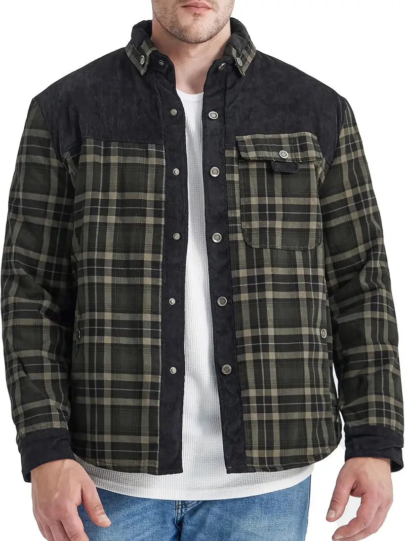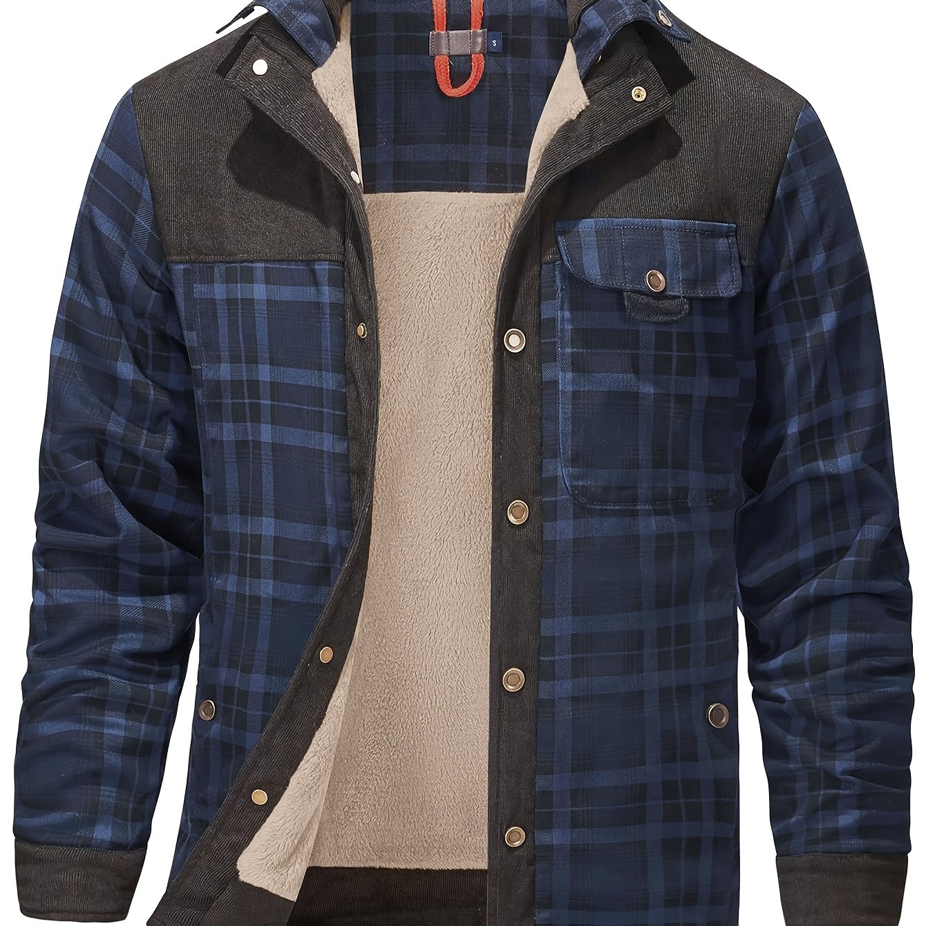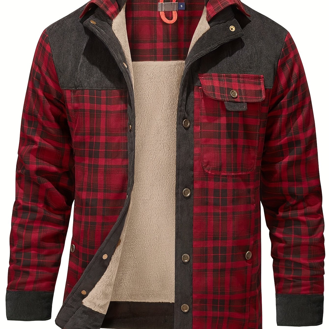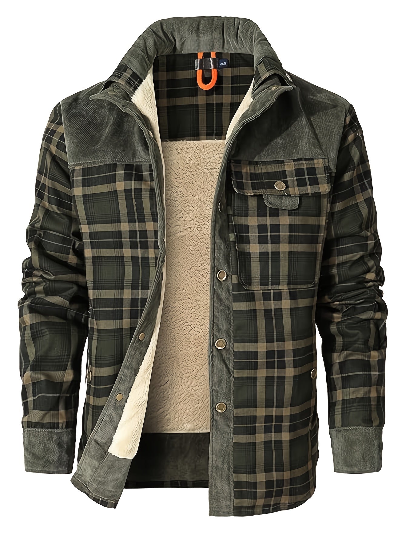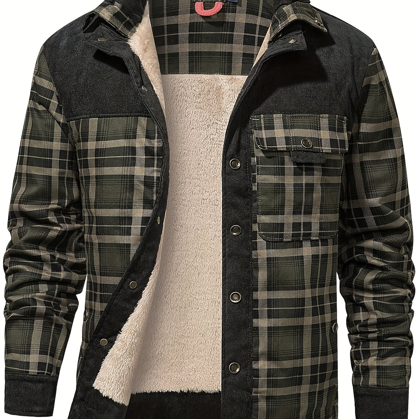 Мужская полиэстеровая клетчатая повседневная куртка осень-зима с длинным рукавом, лацканом и застежкой на пуговицы