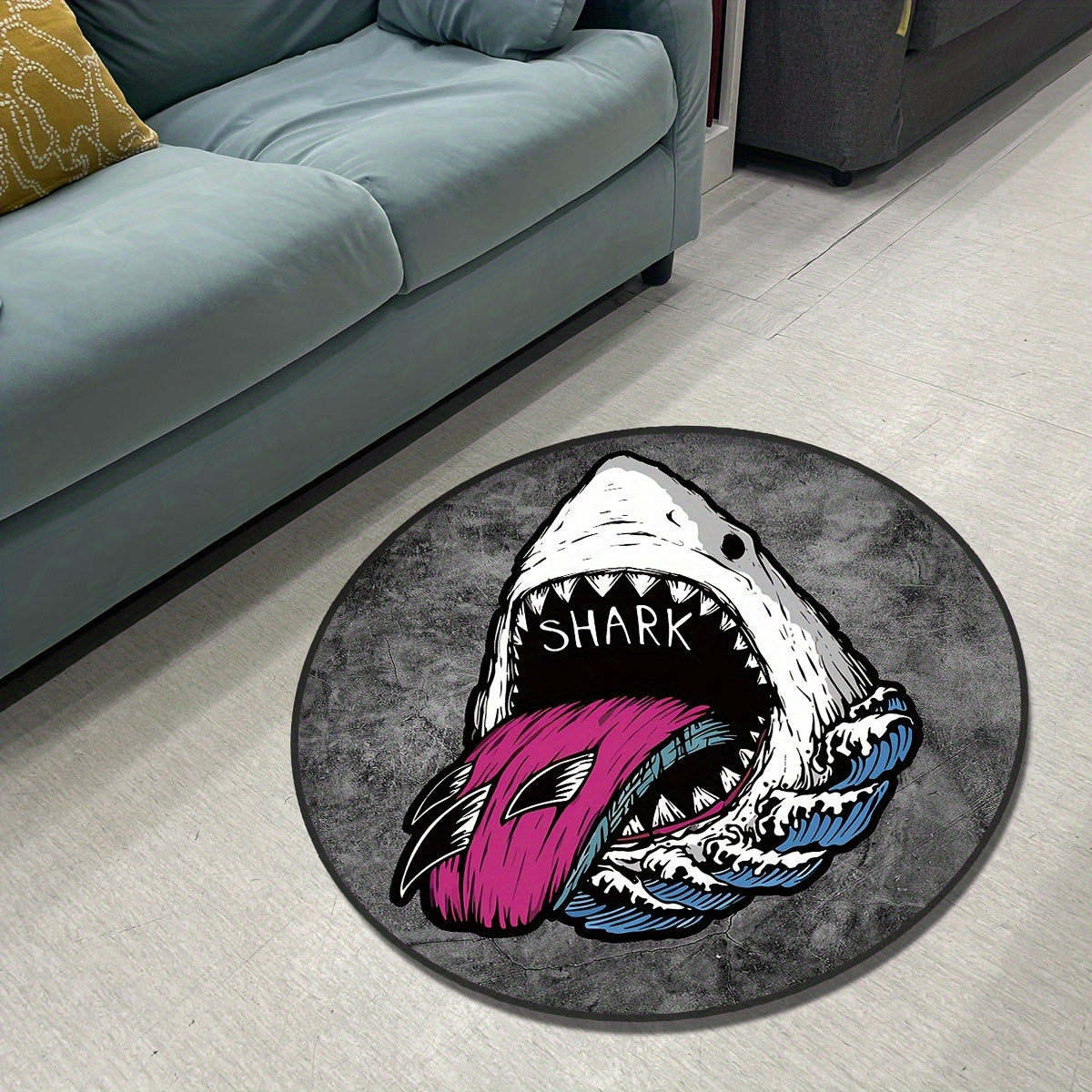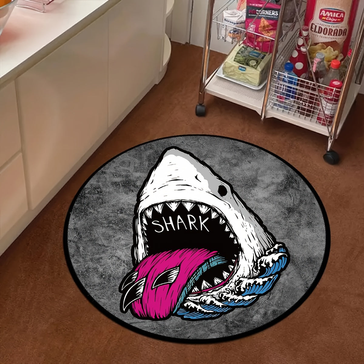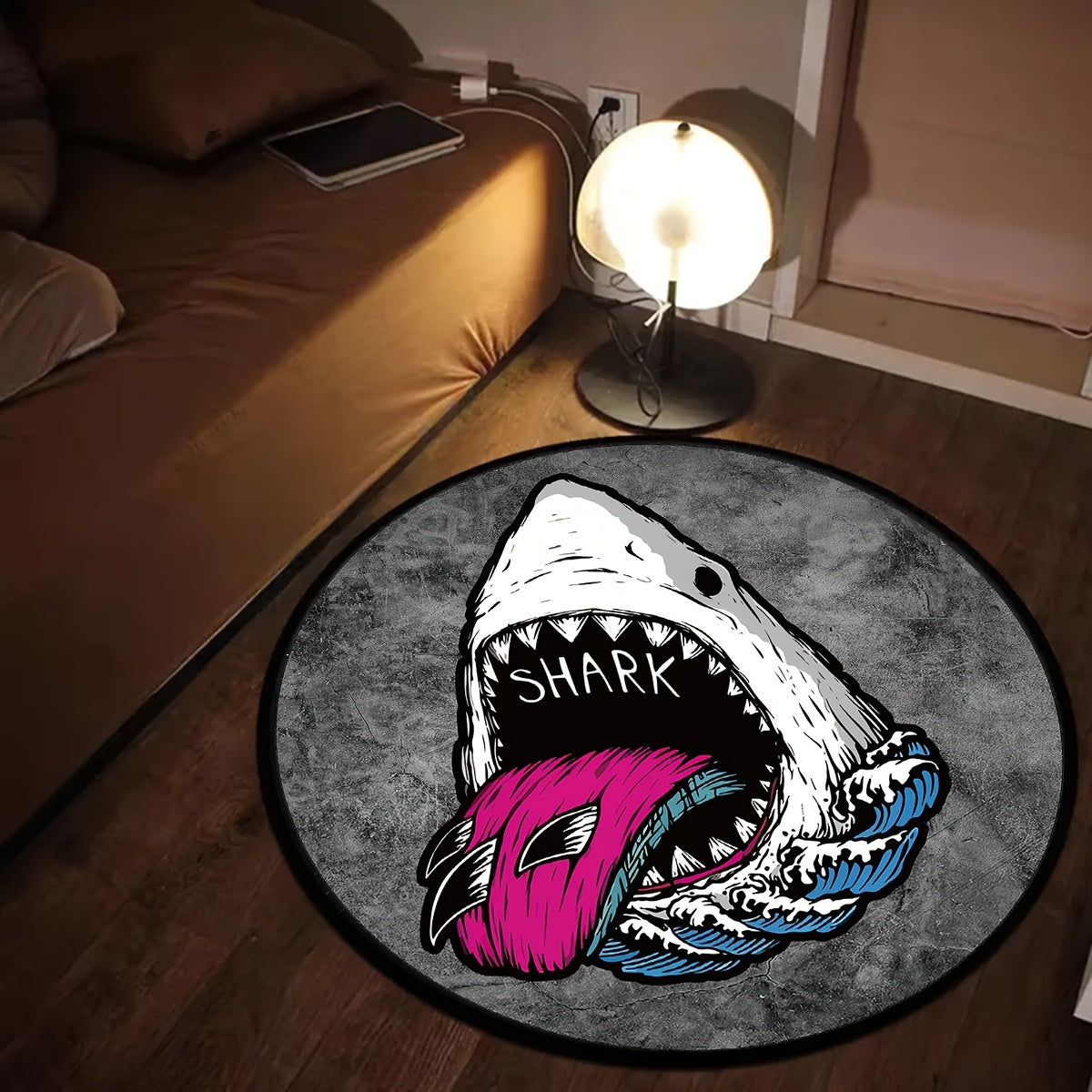 Коврик для пола с изображением акулы, круглый, мягкий, вязаный, нескользящий, из полиэстера, для использования в помещении, домашний декор