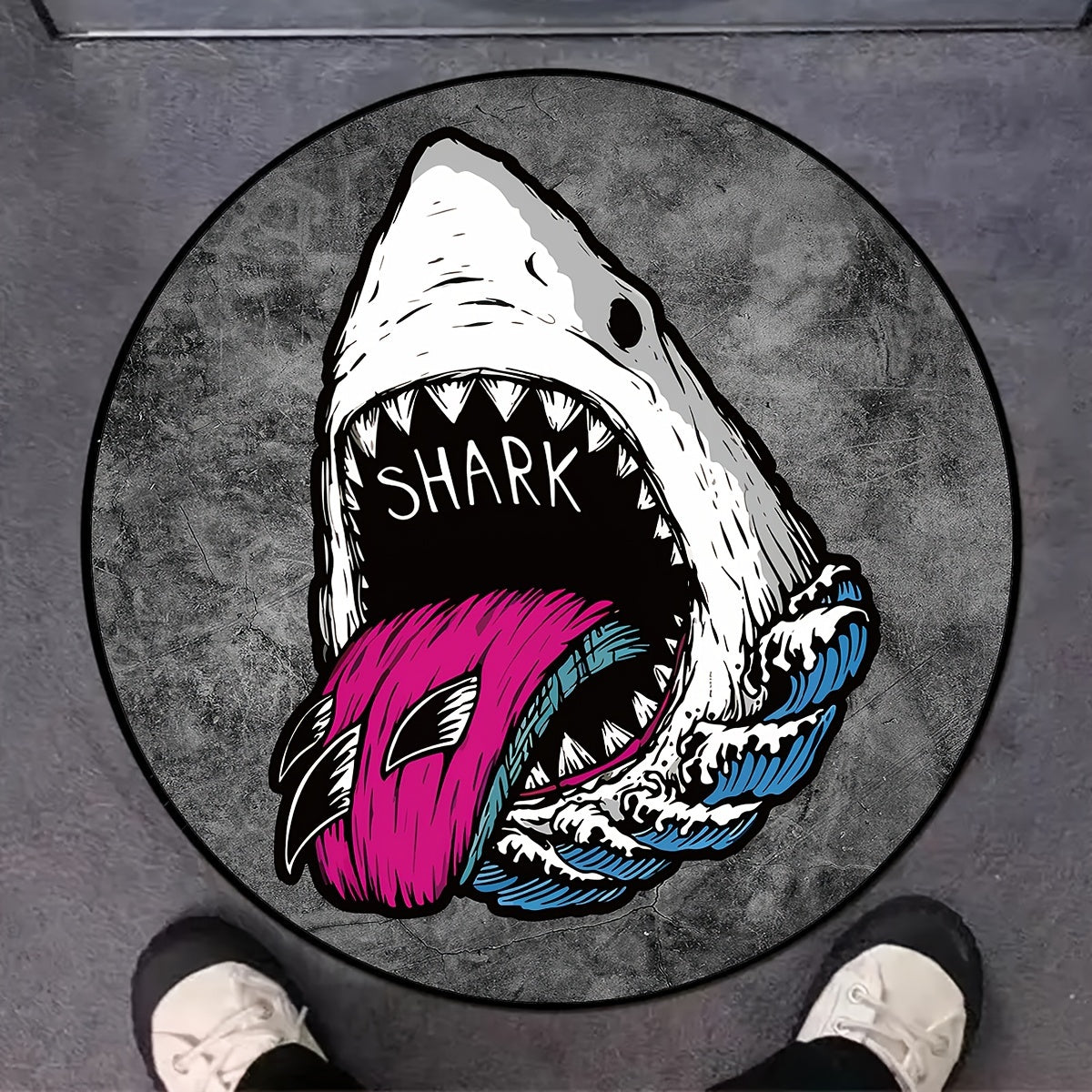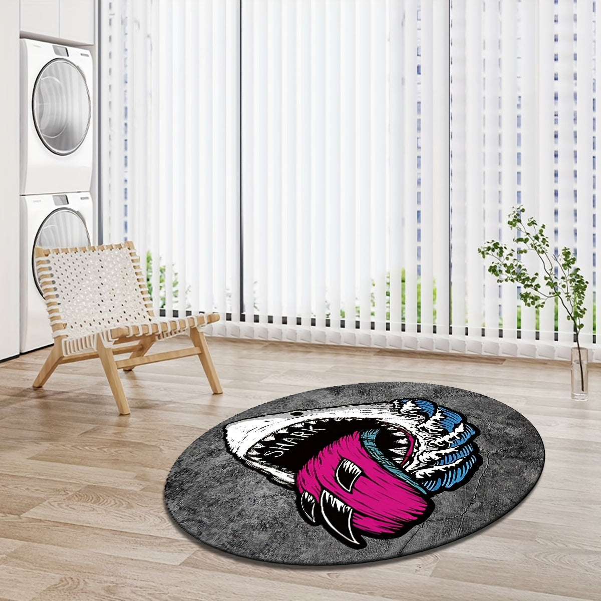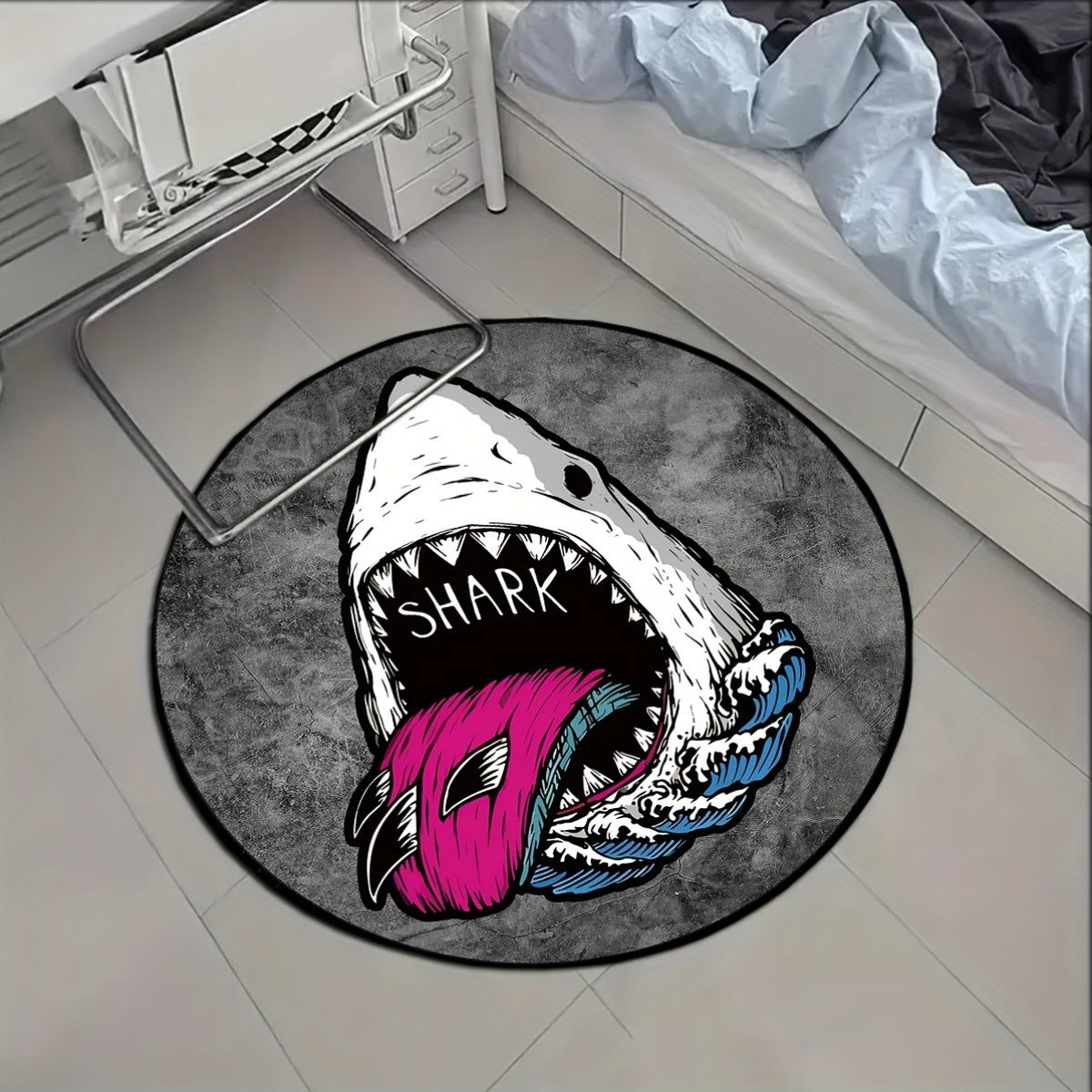 Коврик для пола с изображением акулы, круглый, мягкий, вязаный, нескользящий, из полиэстера, для использования в помещении, домашний декор