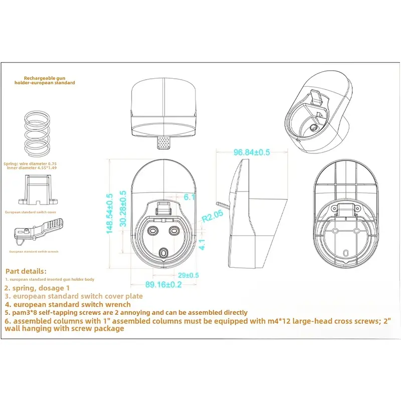 Держатель кабеля зарядки ABS настенный крепеж для зарядных устройств электромобилей