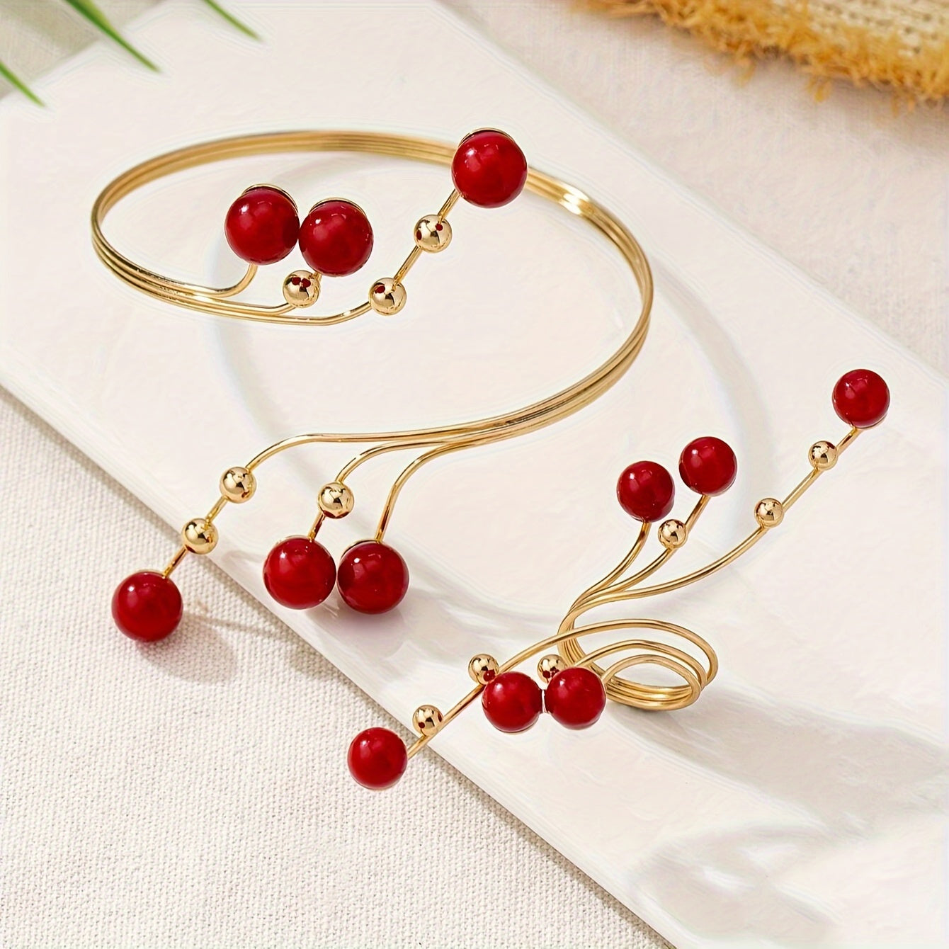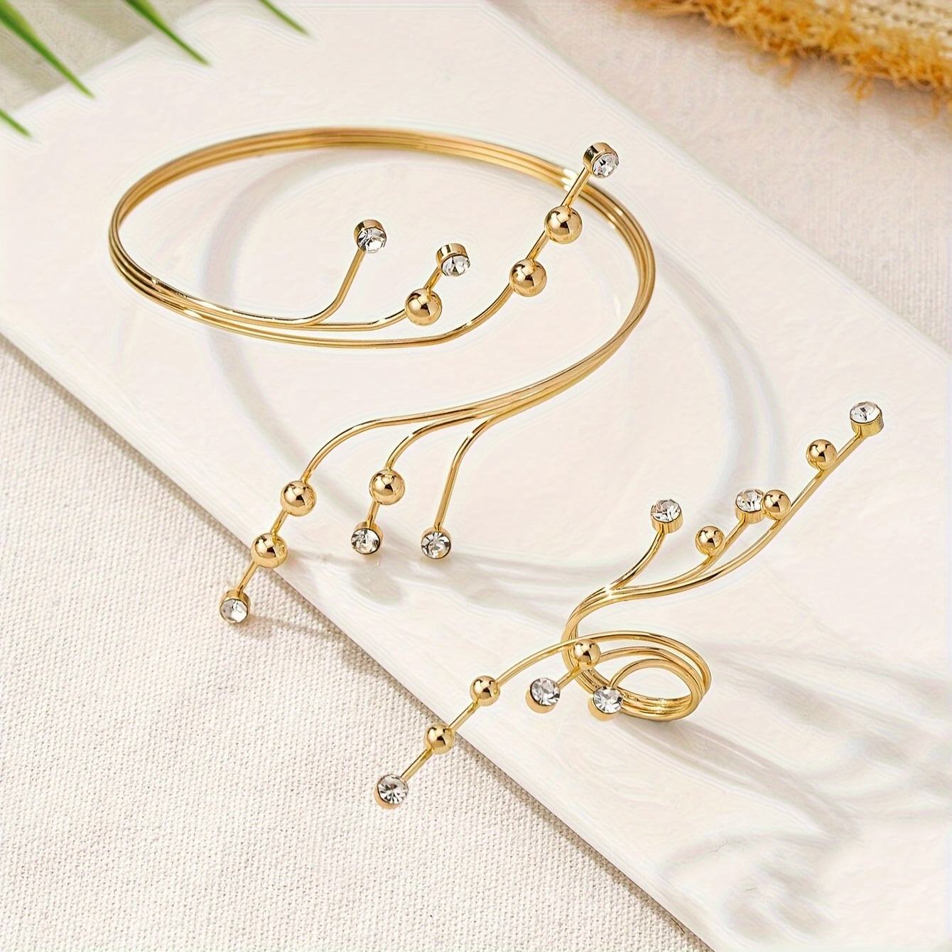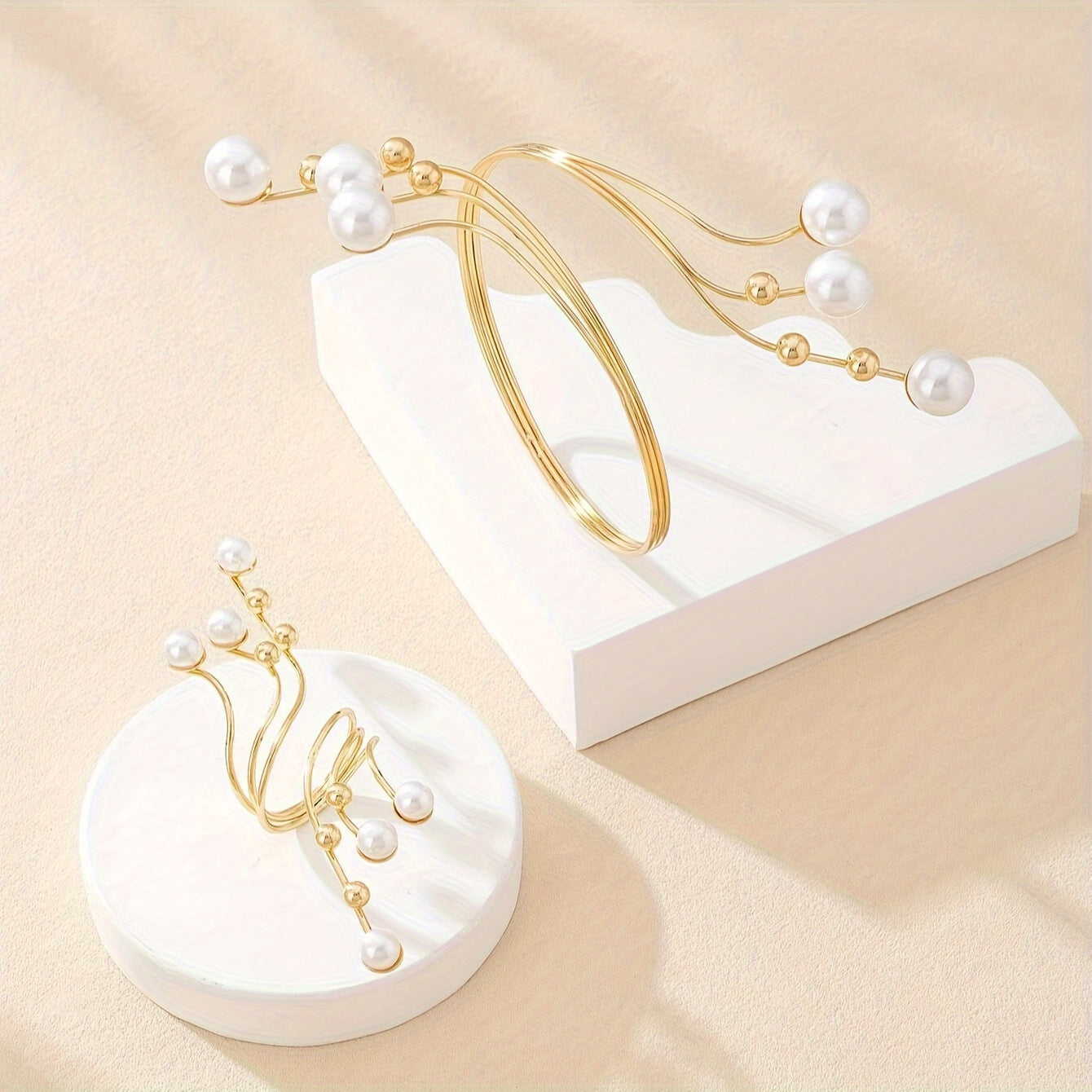 Стильный 2-частный набор украшений для рук для женщин - элегантный креативный дизайн с использованием железной цепи, золотистым покрытием, жемчугом и бусинами - универсальный комплект браслет и кольцо, идеально подходящий для повседневной носки и подарков