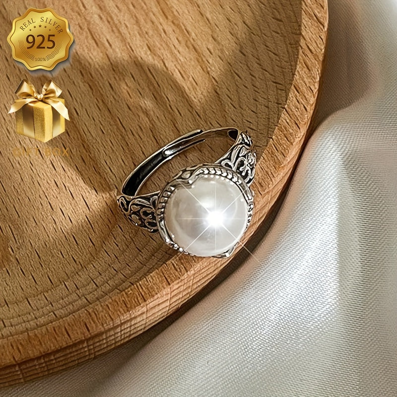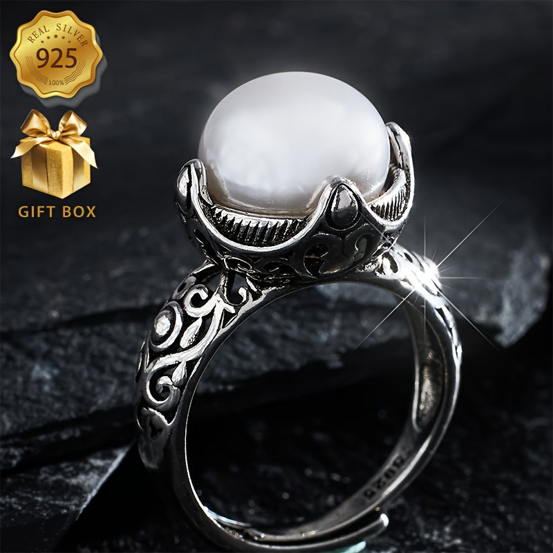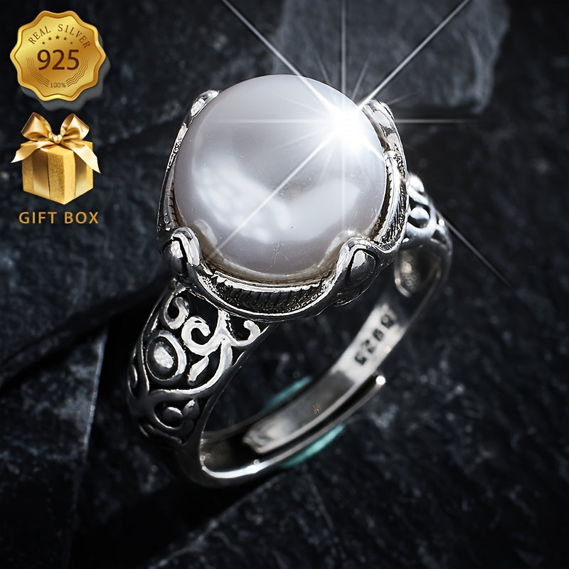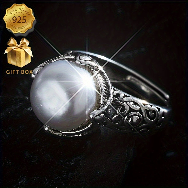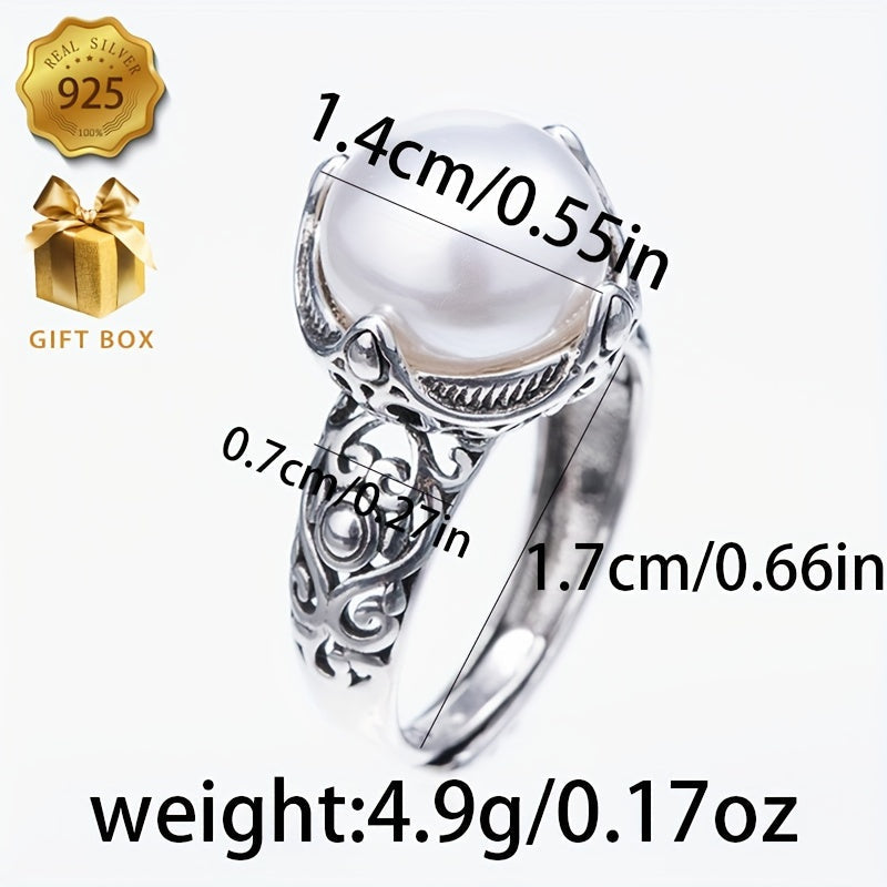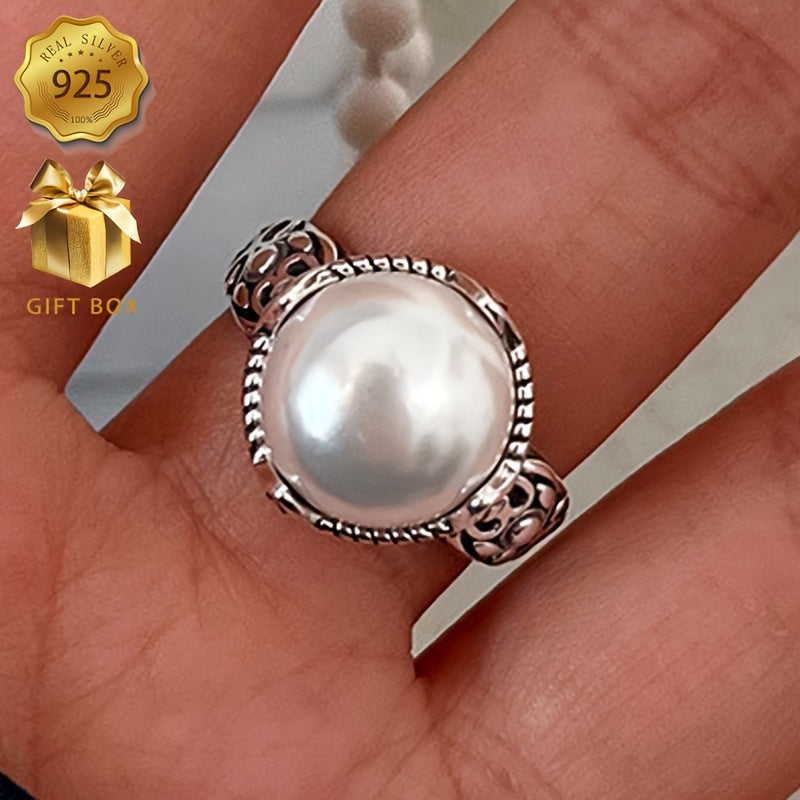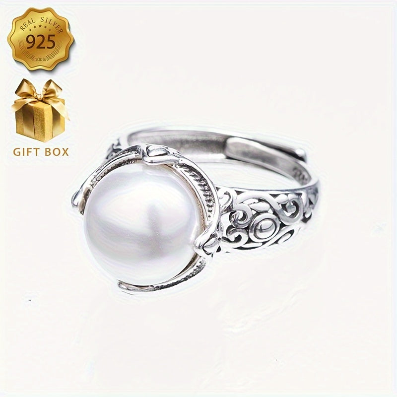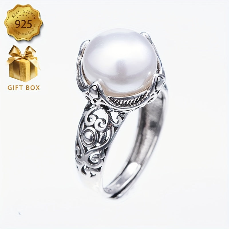 Шикарное кольцо из 925 стерлингового серебра с полым дизайном и круглой пресноводной жемчужиной для женщин - гипоаллергенное, идеально подходит для повседневной носки или отпуска