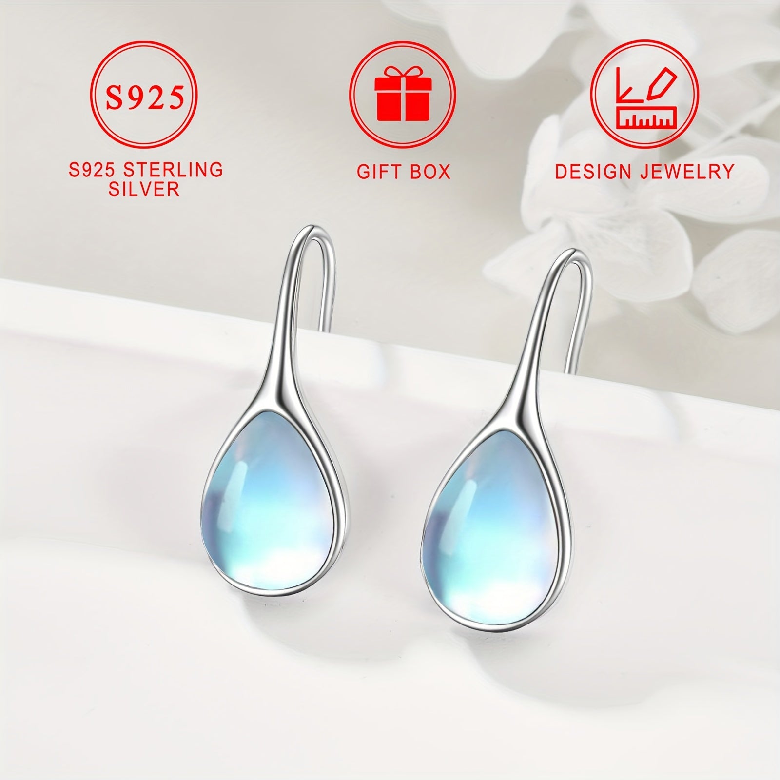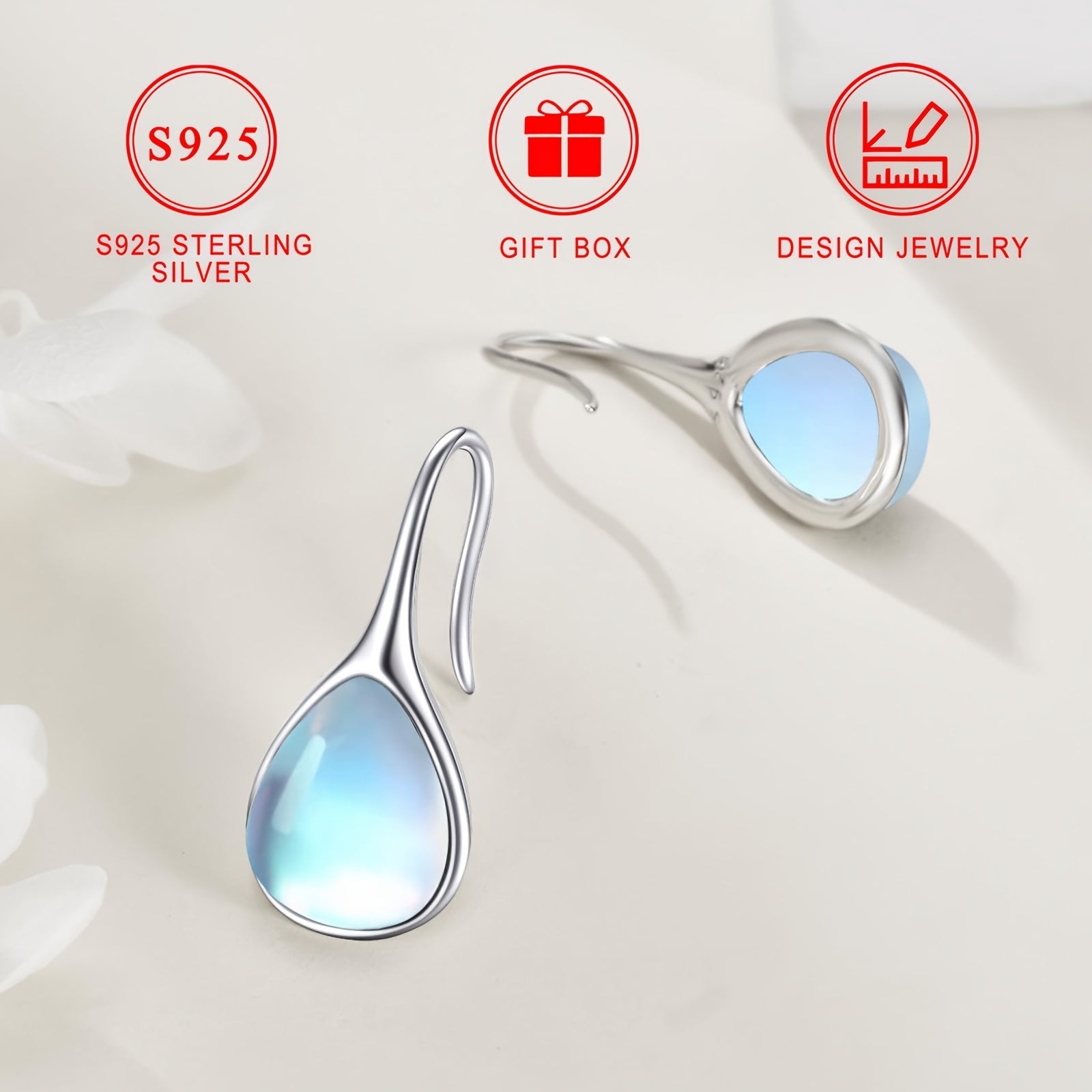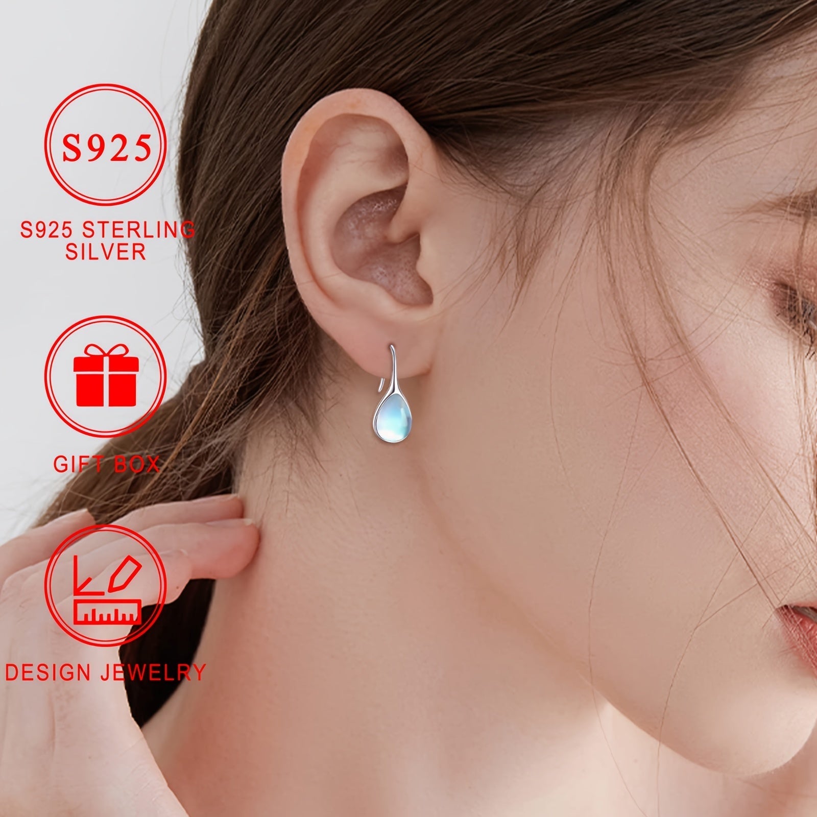Серебряные серьги-капли с лунным камнем гипоаллергенные минималистичные украшения