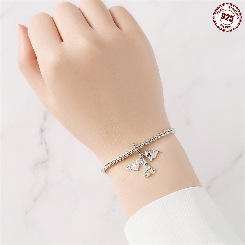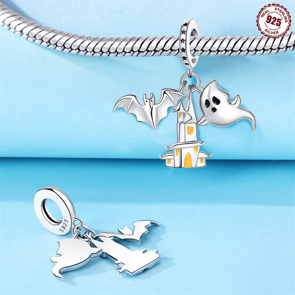 Серебряный шарм с замком-призраком и летучей мышью, камень рождения в ноябре для браслетов