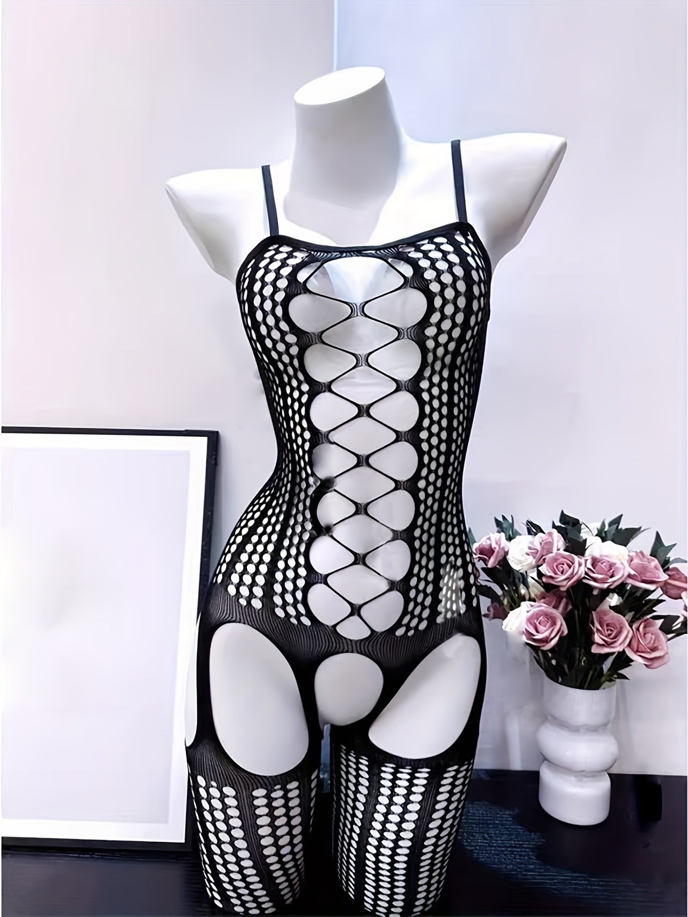 Шикарный черный сетчатый боди с вырезами, прозрачный накидка, высокоэластичный нейлон/эластан. Можно стирать вручную, идеально подходит для музыкальных фестивалей и пляжной одежды.