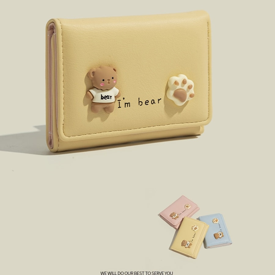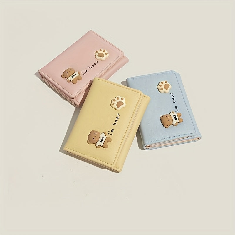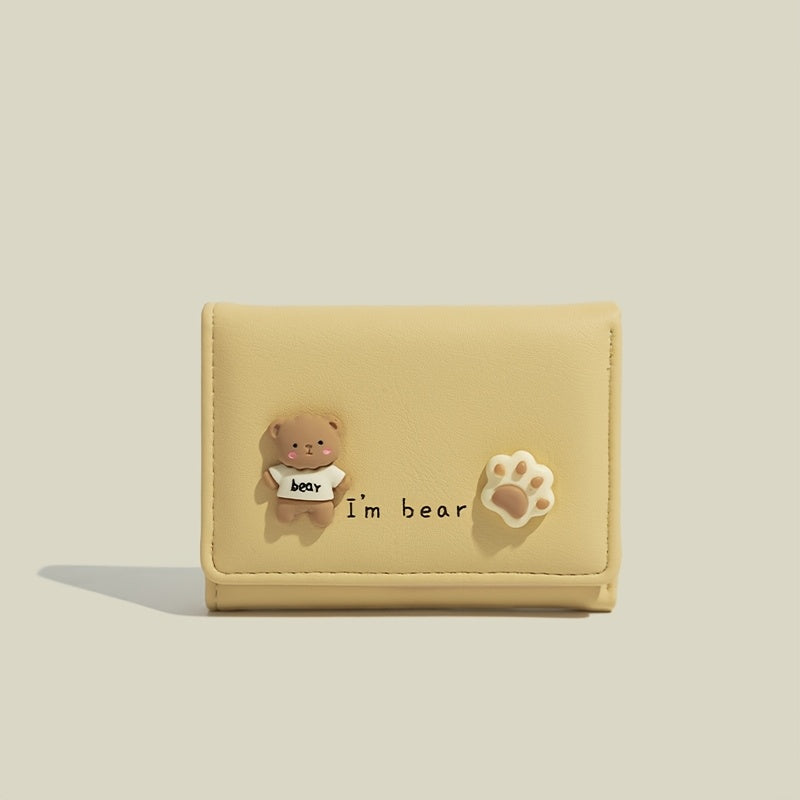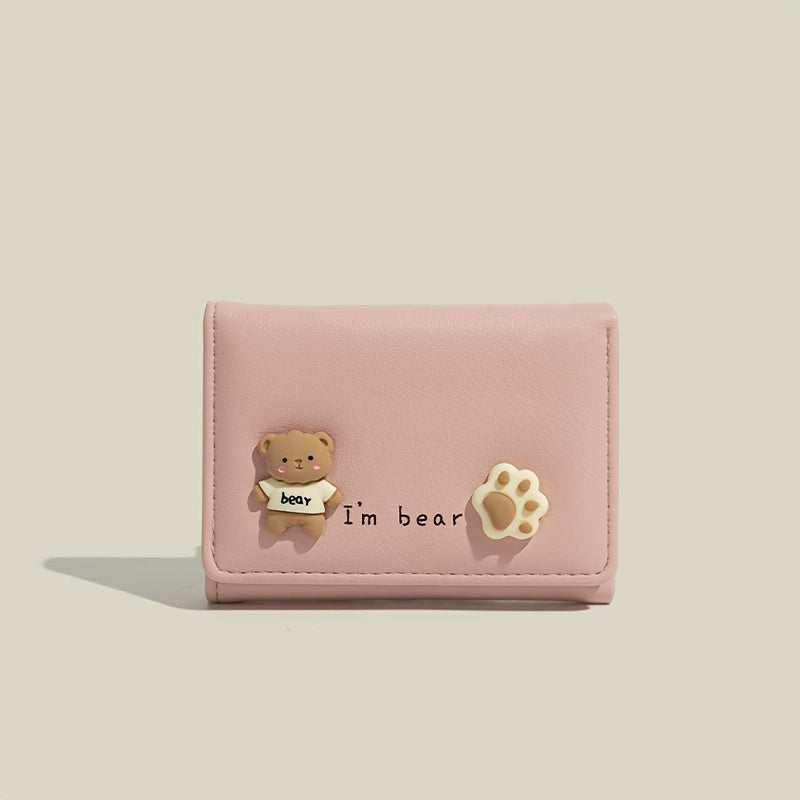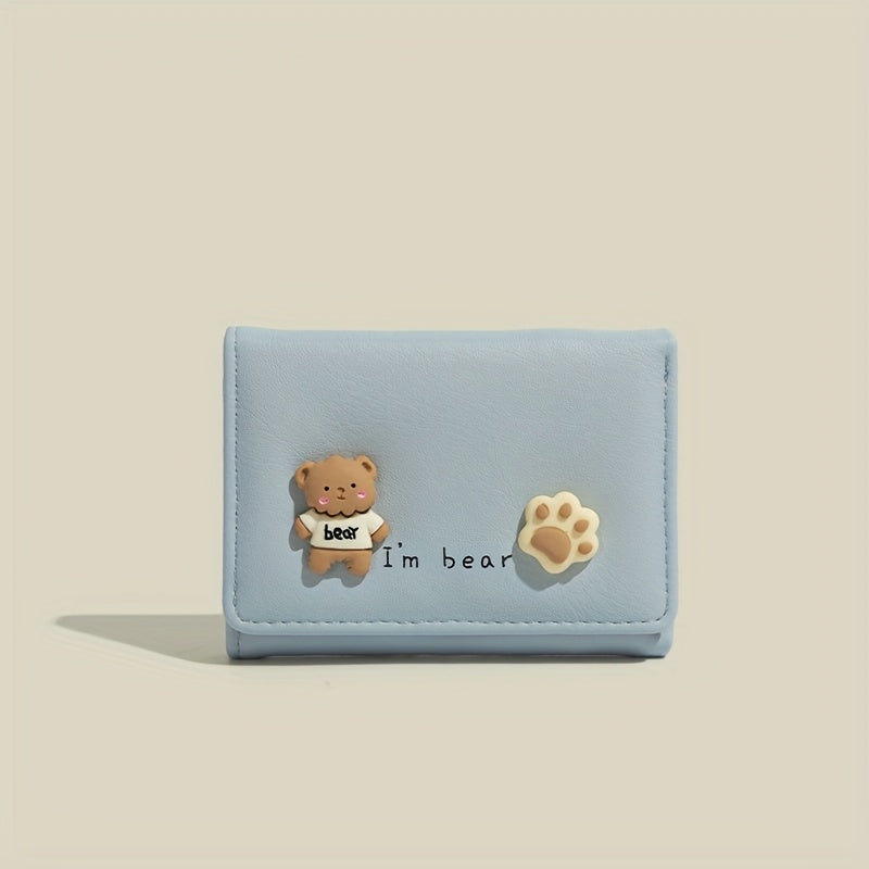 Стильный компактный складной кошелек для женщин с милым мультяшным дизайном и тонким искусственным кожаным держателем для карт.
