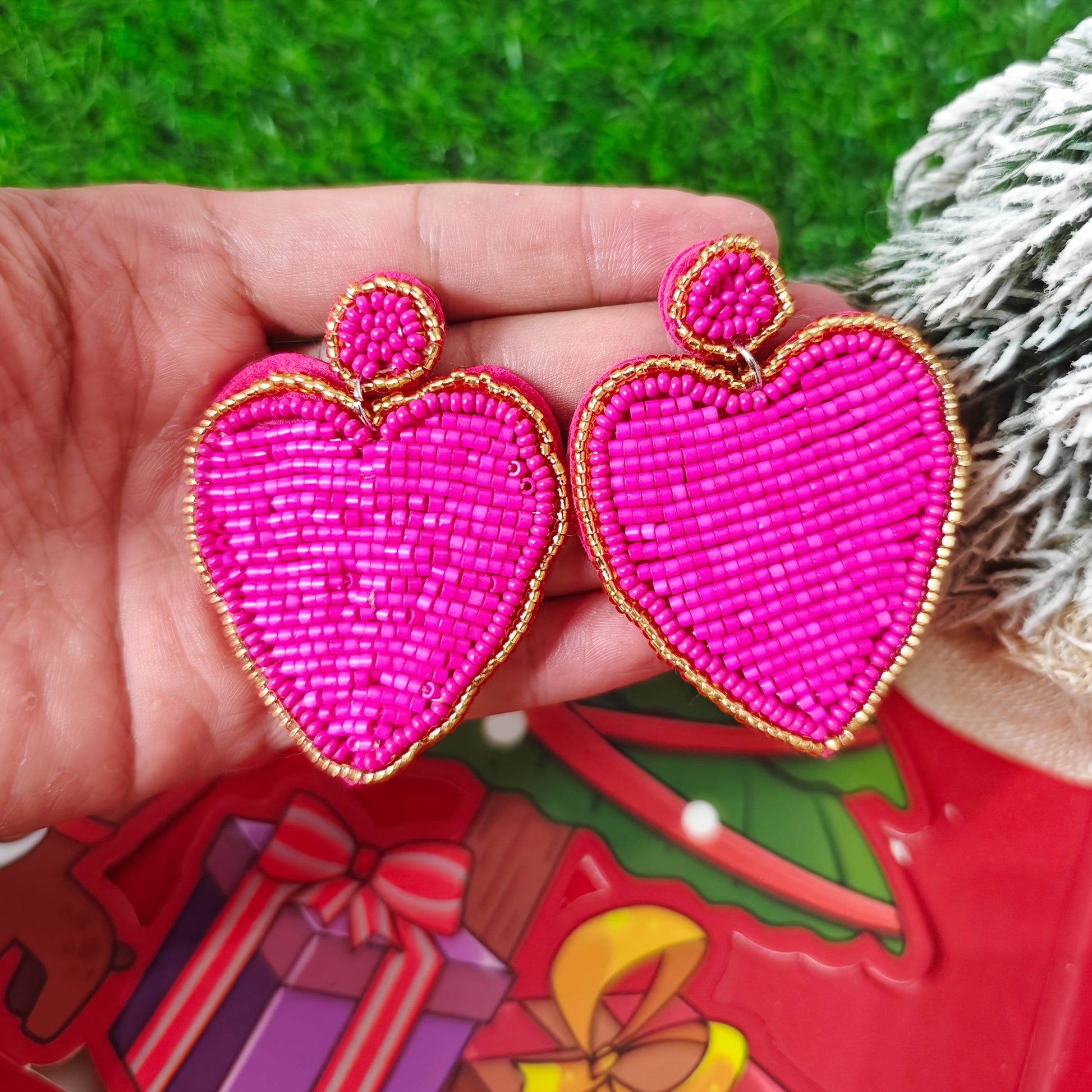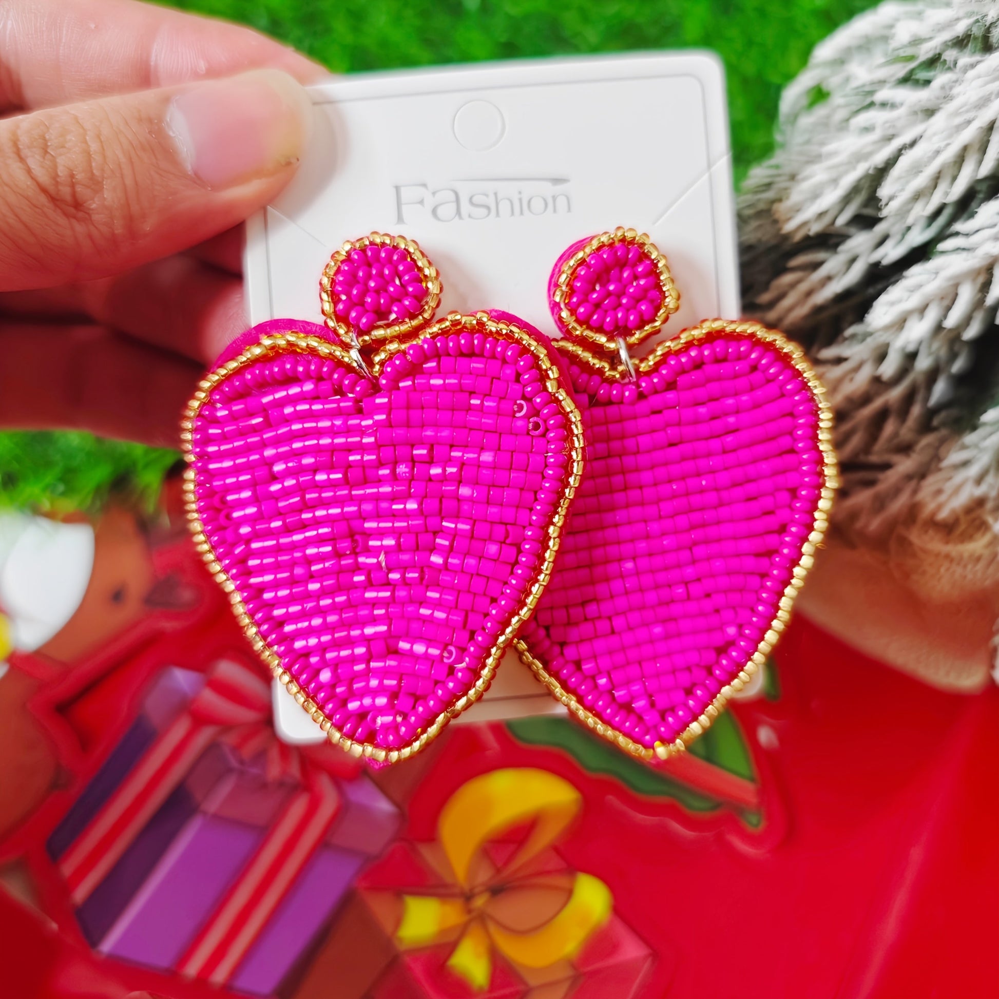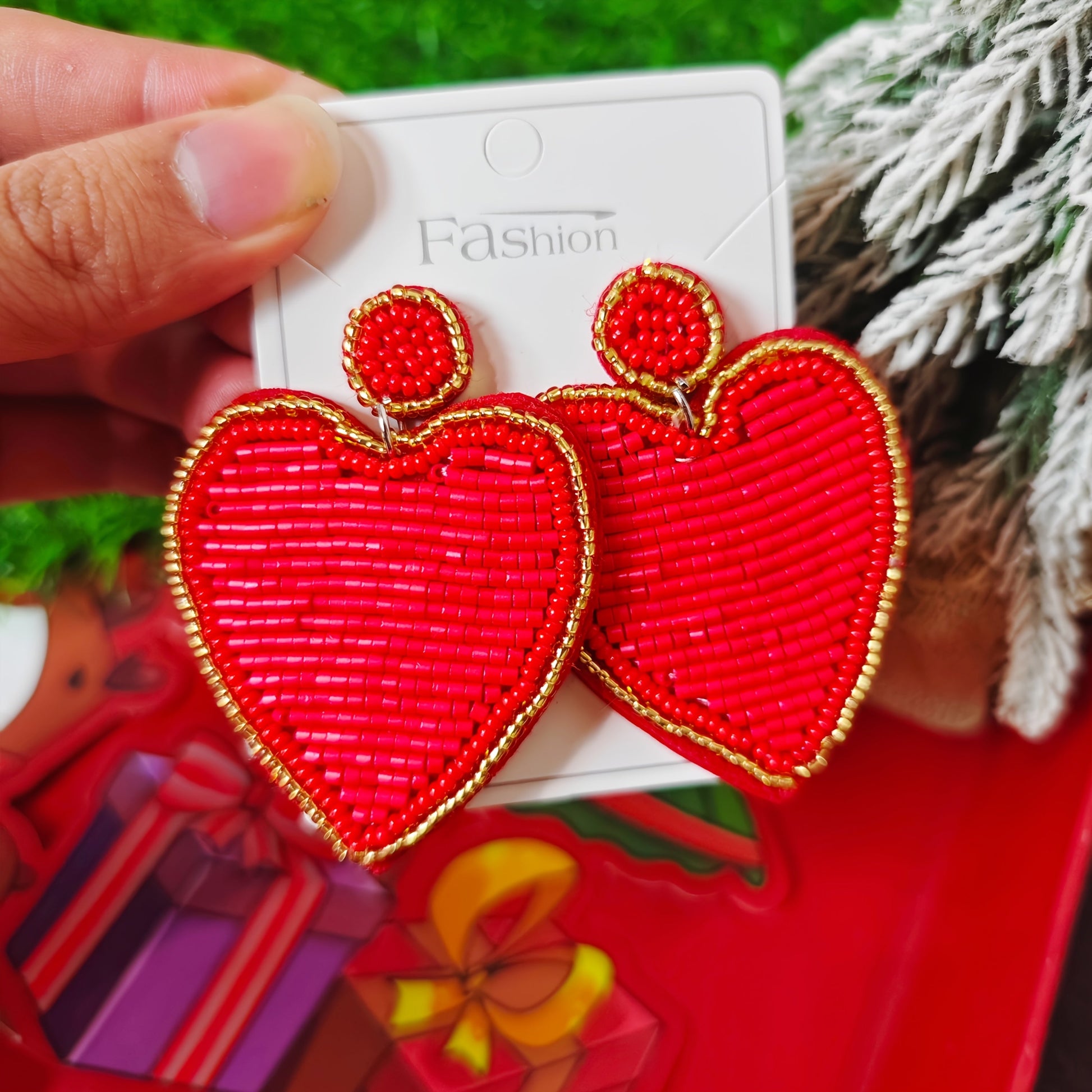 Шикарные ручной работы серьги в форме сердца с бусинами, изящные посты из нержавеющей стали, романтичные висячие серьги на День святого Валентина для женщин, идеальны для свадеб и особых мероприятий, универсальный аксессуар на весь год