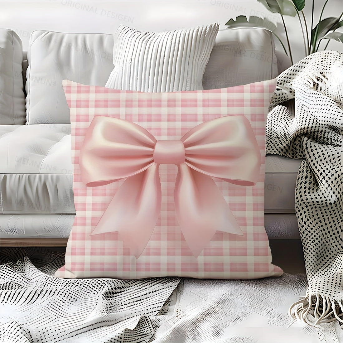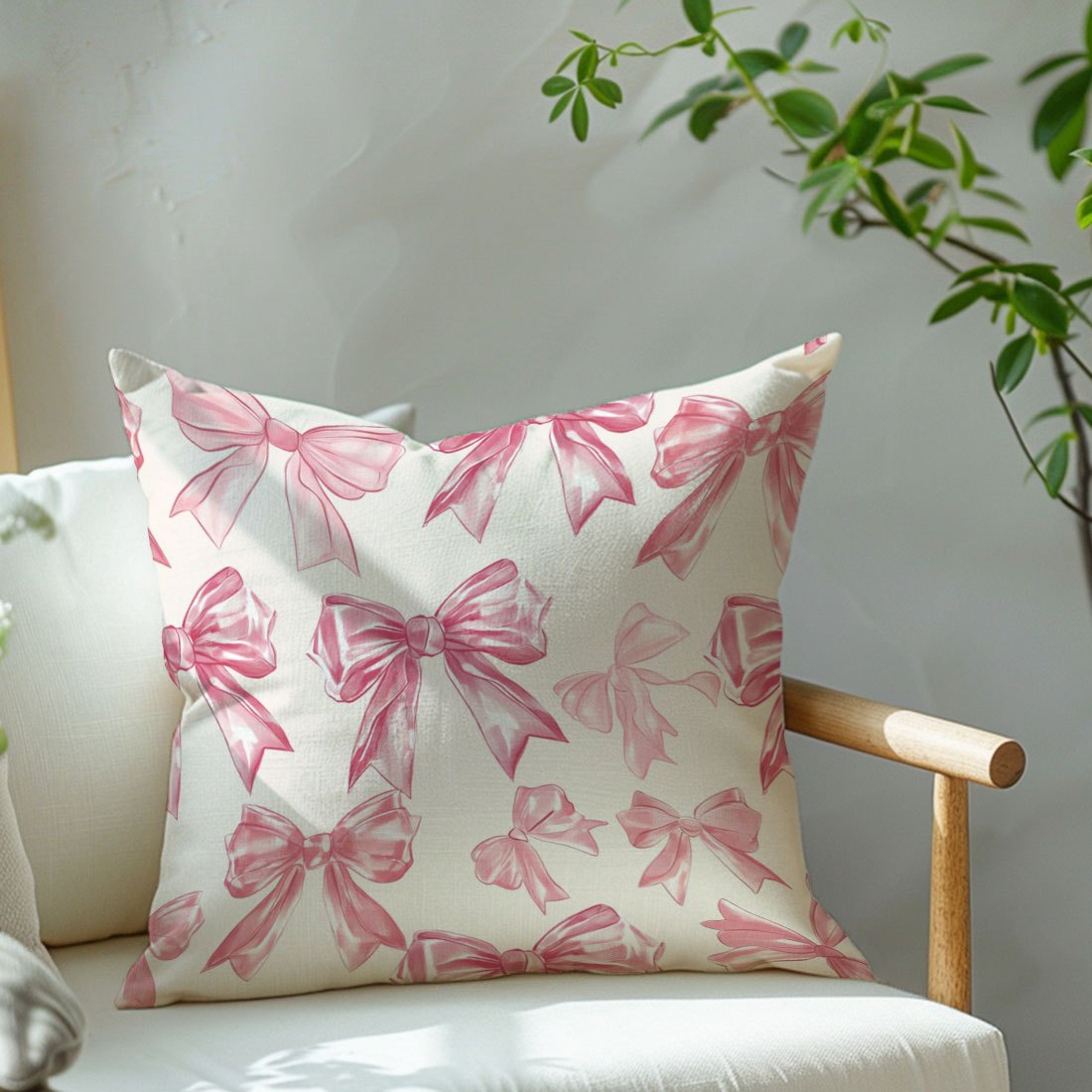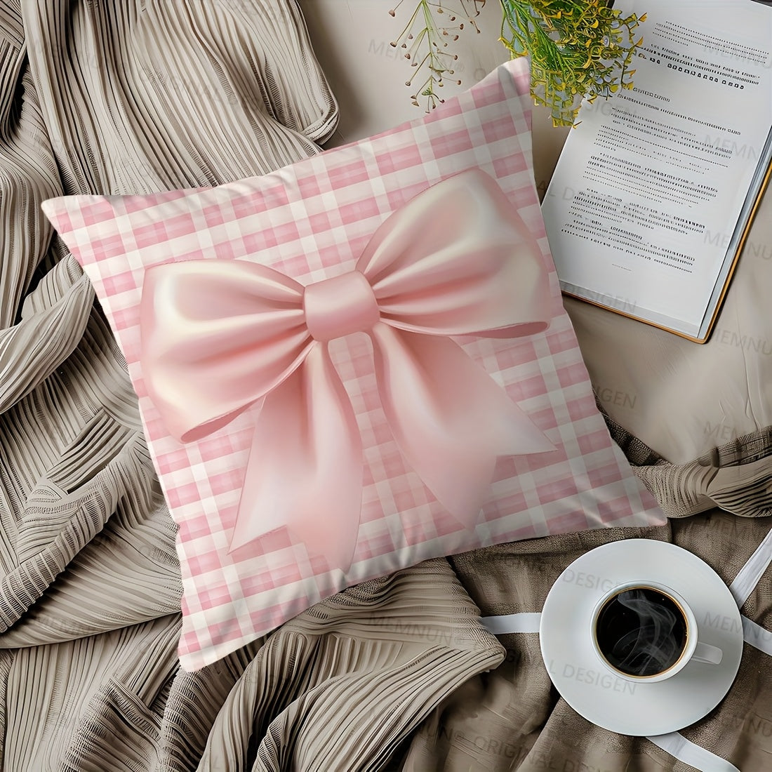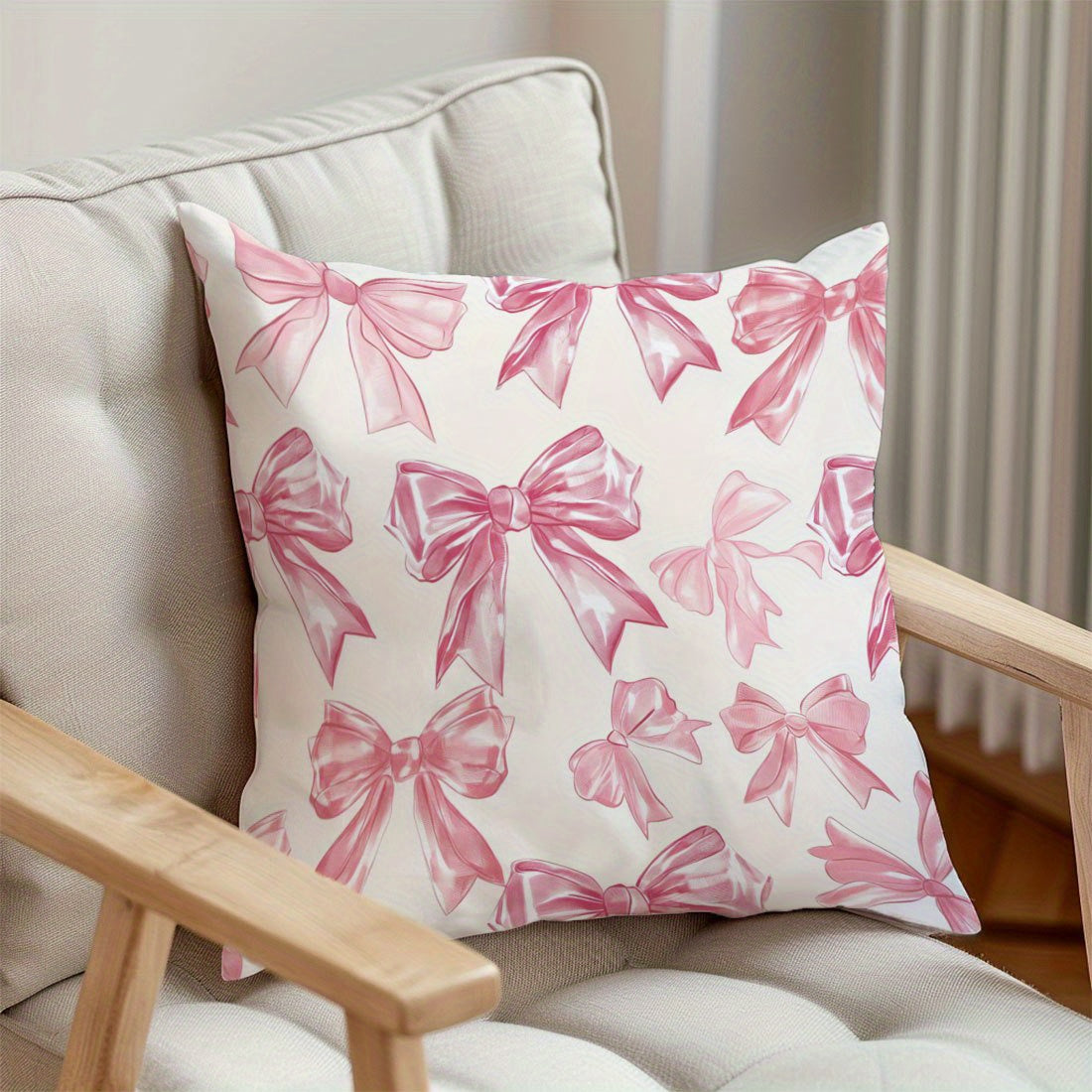 Наволочка для декоративной подушки с принтом розовых бантов 44,96x44,96 см, полиэстер, современный стиль, для дивана, спальни