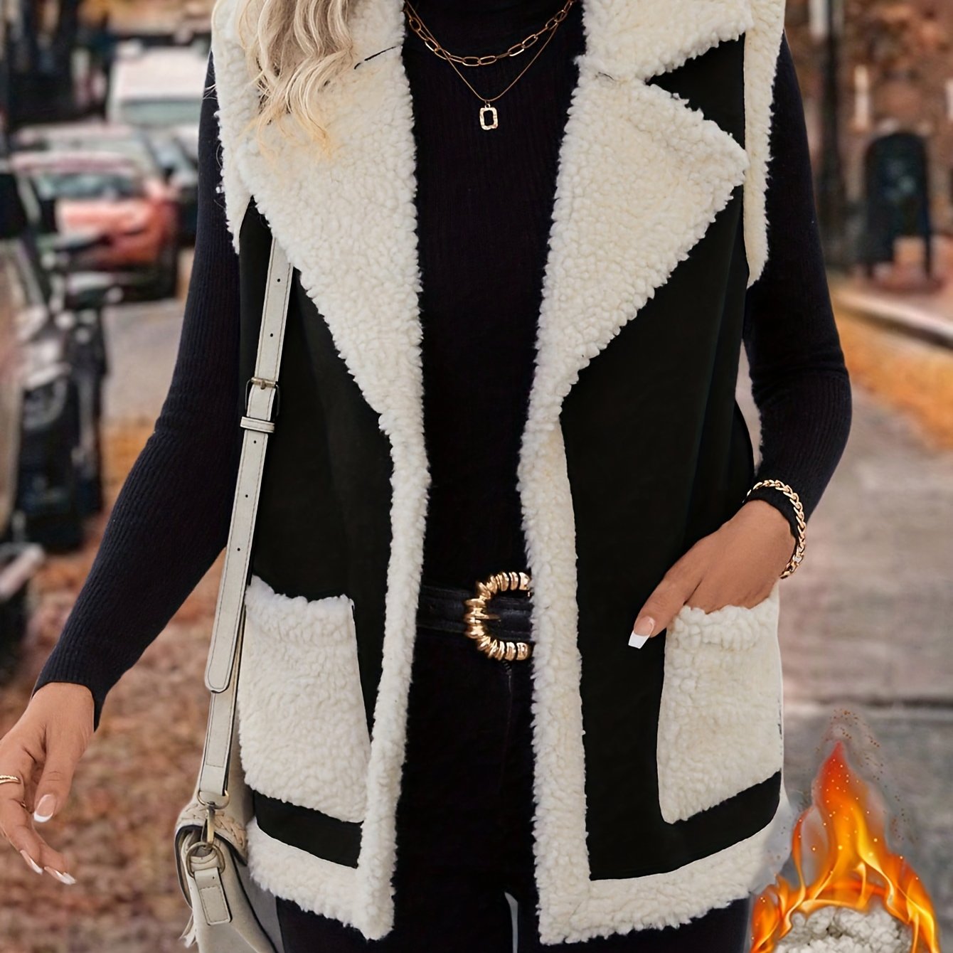 Взрослый однотонный жилет из полиэстера с шерпой, карманами и лацканом