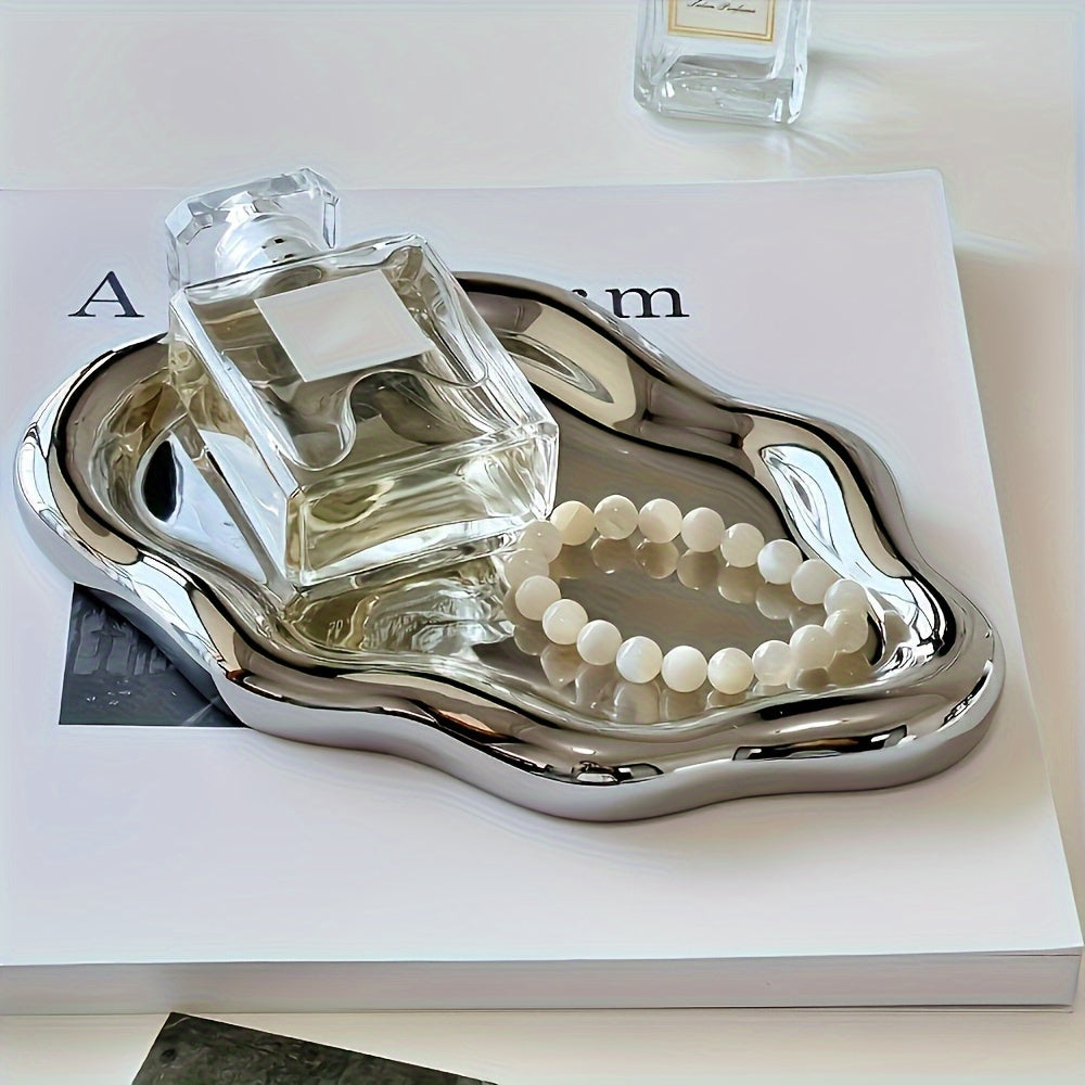 Шикарный белый керамический поднос с золотыми акцентами - потрясающая витрина для ювелирных изделий и духов, идеально подходит для дома, офиса или подарка на День матери