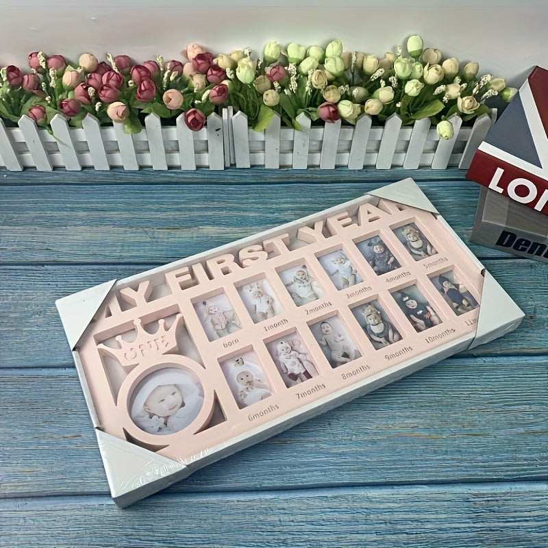 Детская рамка для фотографий с записью роста на 12 месяцев с сертификатом роста, памятными фотографиями, настенным подвесом, студийными фотографиями, пластиковыми буквами и рамкой для фотографии одного года.