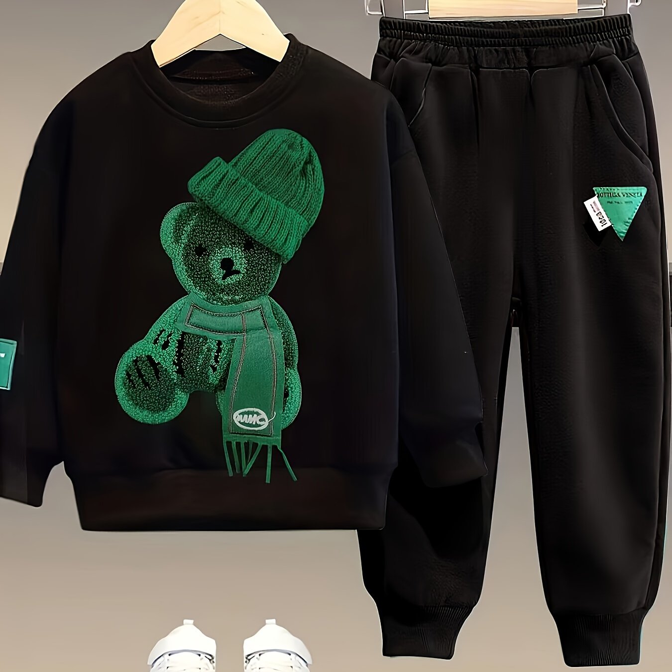 Детский повседневный комплект одежды для мальчиков весна-осень, свитер, штаны, мультяшный медведь, с длинным рукавом