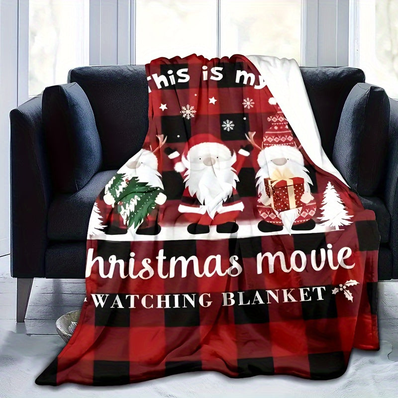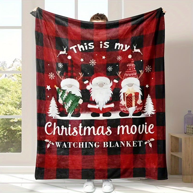 Плед из фланели на Рождество с принтом Санты и оленей, идеален для дивана, кровати, офиса, кемпинга и путешествий - можно стирать в машине, прочный, универсальный подарочный плед.