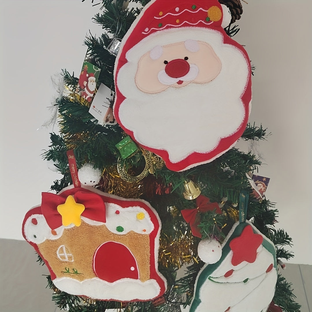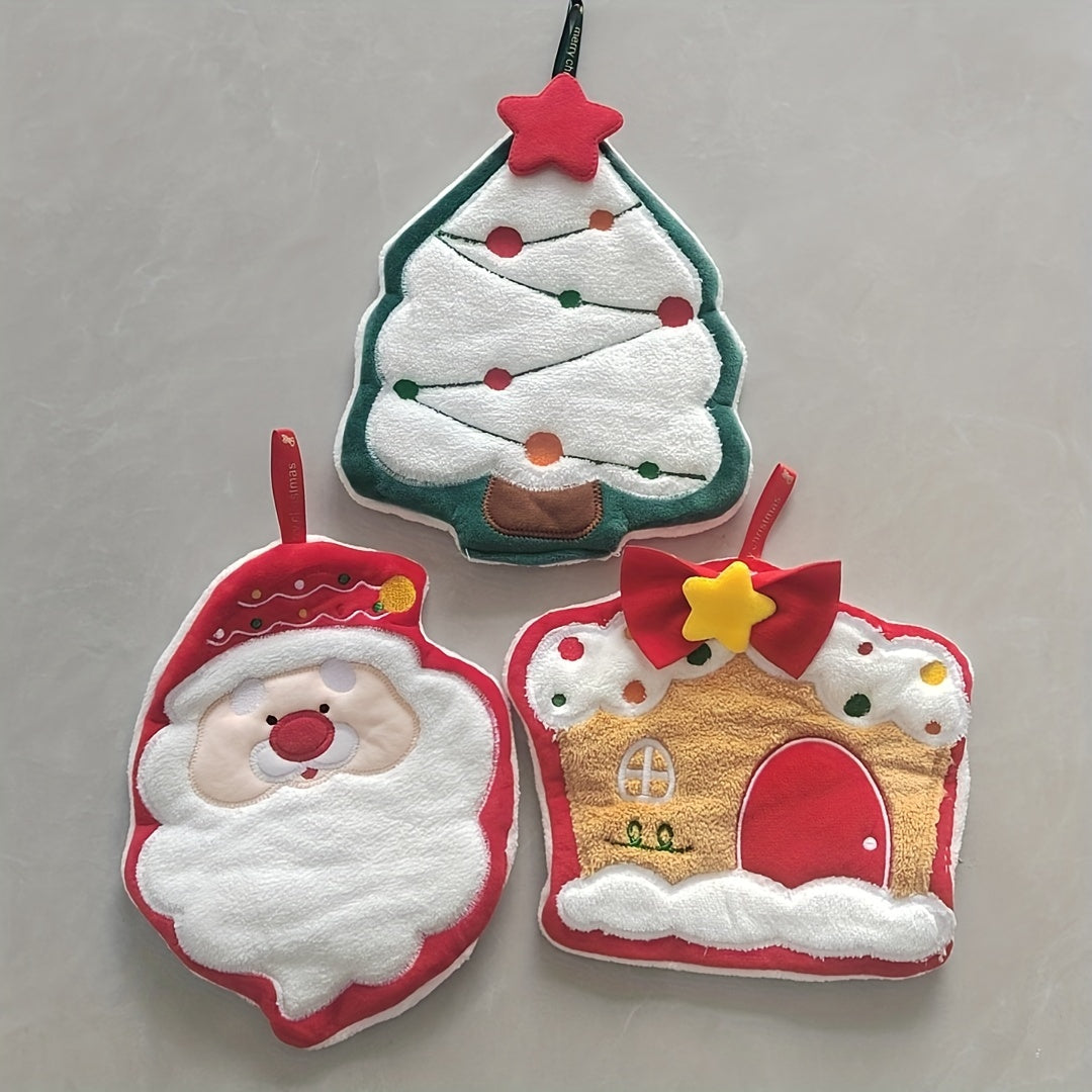 Набор полотенец для пальцев с рождественской тематикой с изображениями Санты, рождественской елки и дома, быстро сохнущие, впитывающие