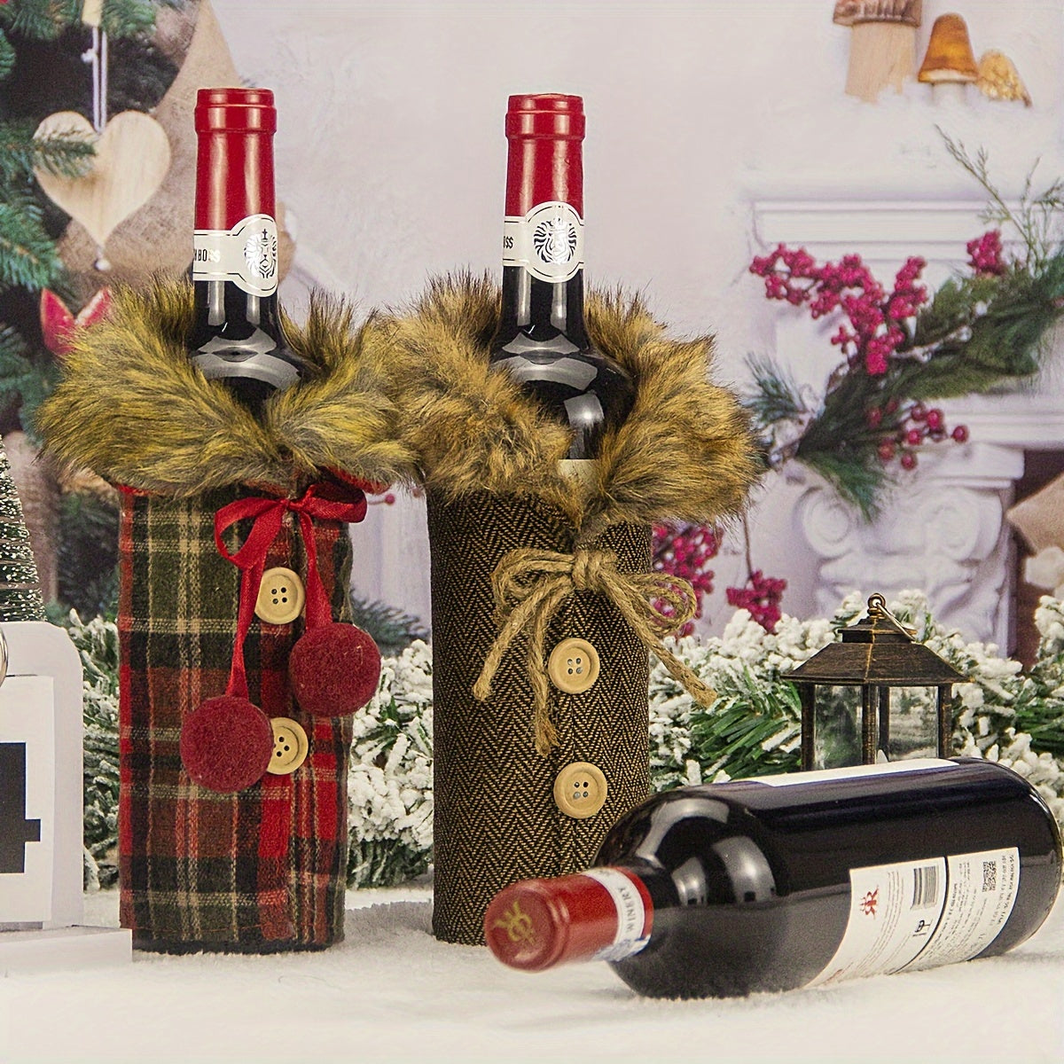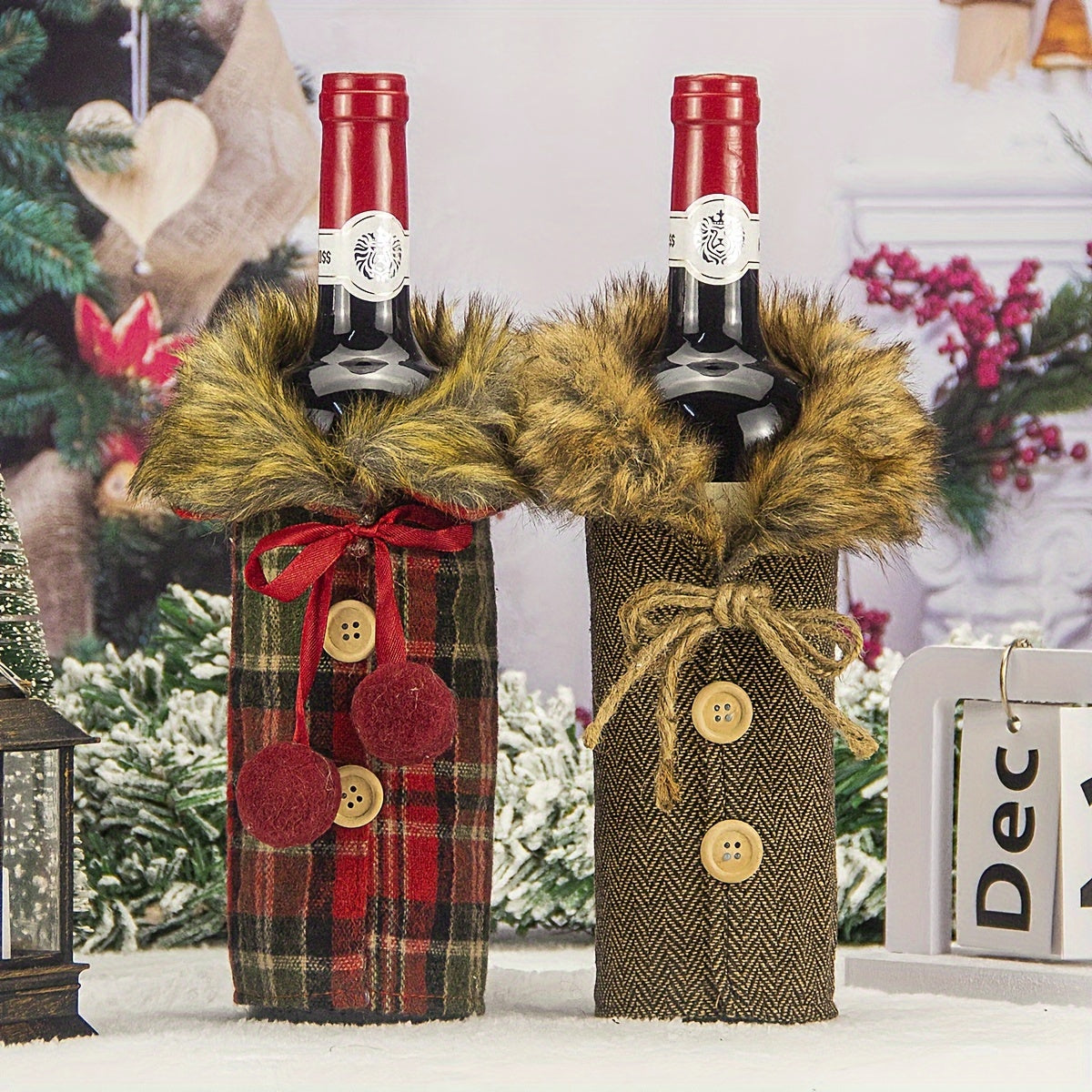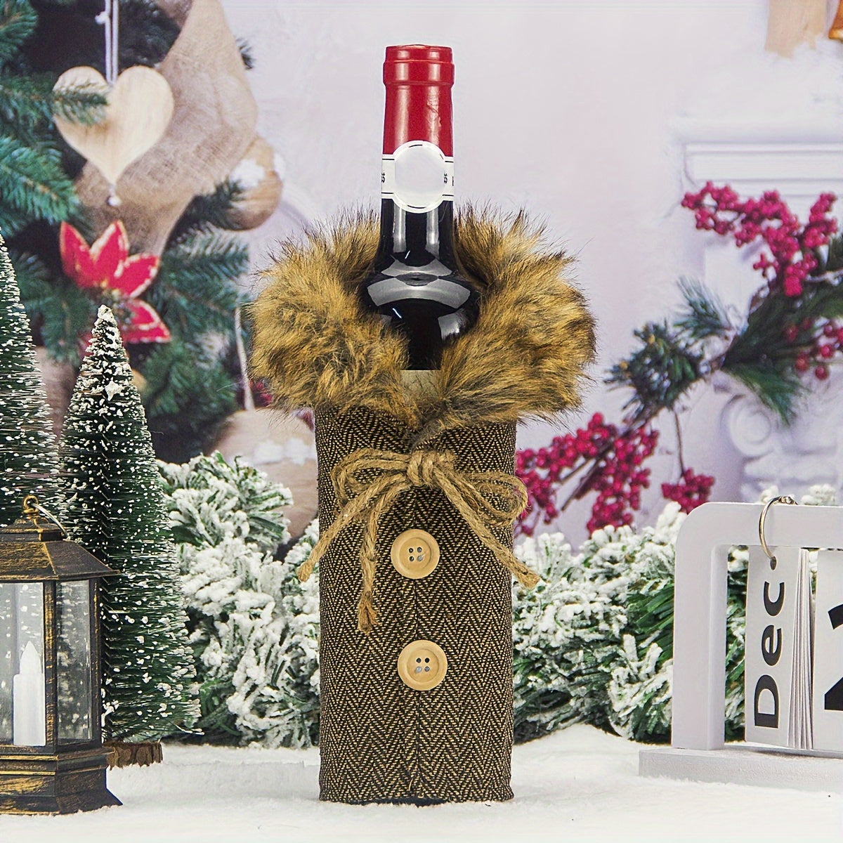 Набор винных бутылок к Рождеству с декором из денима, мешковины и банта - идеально подходит для европейских и американских стилей интерьера.