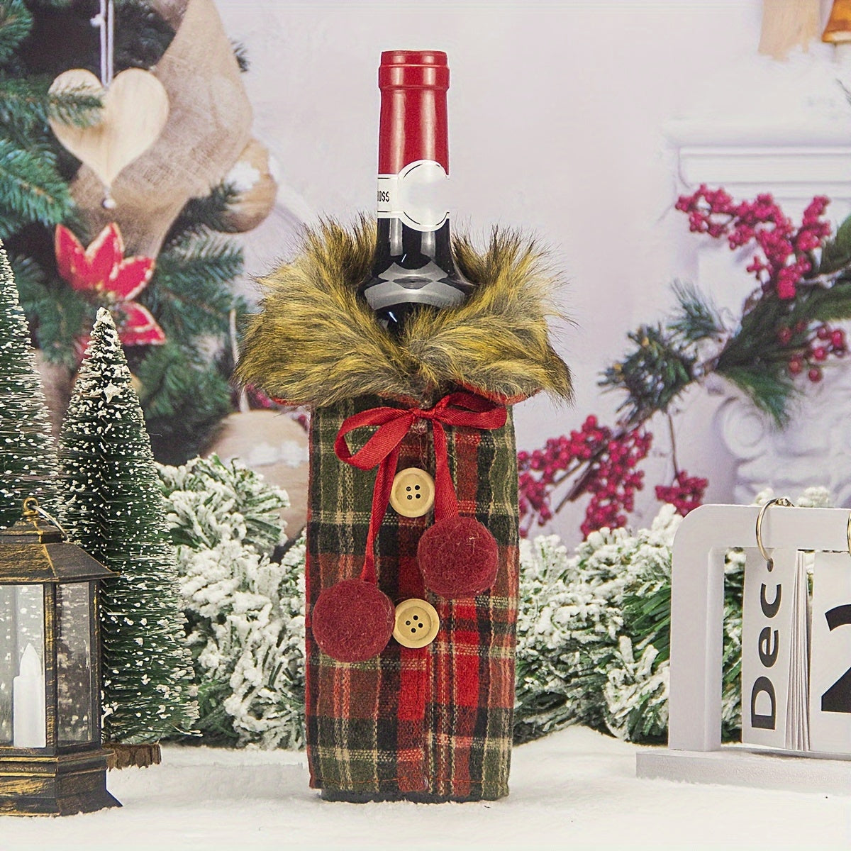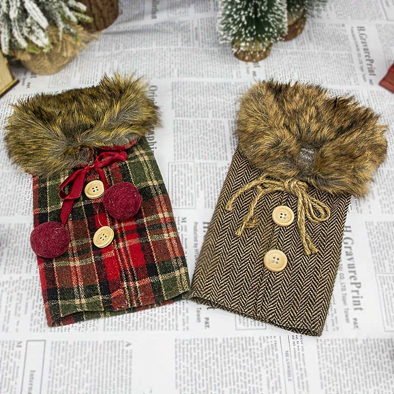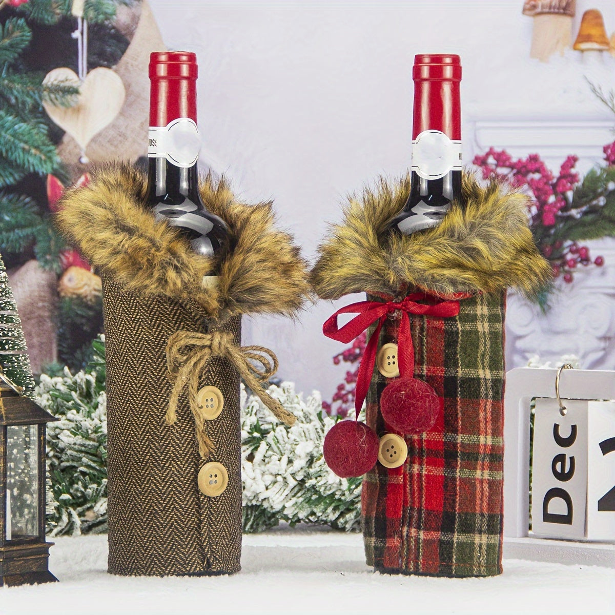Набор винных бутылок к Рождеству с декором из денима, мешковины и банта - идеально подходит для европейских и американских стилей интерьера.