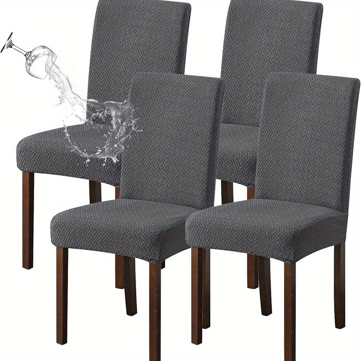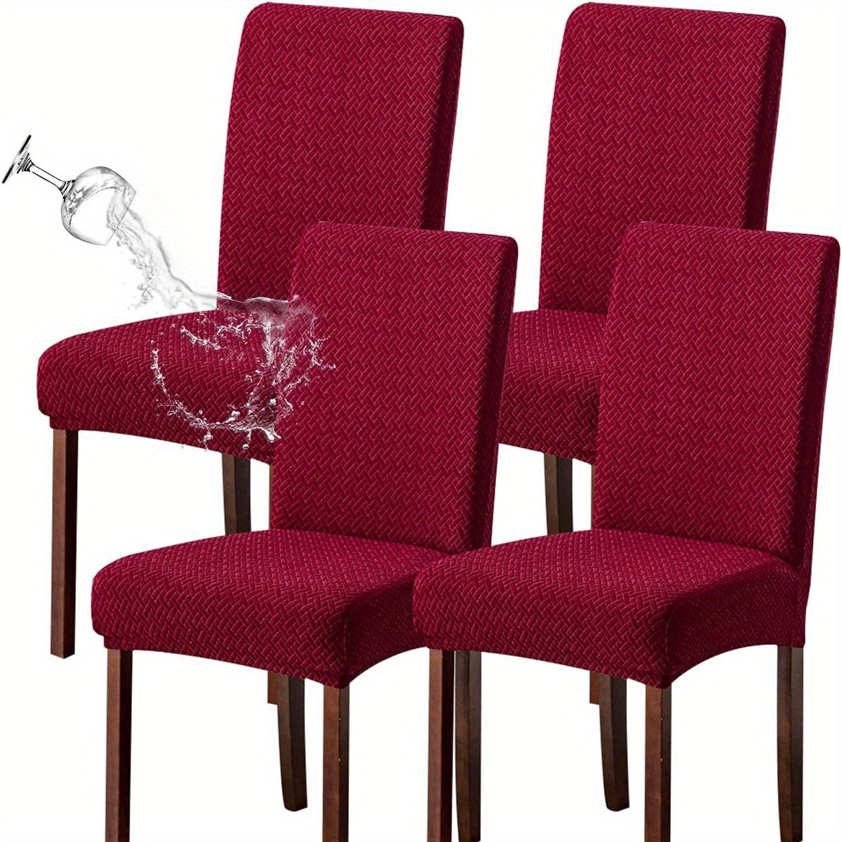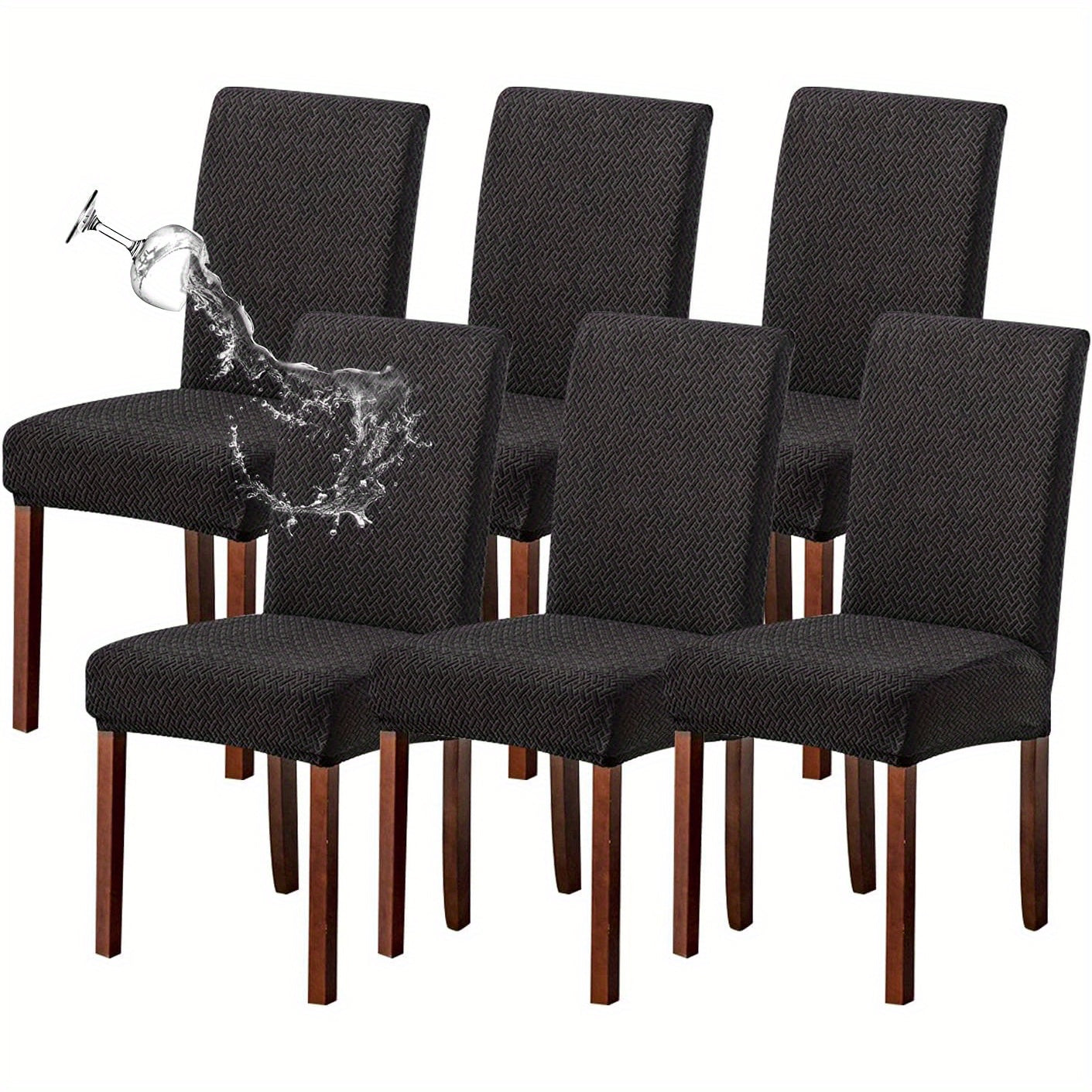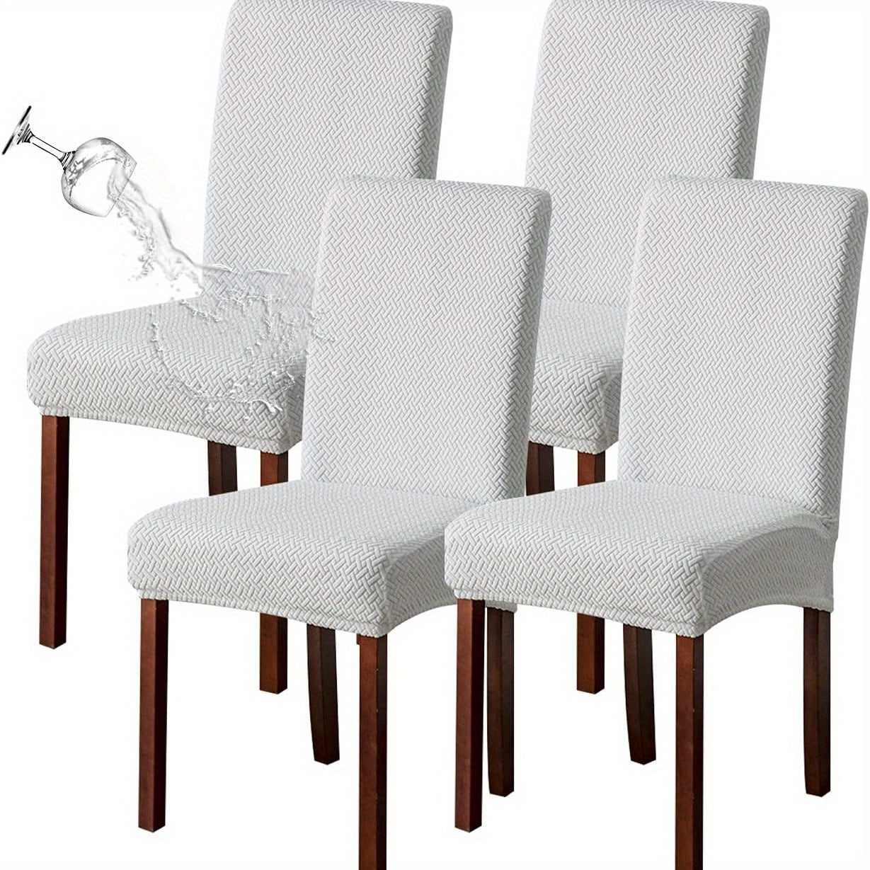Классические жаккардовые чехлы для стульев, 4/6 шт., водонепроницаемая смесь полиэстера и спандекса, растяжимые с Т-образной подушкой, машинная стирка, декор для скамеек и комнат, без принта, 200-250 г/м².