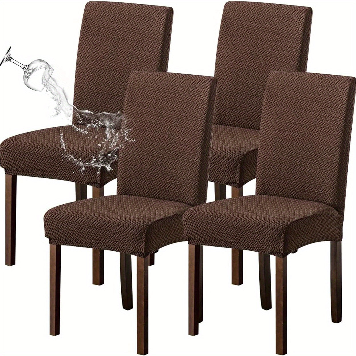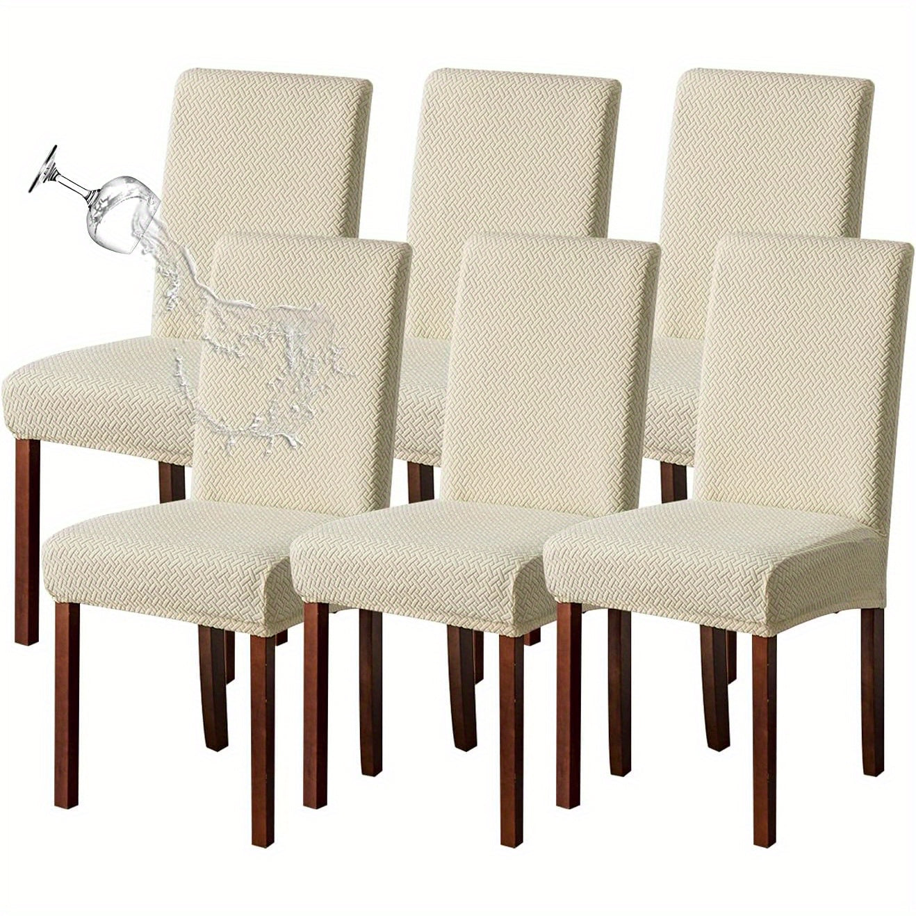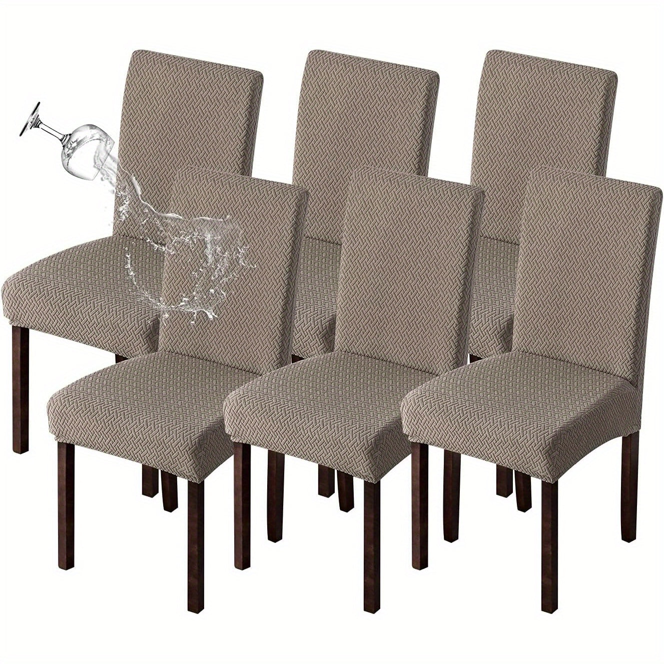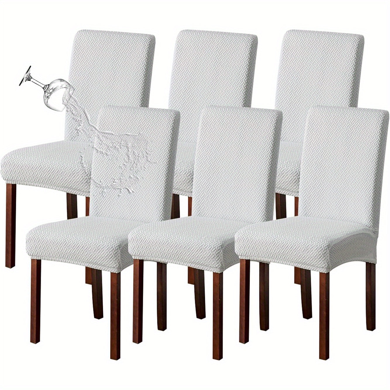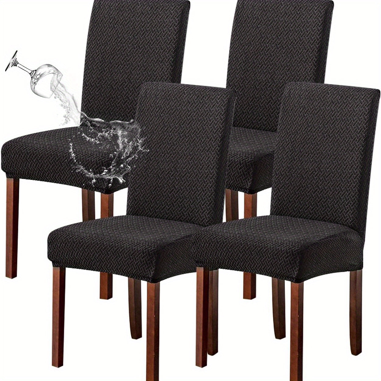 Классические жаккардовые чехлы для стульев, 4/6 шт., водонепроницаемая смесь полиэстера и спандекса, растяжимые с Т-образной подушкой, машинная стирка, декор для скамеек и комнат, без принта, 200-250 г/м².