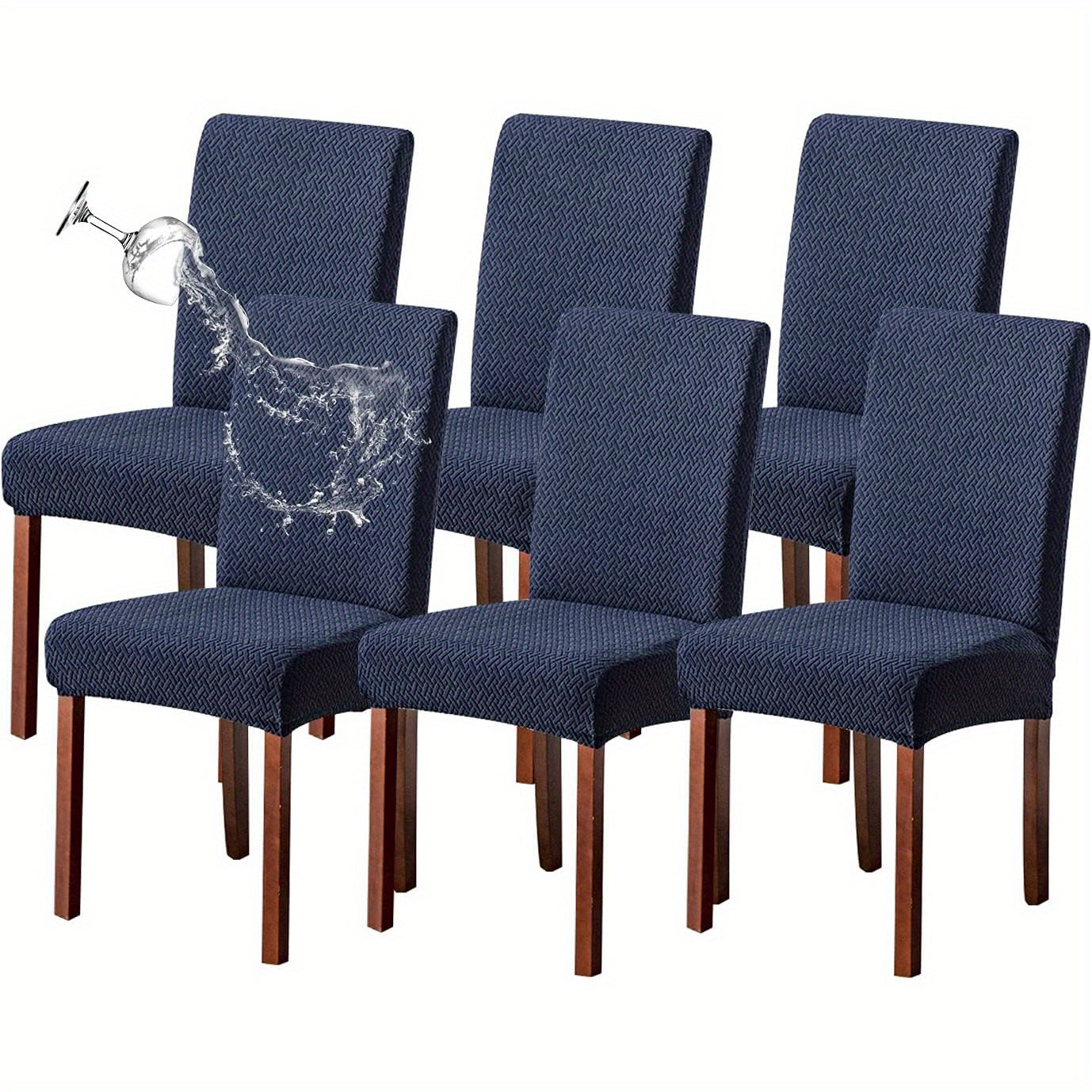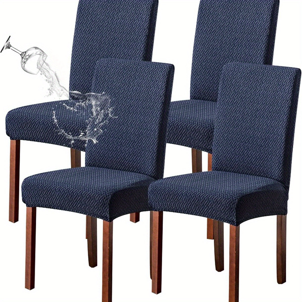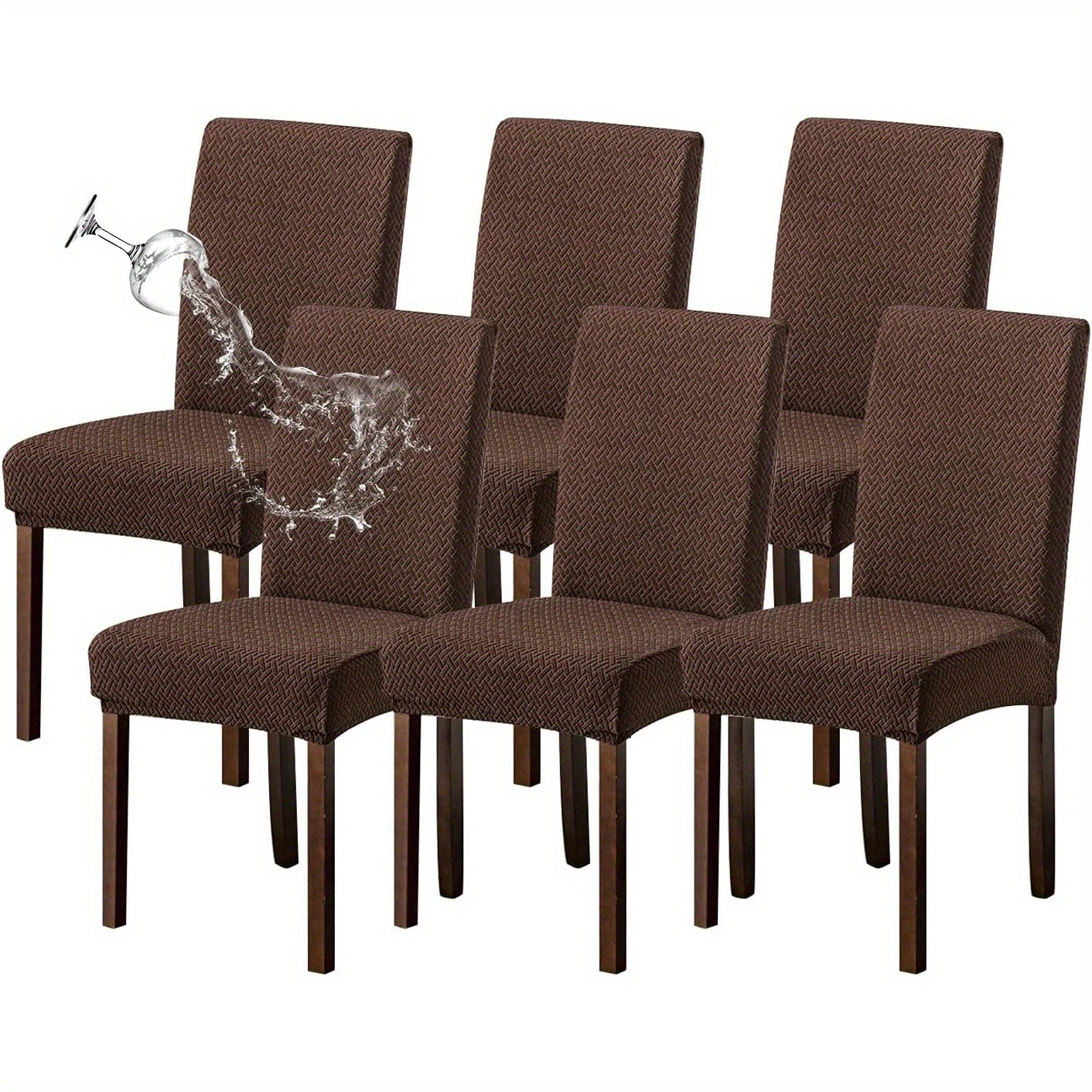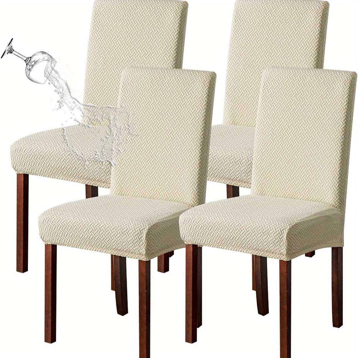 Классические жаккардовые чехлы для стульев, 4/6 шт., водонепроницаемая смесь полиэстера и спандекса, растяжимые с Т-образной подушкой, машинная стирка, декор для скамеек и комнат, без принта, 200-250 г/м².