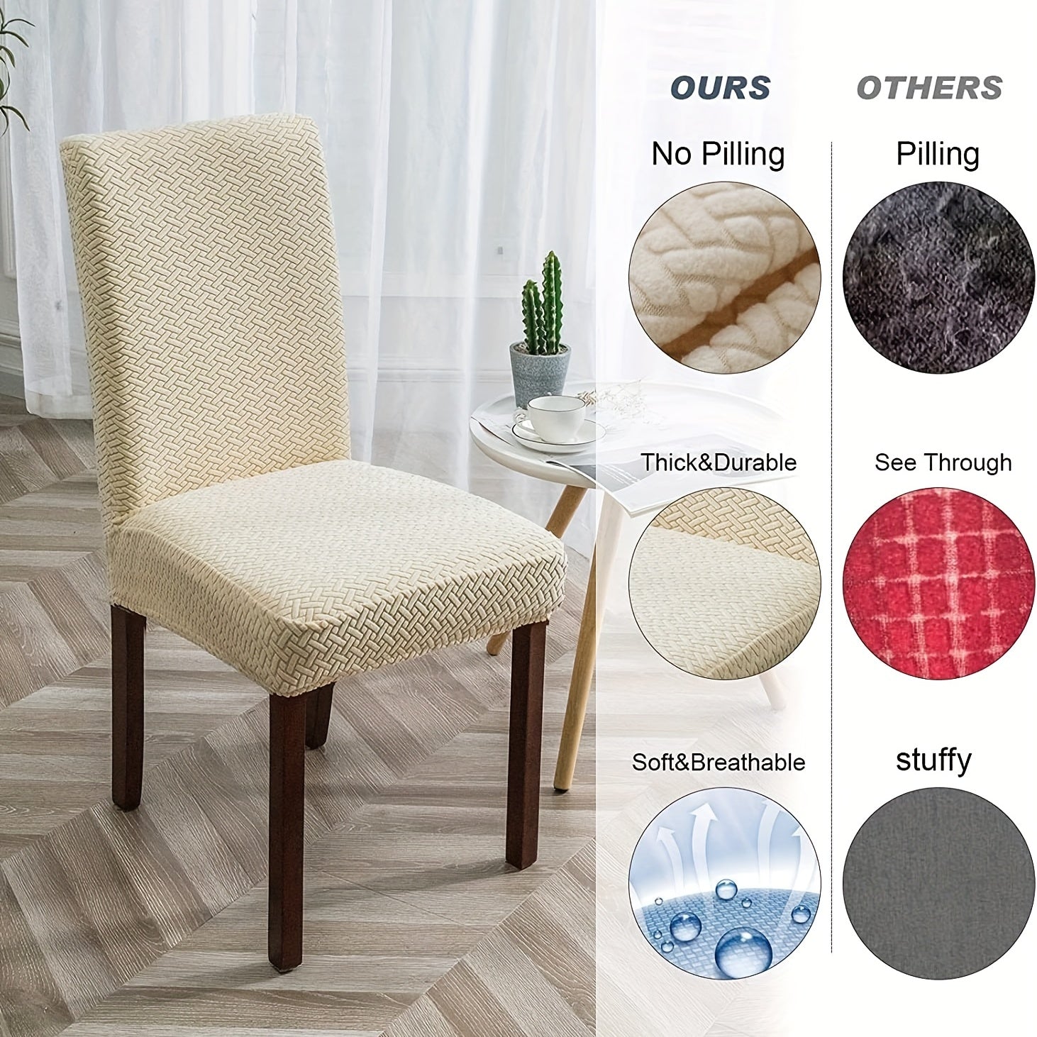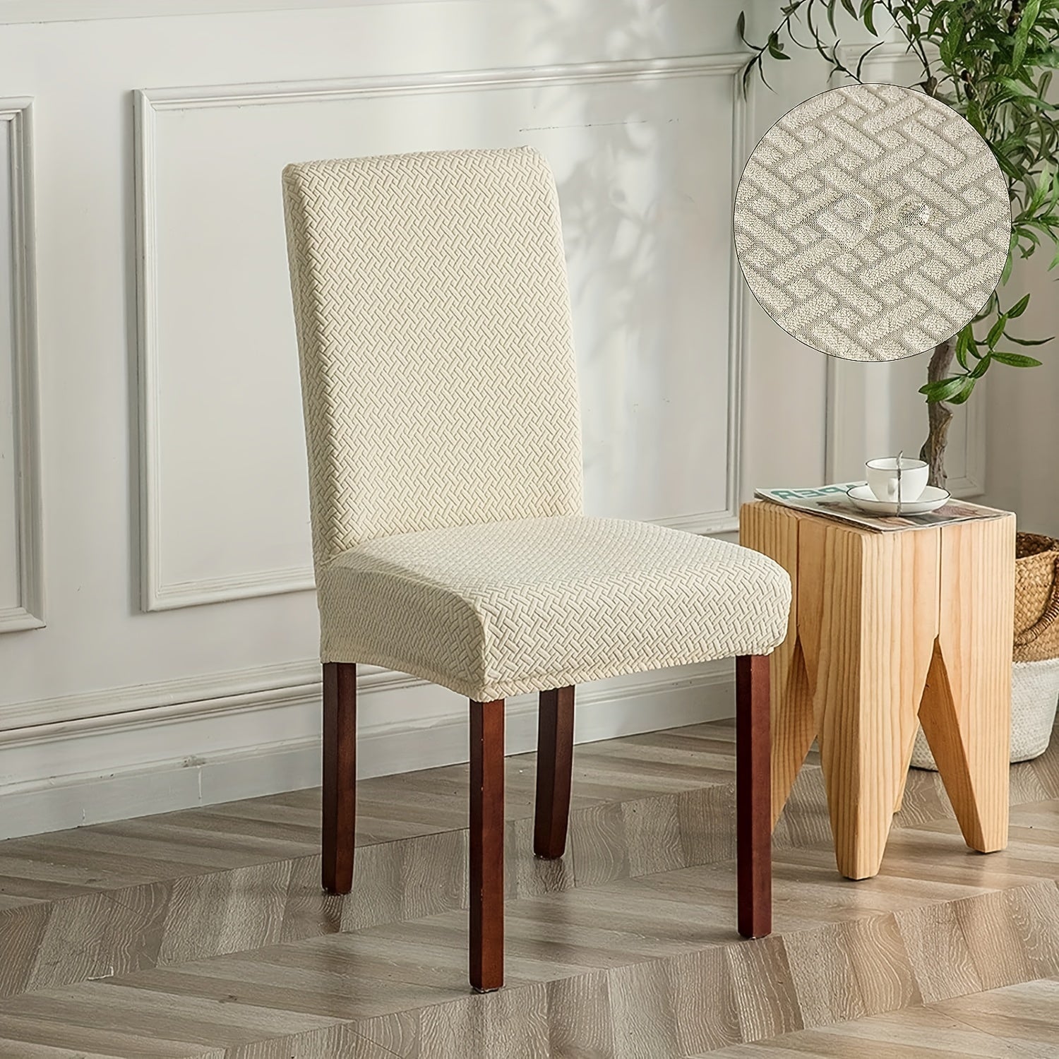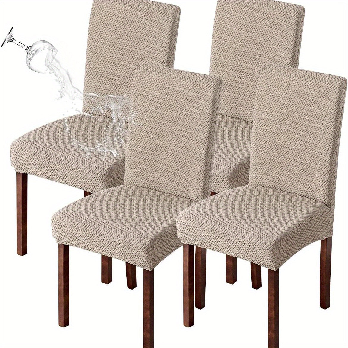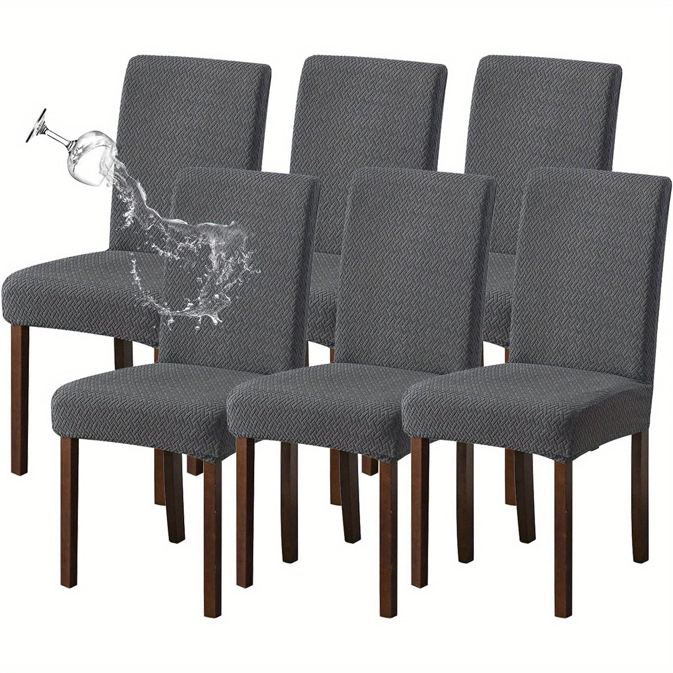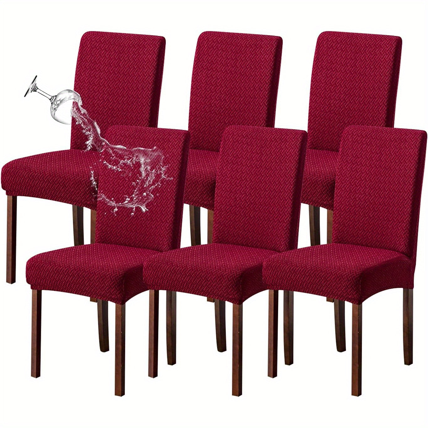 Классические жаккардовые чехлы для стульев, 4/6 шт., водонепроницаемая смесь полиэстера и спандекса, растяжимые с Т-образной подушкой, машинная стирка, декор для скамеек и комнат, без принта, 200-250 г/м².