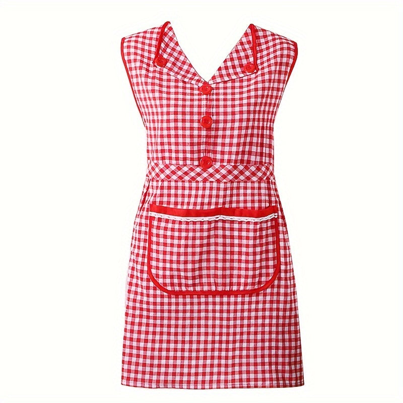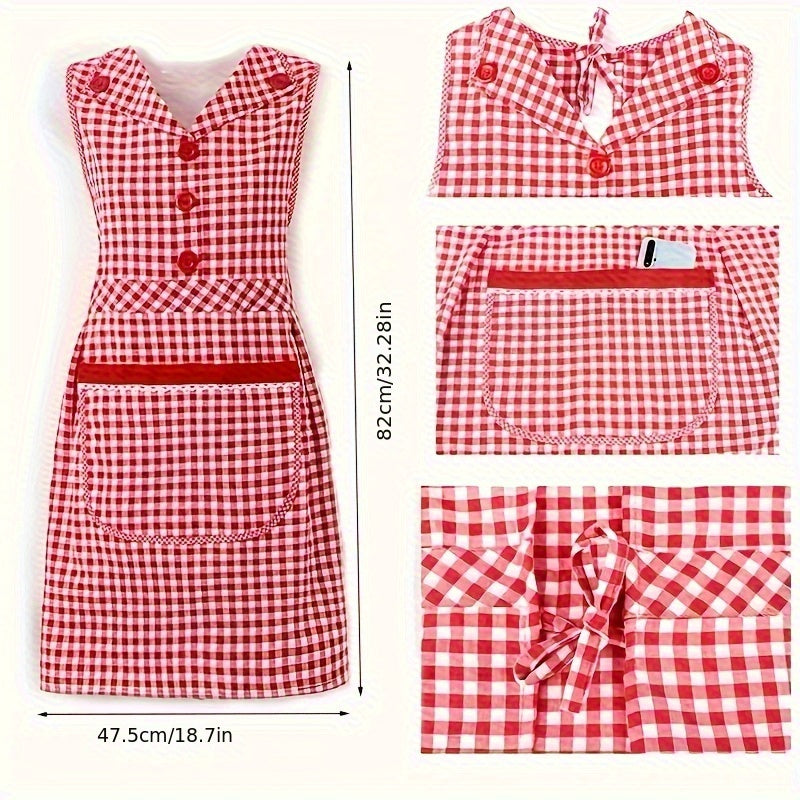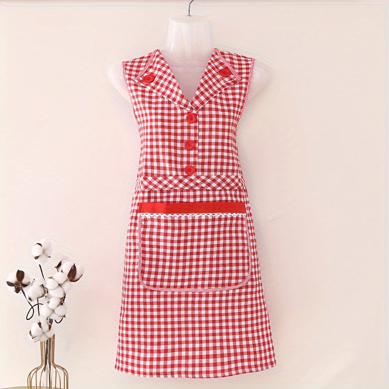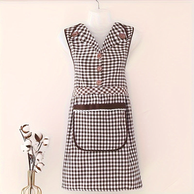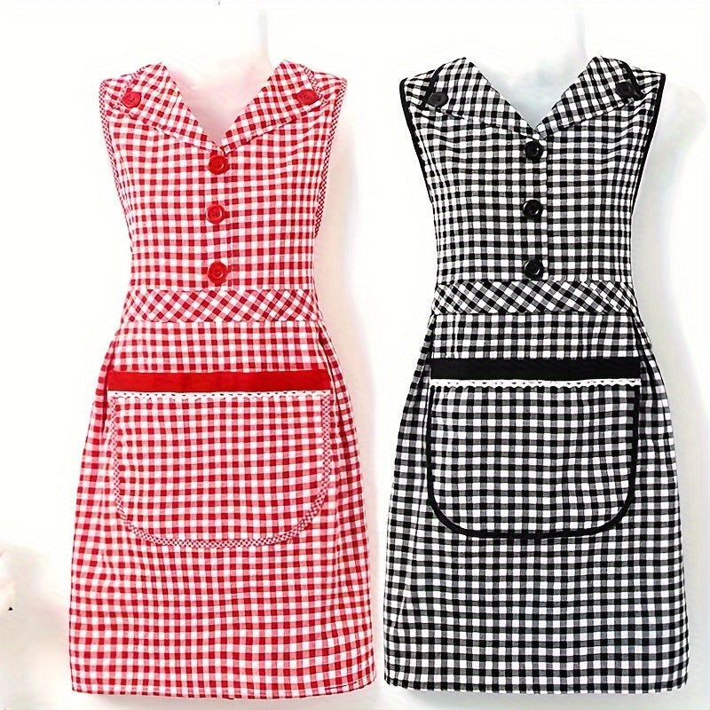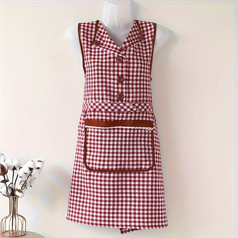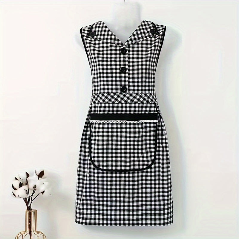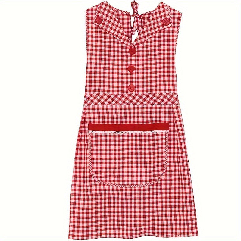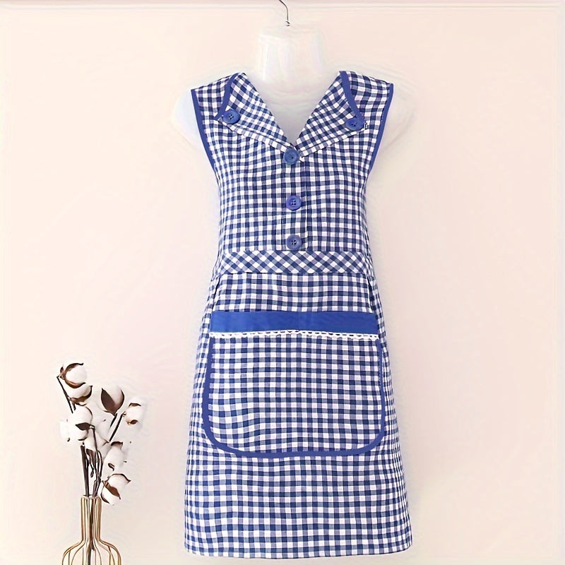 Классный клетчатый хлопковый кухонный фартук с передним карманом, безрукавный фартук в стиле платья с V-образным вырезом из трикотажной ткани, с регулируемым завязкой, модный фартук для женщин, изготовленный из смеси хлопка и полиэстера.