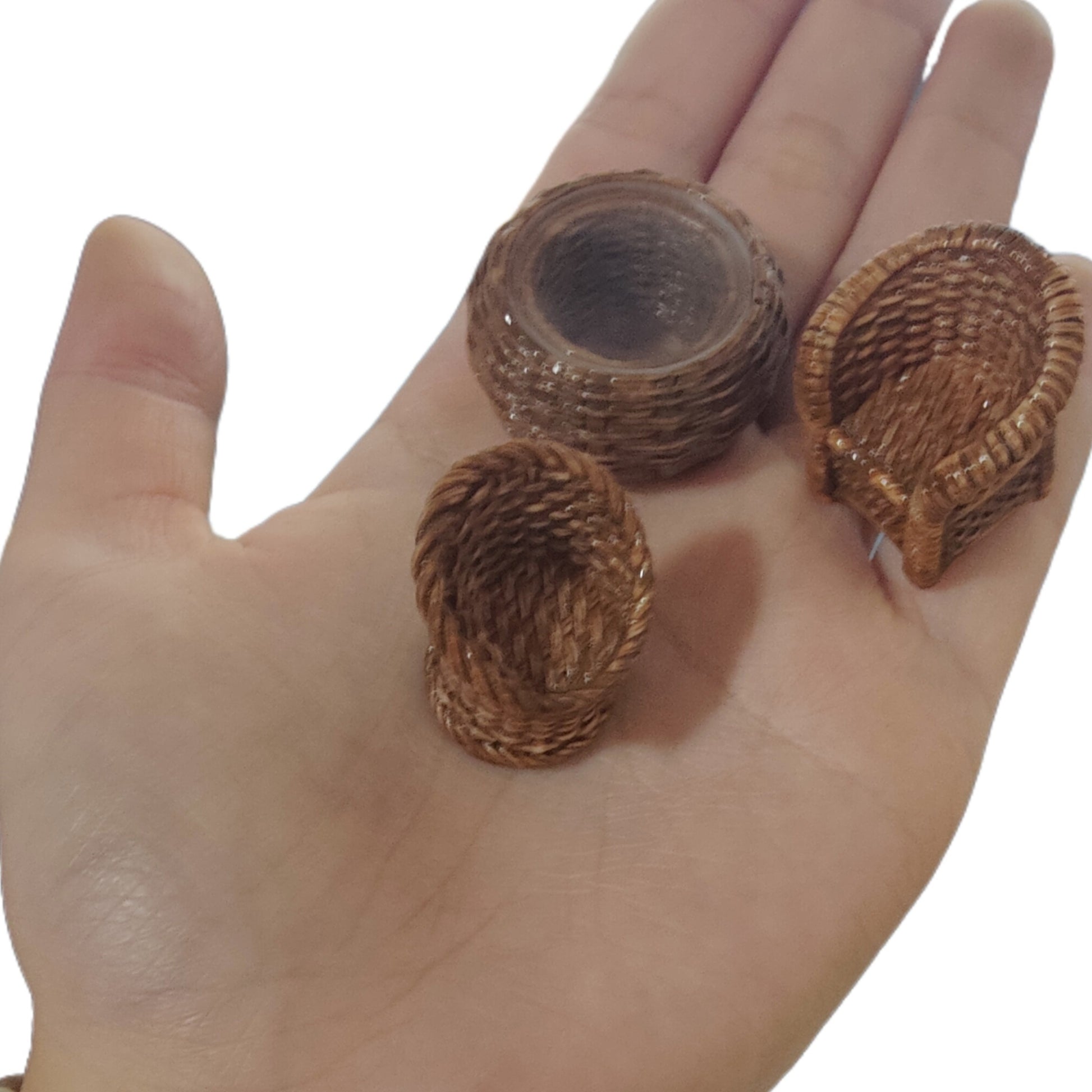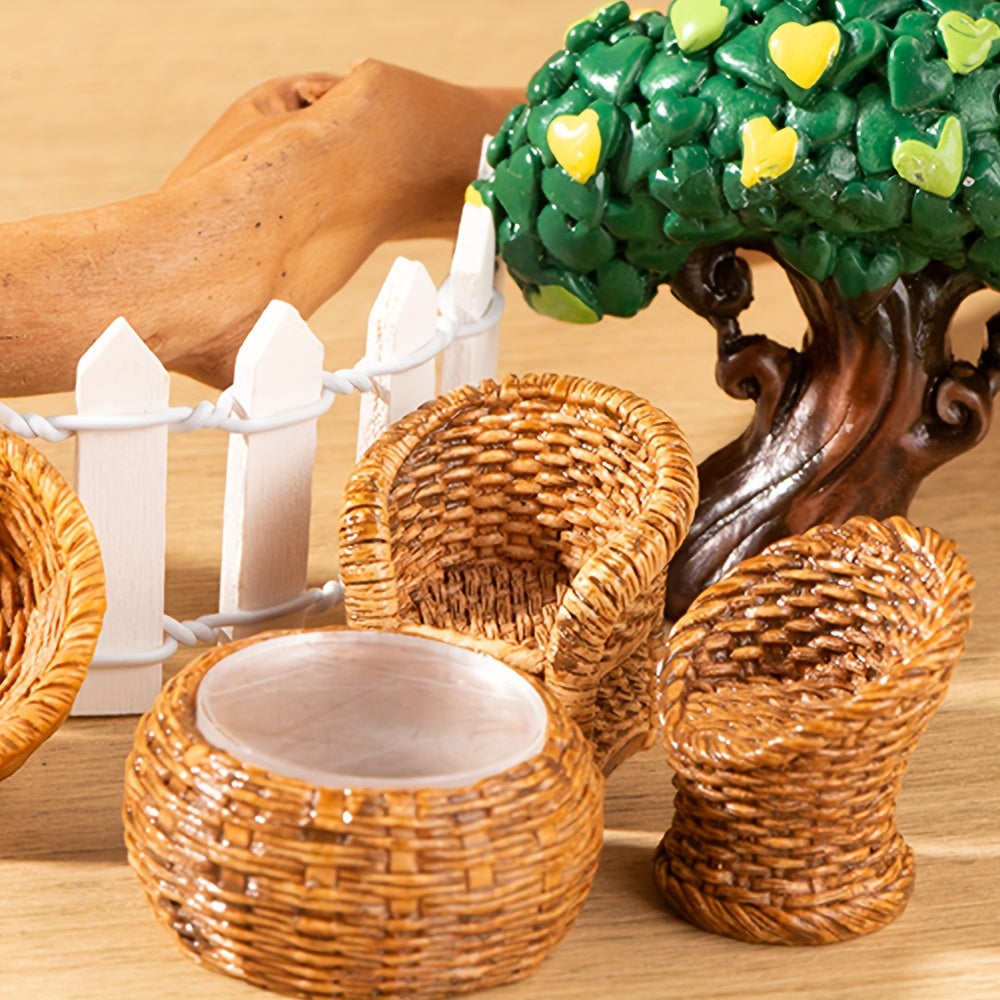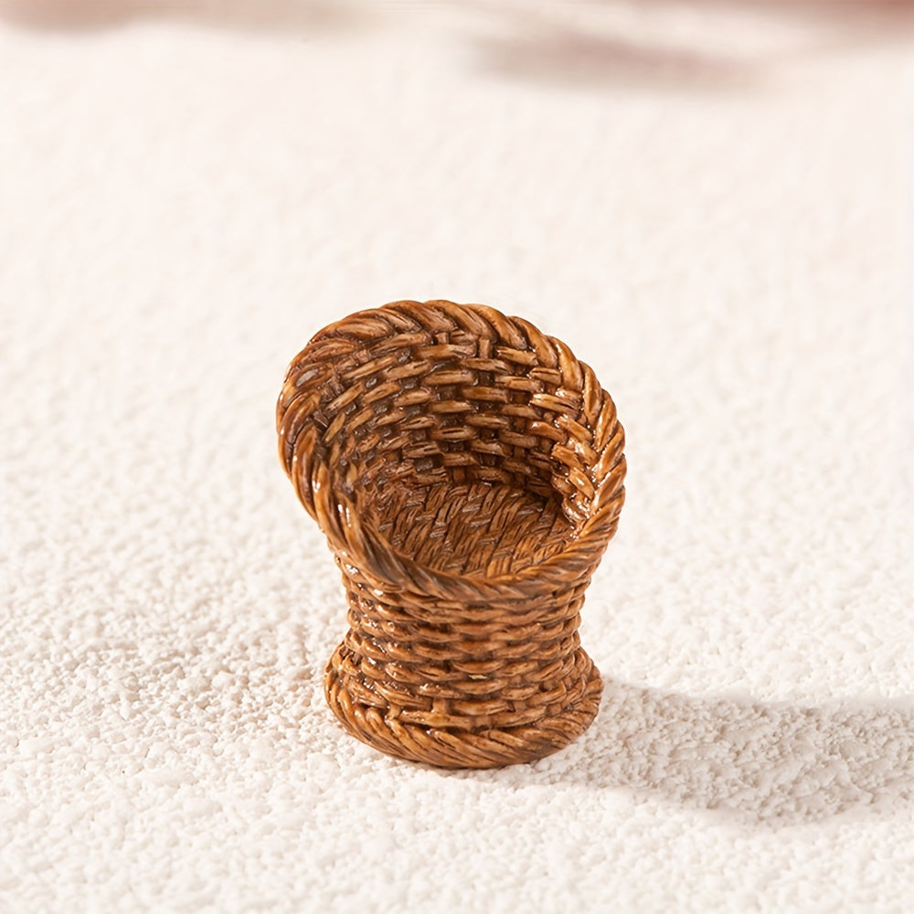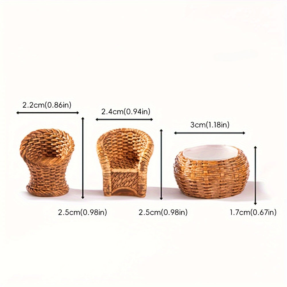 Коллекция небольшой бамбуковой мебели и смоляных фигурок для домашнего декора, включая крошечный бамбуковый стул, веялку, рыболовную корзину и бамбуковый горшок.