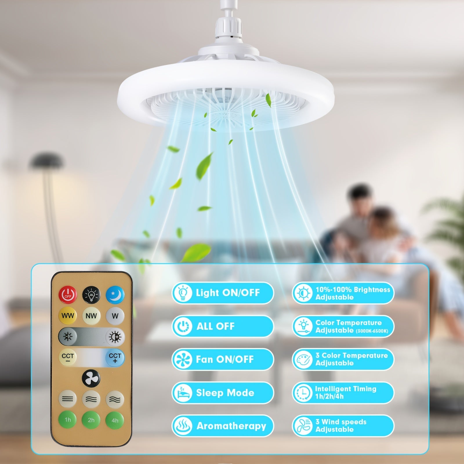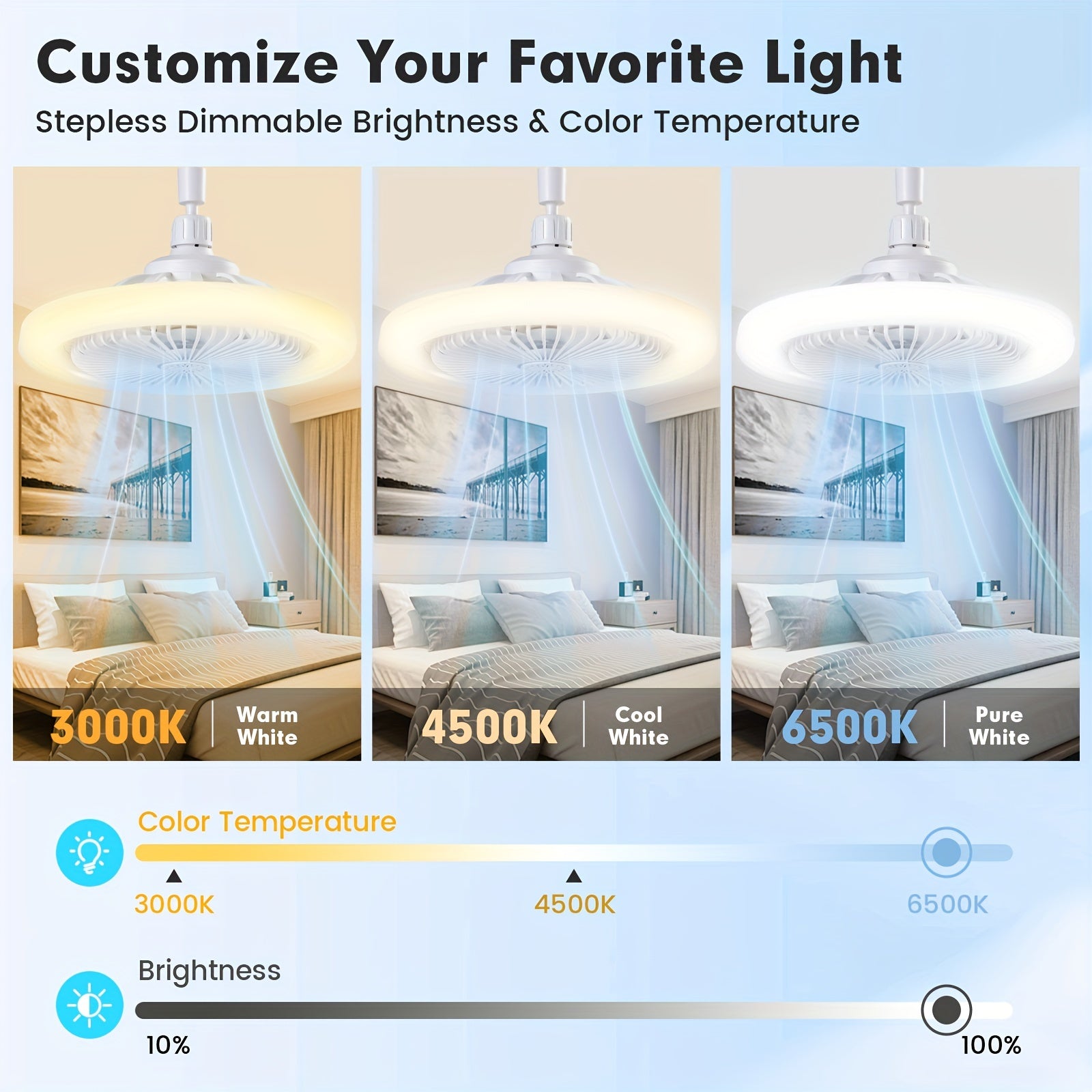 Цветовая меняющаяся светодиодная потолочная вентилятора с затемнением и пультом дистанционного управления