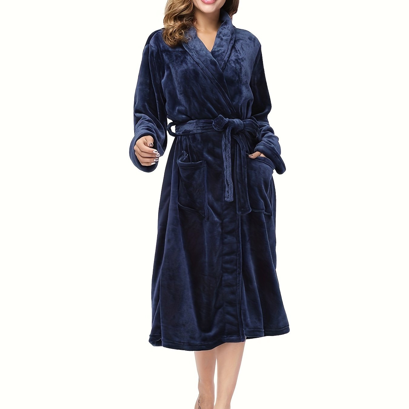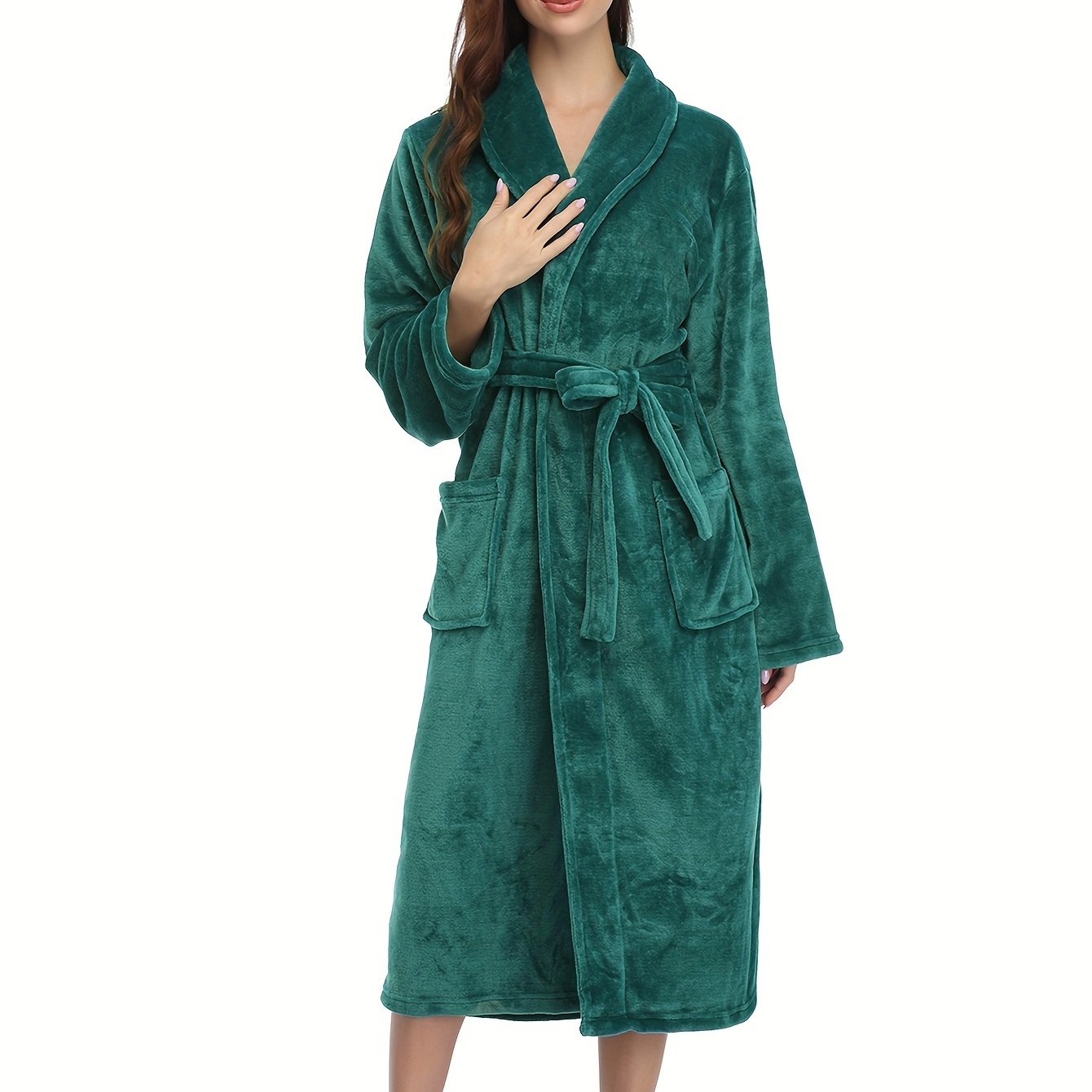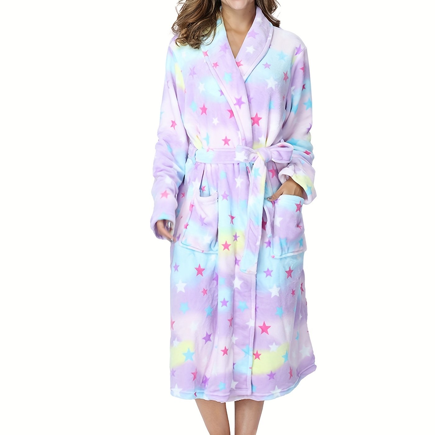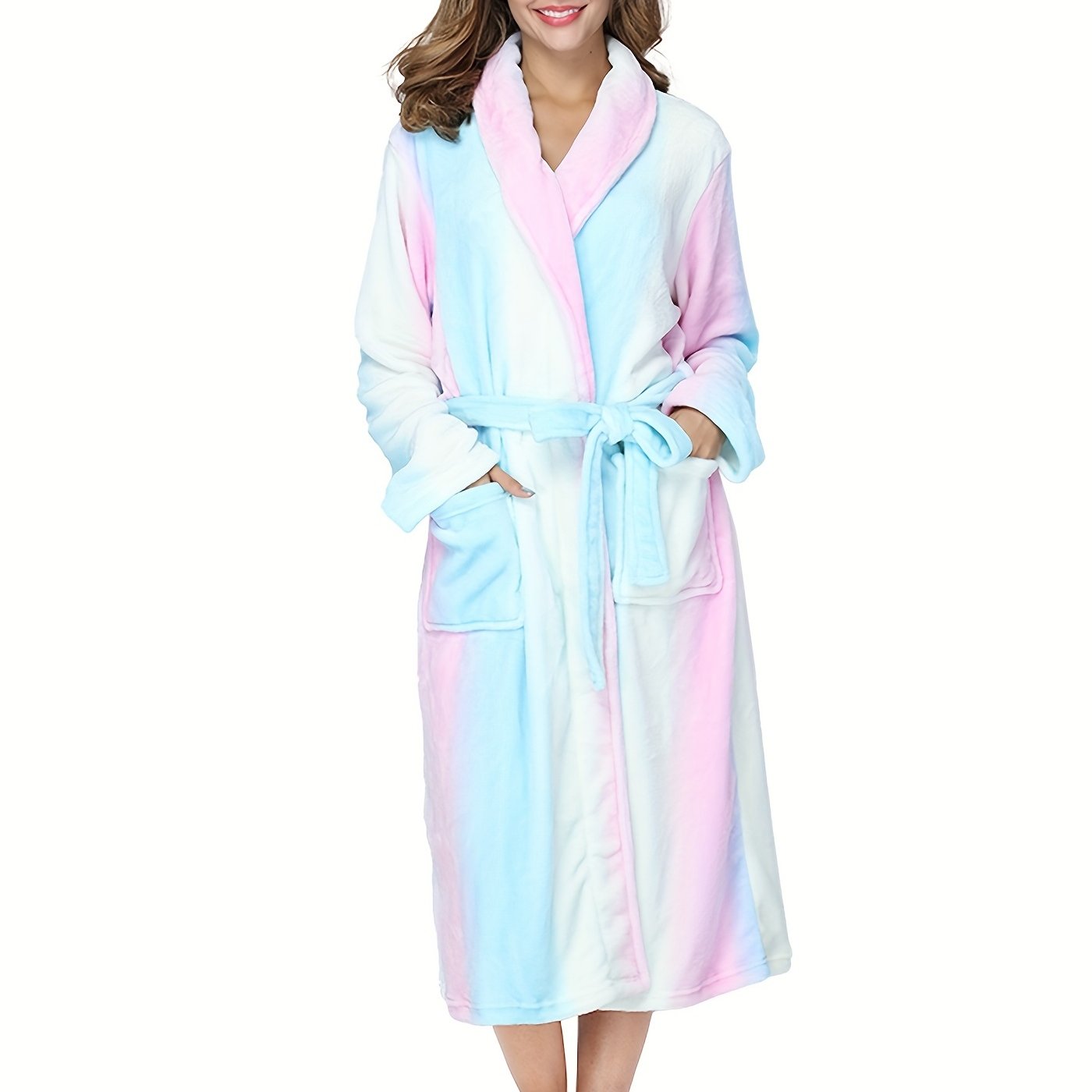 Цветной флисовый ночной халат, уютный и теплый, с длинными рукавами, воротником с лацканами, поясом и предназначенный для женской ночной одежды.