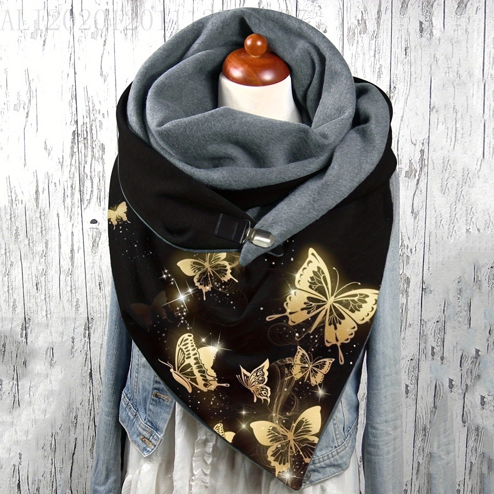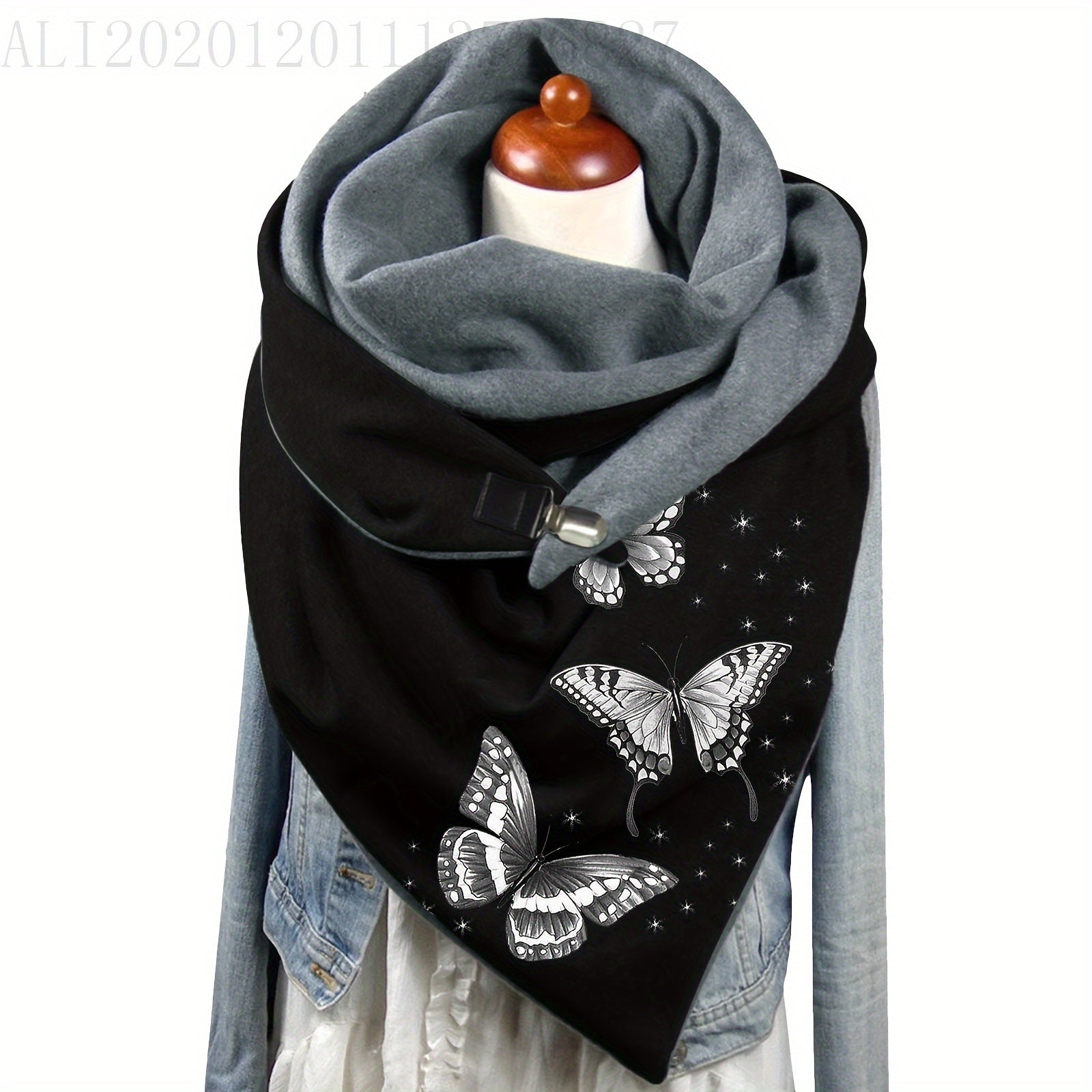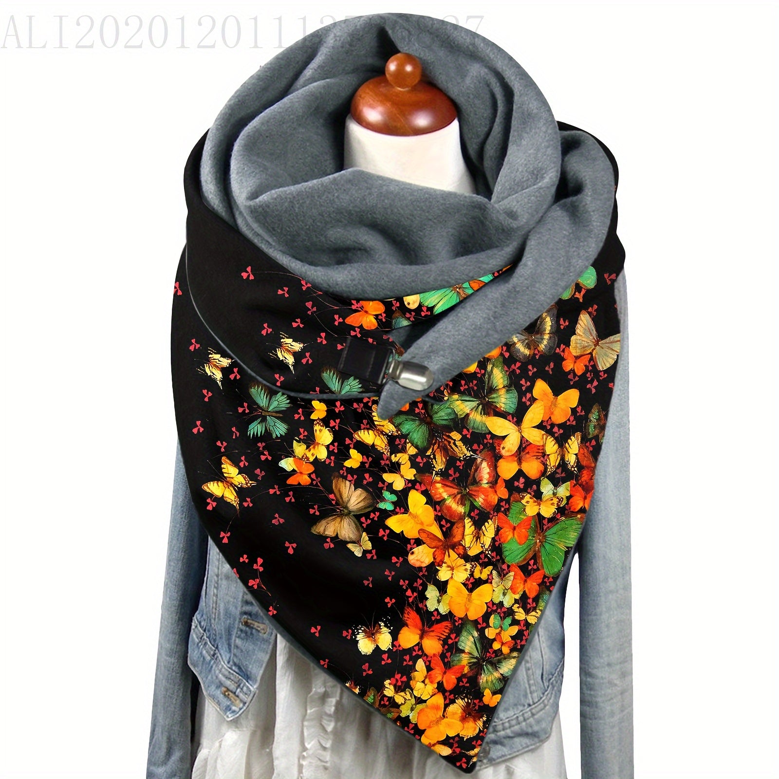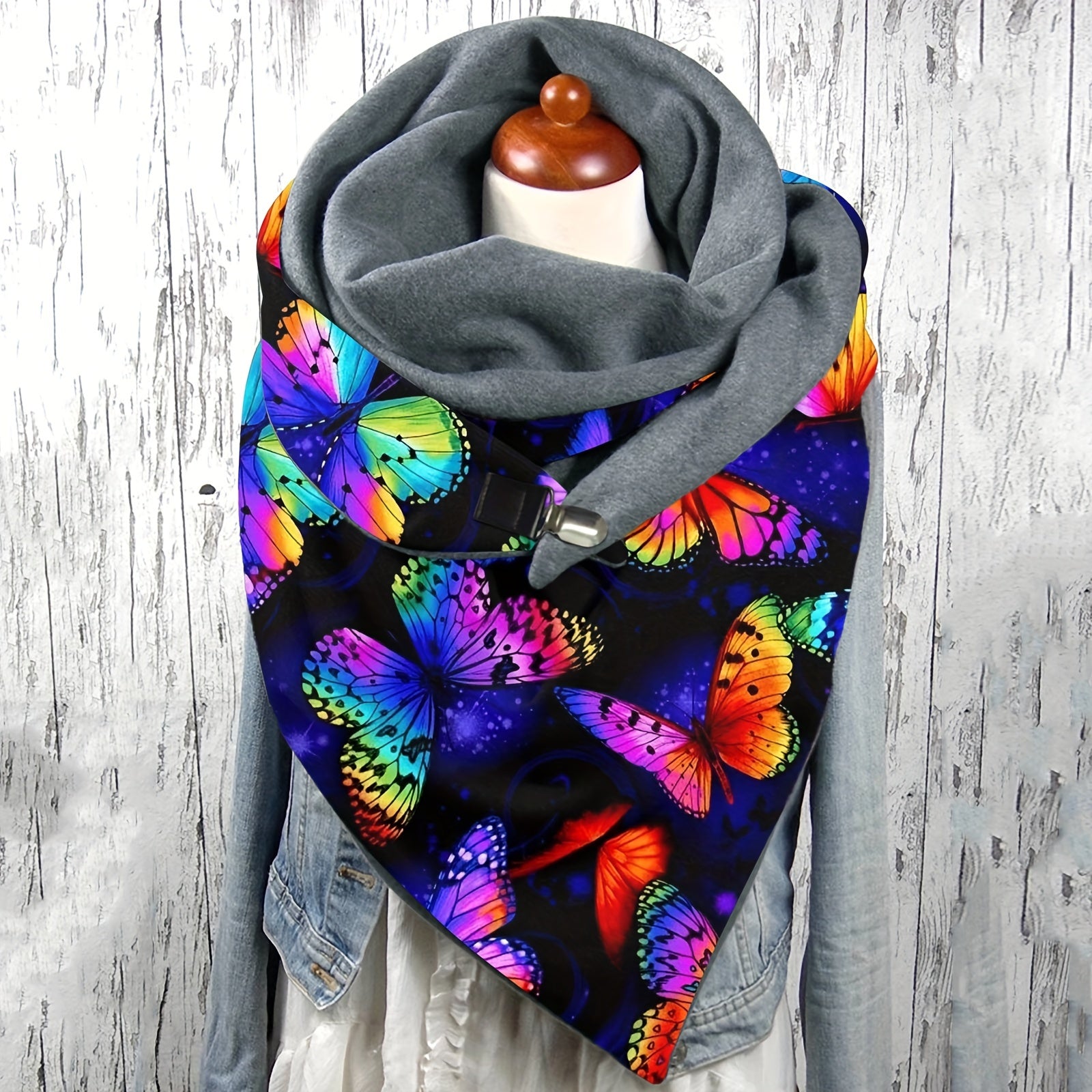 Цветной шарф-треугольник с принтом бабочки и флисовой подкладкой, уютный зимний аксессуар для женщин