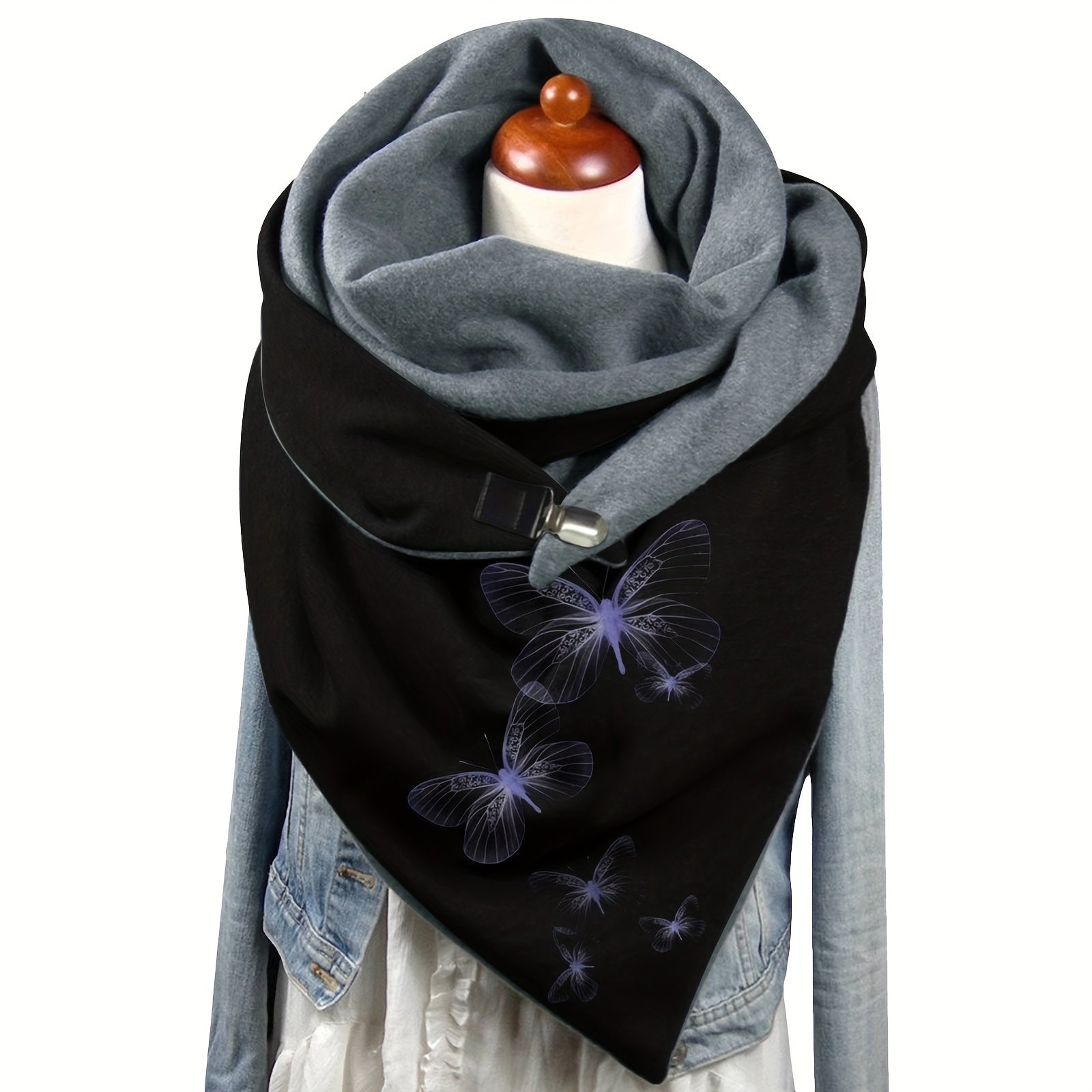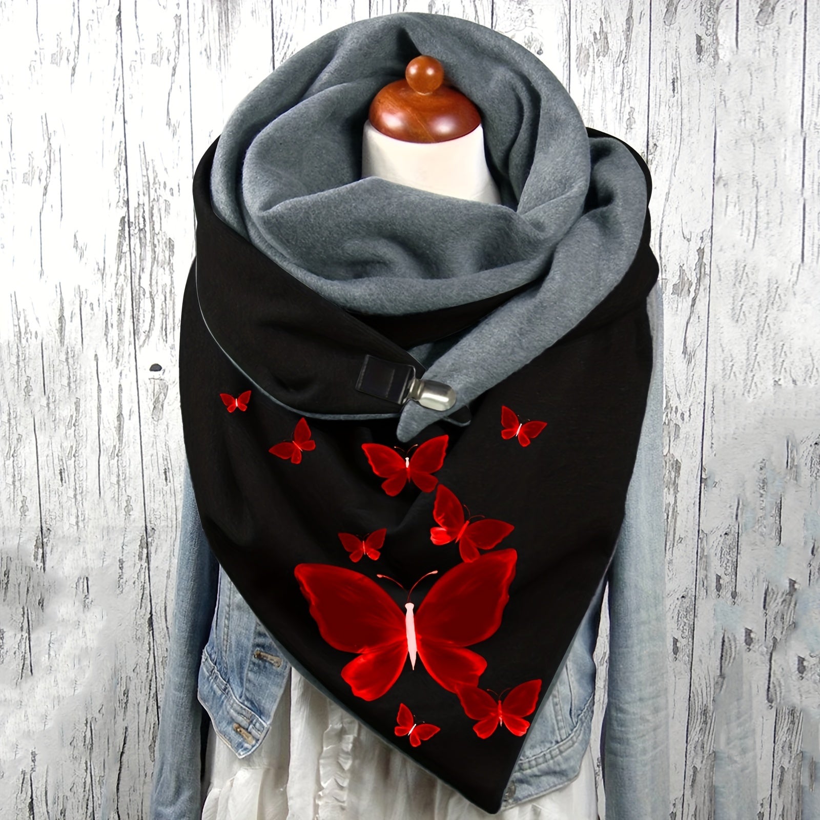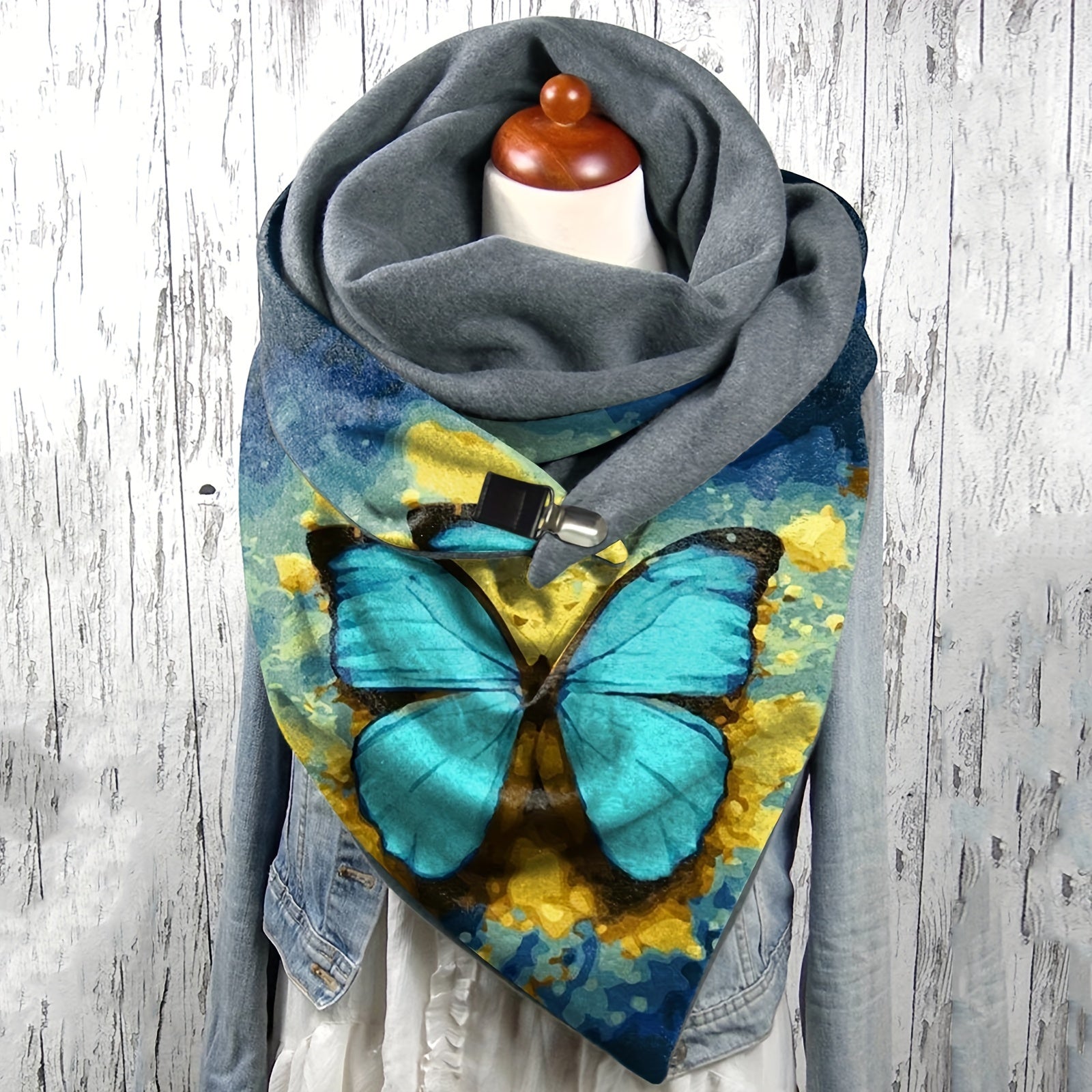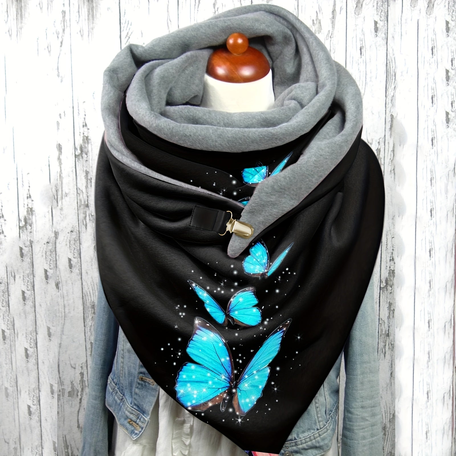 Цветной шарф-треугольник с принтом бабочки и флисовой подкладкой, уютный зимний аксессуар для женщин