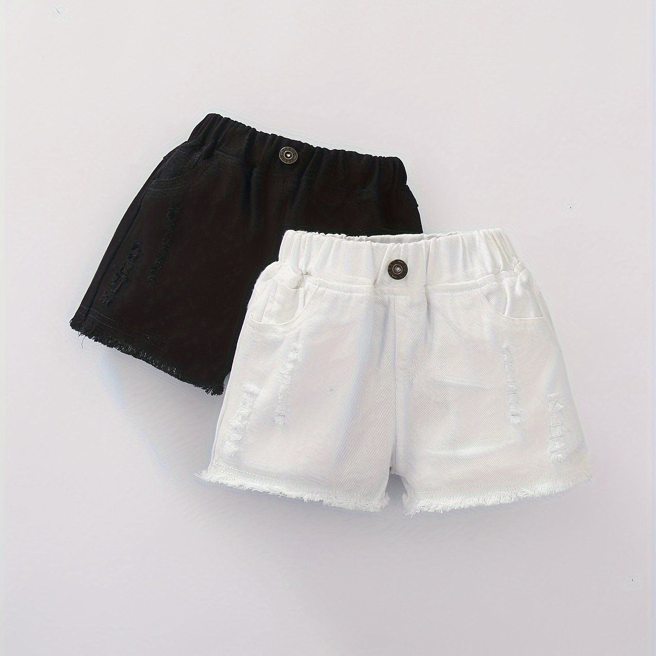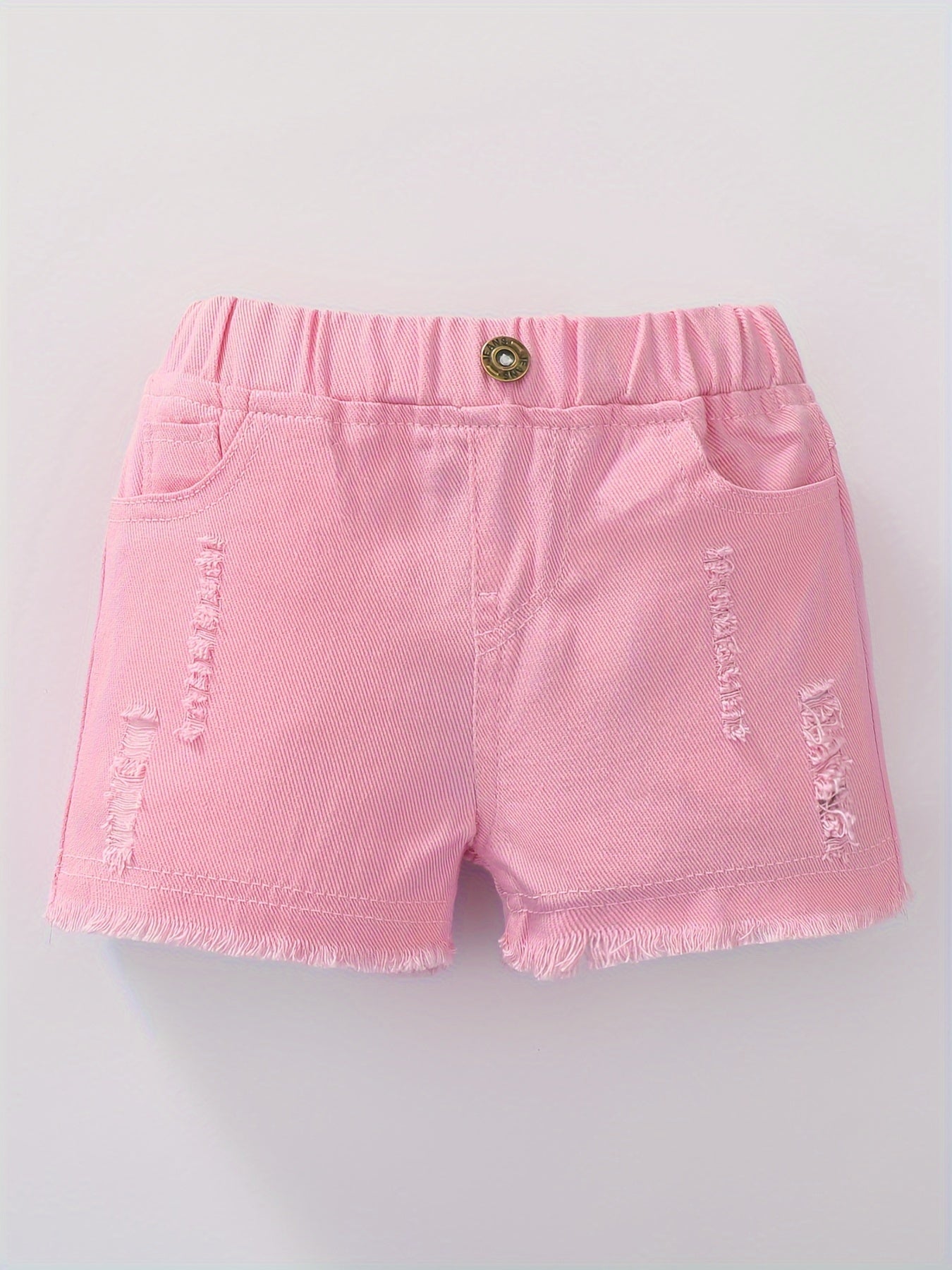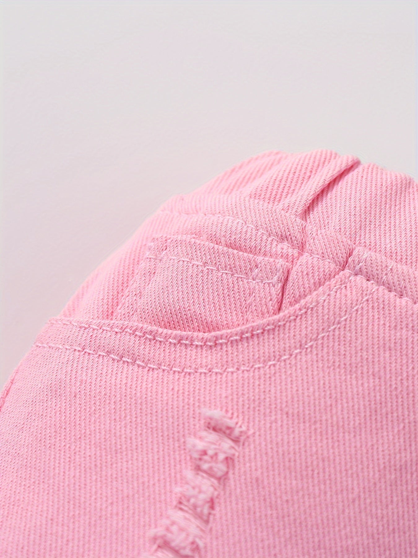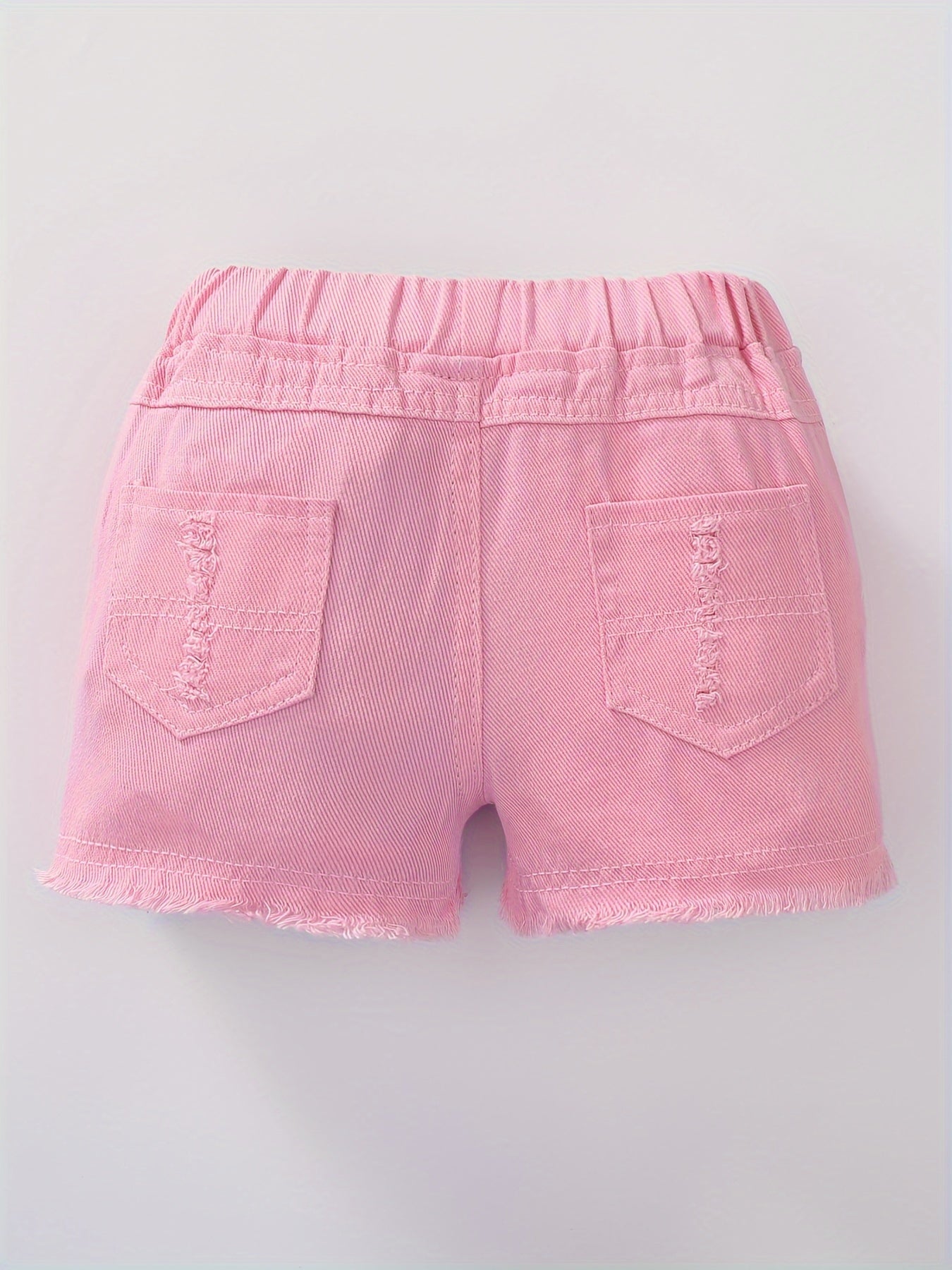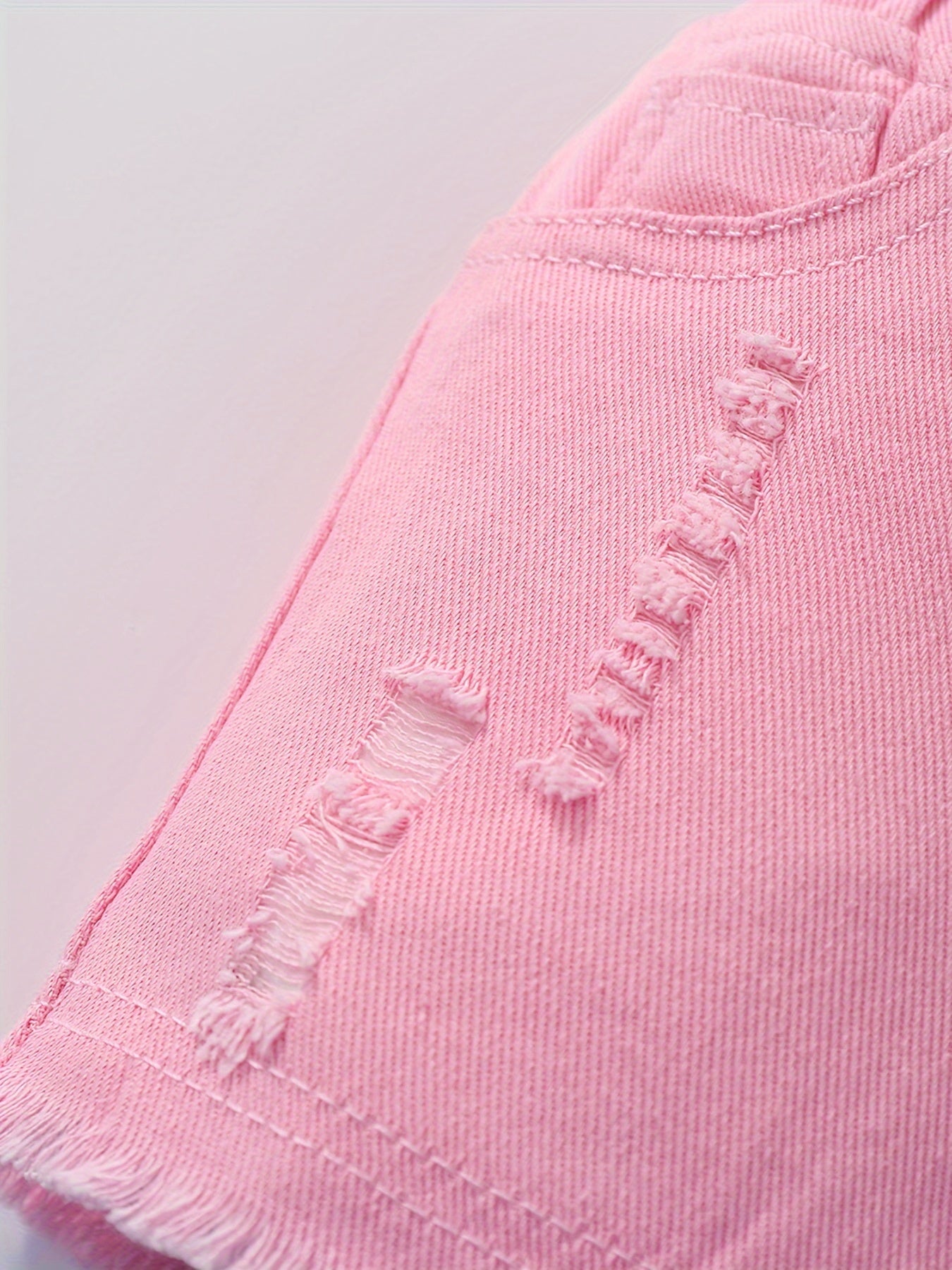 Джинсовый двухкомпонентный комплект для девочек: шорты и топ, повседневный летний стиль, с прорезями, яркий цветной узор с коровами