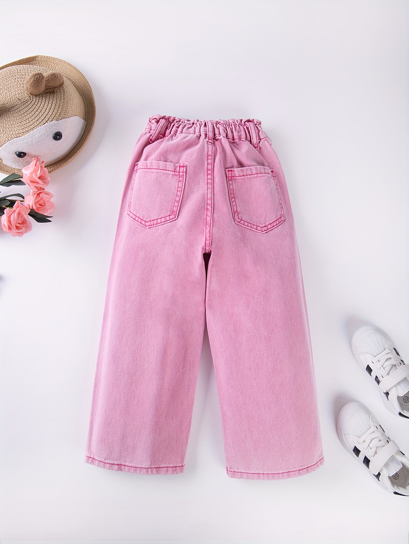 Девочки широкие джинсы с широкими штанинами повседневные свободные однотонные весна-лето-осень