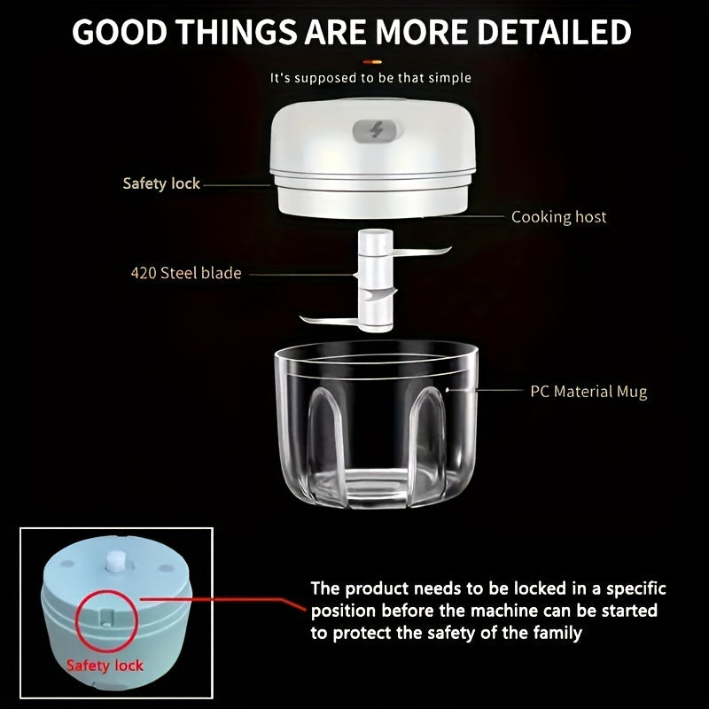 Электрический чеснокорез 250 мл, USB-заряжаемый кухонный комбайн с сменными лезвиями