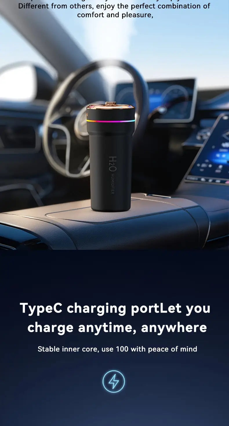 Компактный автомобильный увлажнитель и очиститель воздуха с звездным светом, работающий от USB, совместимый с эфирными маслами, с автоматическим включением/выключением, для свежего и увлажненного интерьера автомобиля.