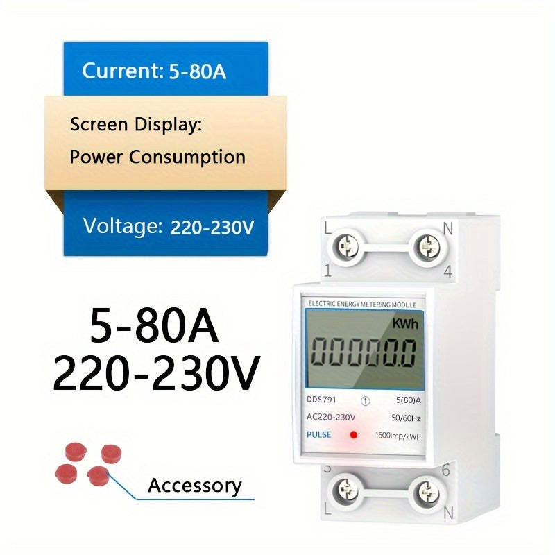 Компактный цифровой электрический счетчик с ЖК-дисплеем, 220В однофазный, мини-счетчик ватт-часов для домашнего и промышленного использования, прецизионная SMT-технология, легкая установка на DIN-рейку.