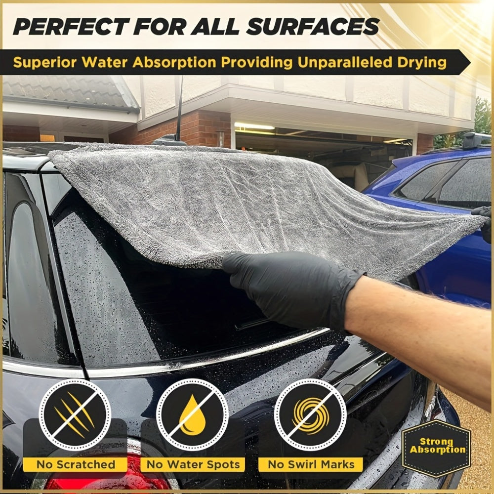 Микрофибровое полотенце для сушки автомобиля 1400 ГСМ двухстороннее без полос, впитывающее