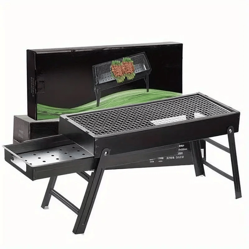 Портативный гриль-барбекю с открытым пламенем, регулируемые ножки, прочная металлическая рама для приготовления на открытом воздухе