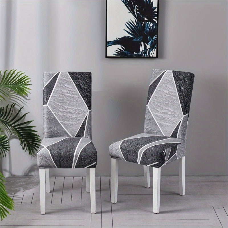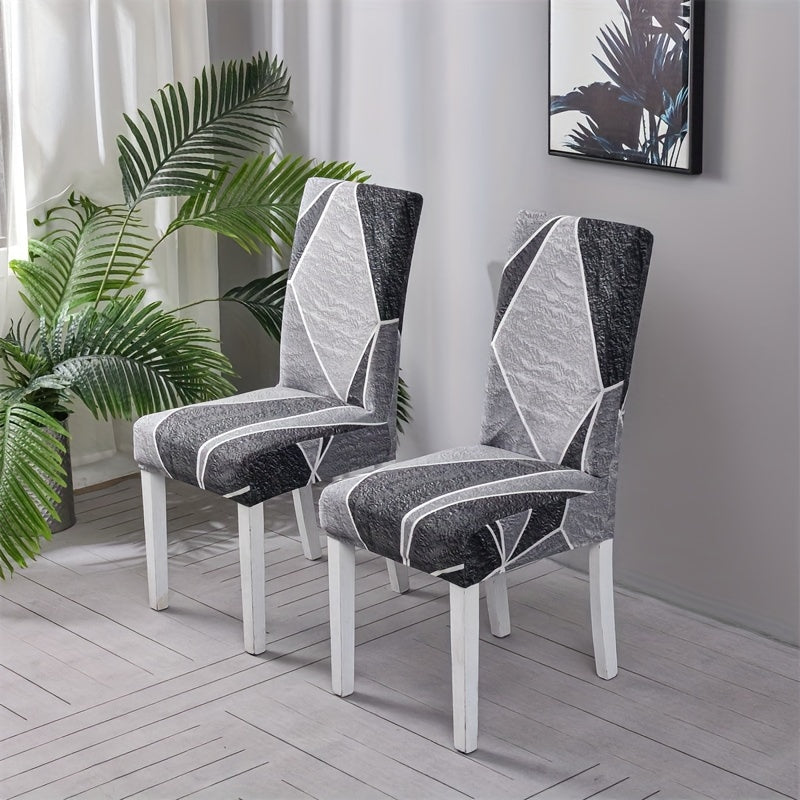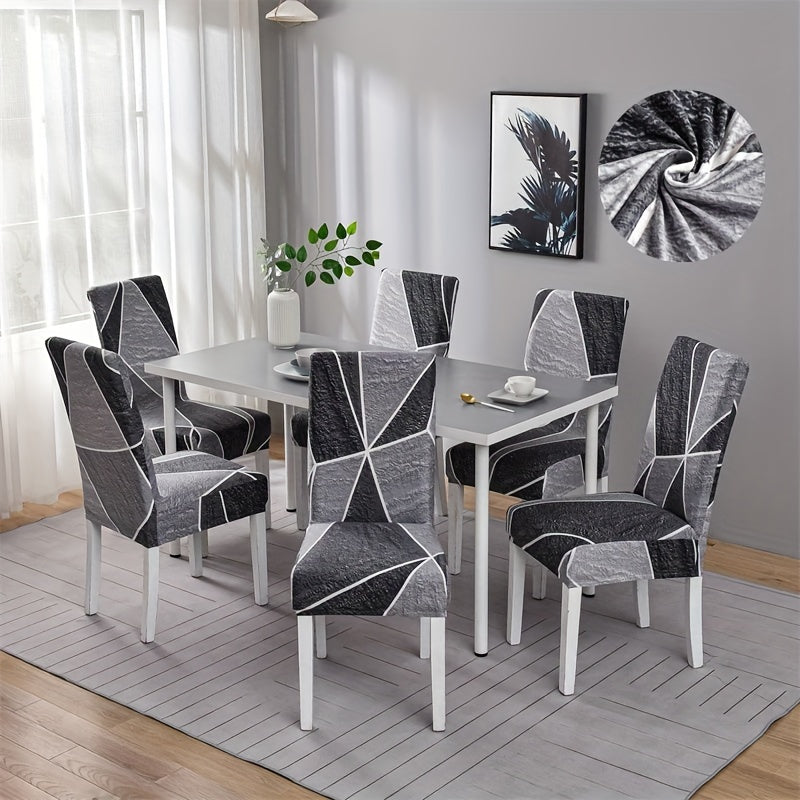 Современные геометрические чехлы для стульев черного и белого цвета. Эластичная, пылезащитная, легкая ткань. Идеально подходит для домашнего, гостиничного или ресторанного декора. Легкий уход, машинная стирка. Набор из 4 или 6 штук.