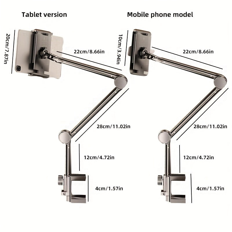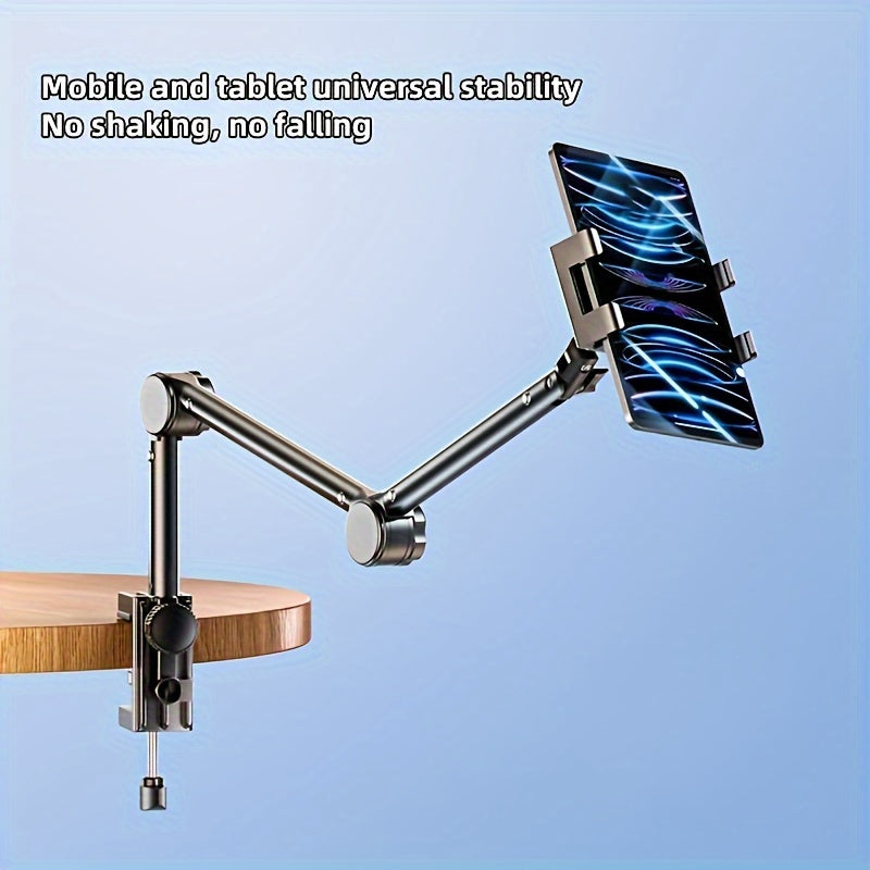 Тяжелая регулируемая подставка для телефона и планшета, складная, вращающаяся на 360°, алюминиевая, для прикроватного использования, черная