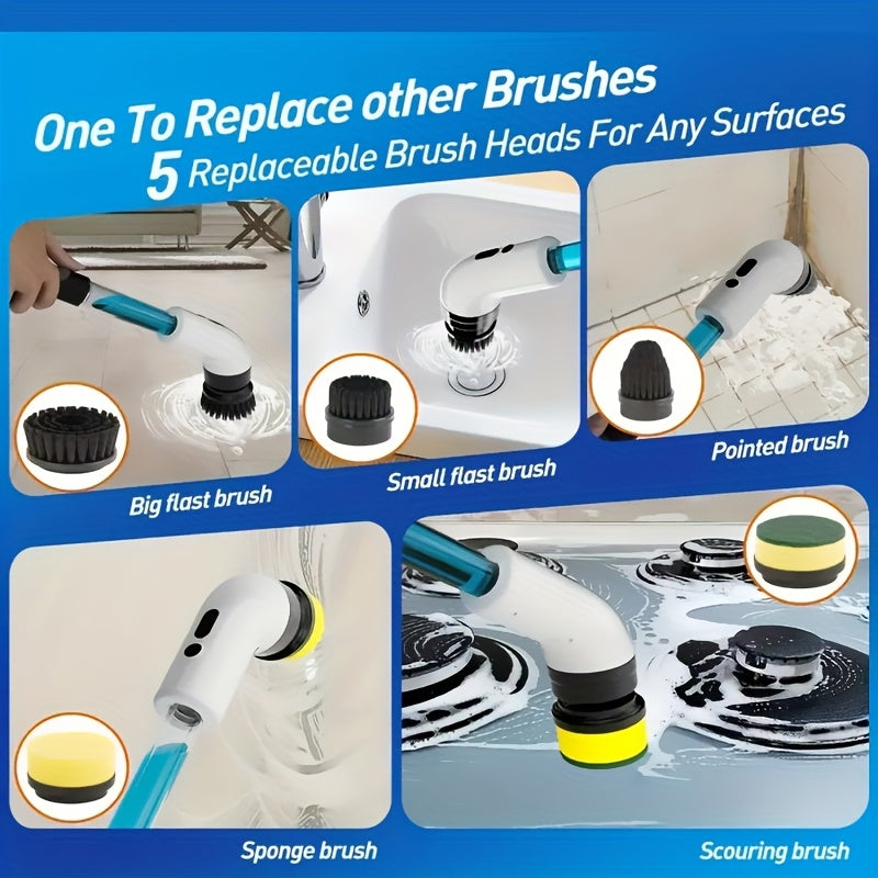 Беспроводная электрическая щетка для уборки с двойной скоростью, USB-зарядка, литиевая батарея, время работы 3 часа для пола, ванной комнаты, плитки